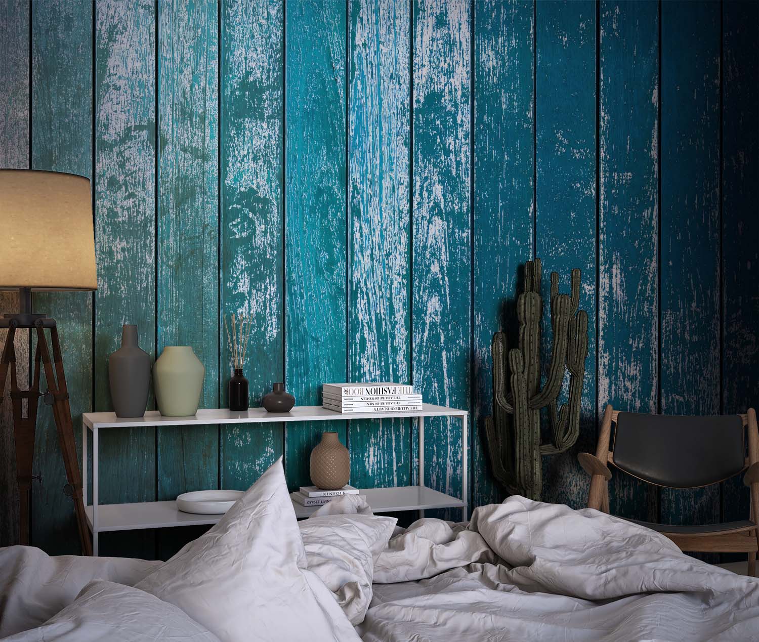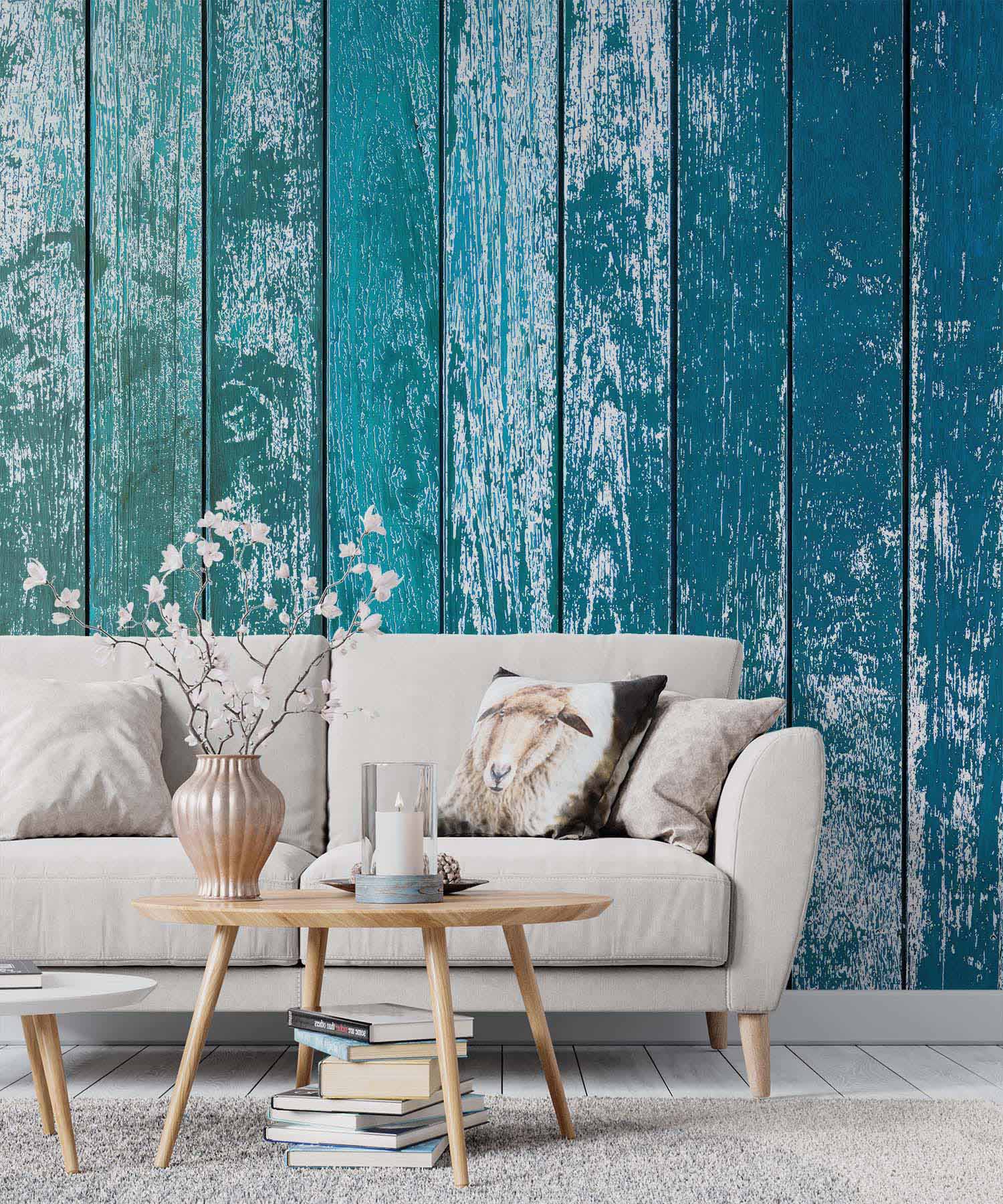 Terug naar collectie / Behang / Abstract behang / Kustblauw hout behang