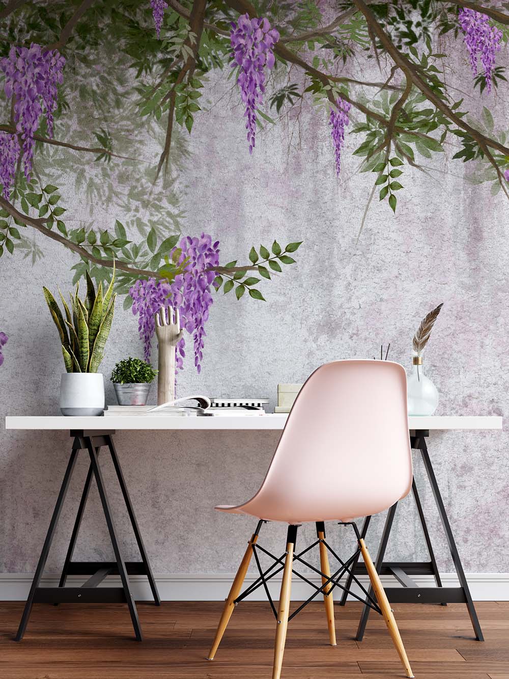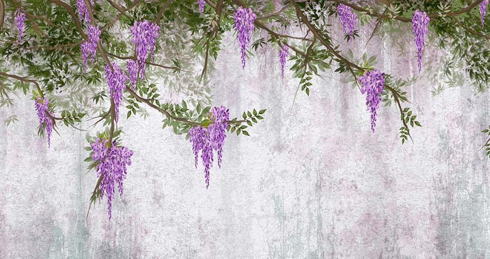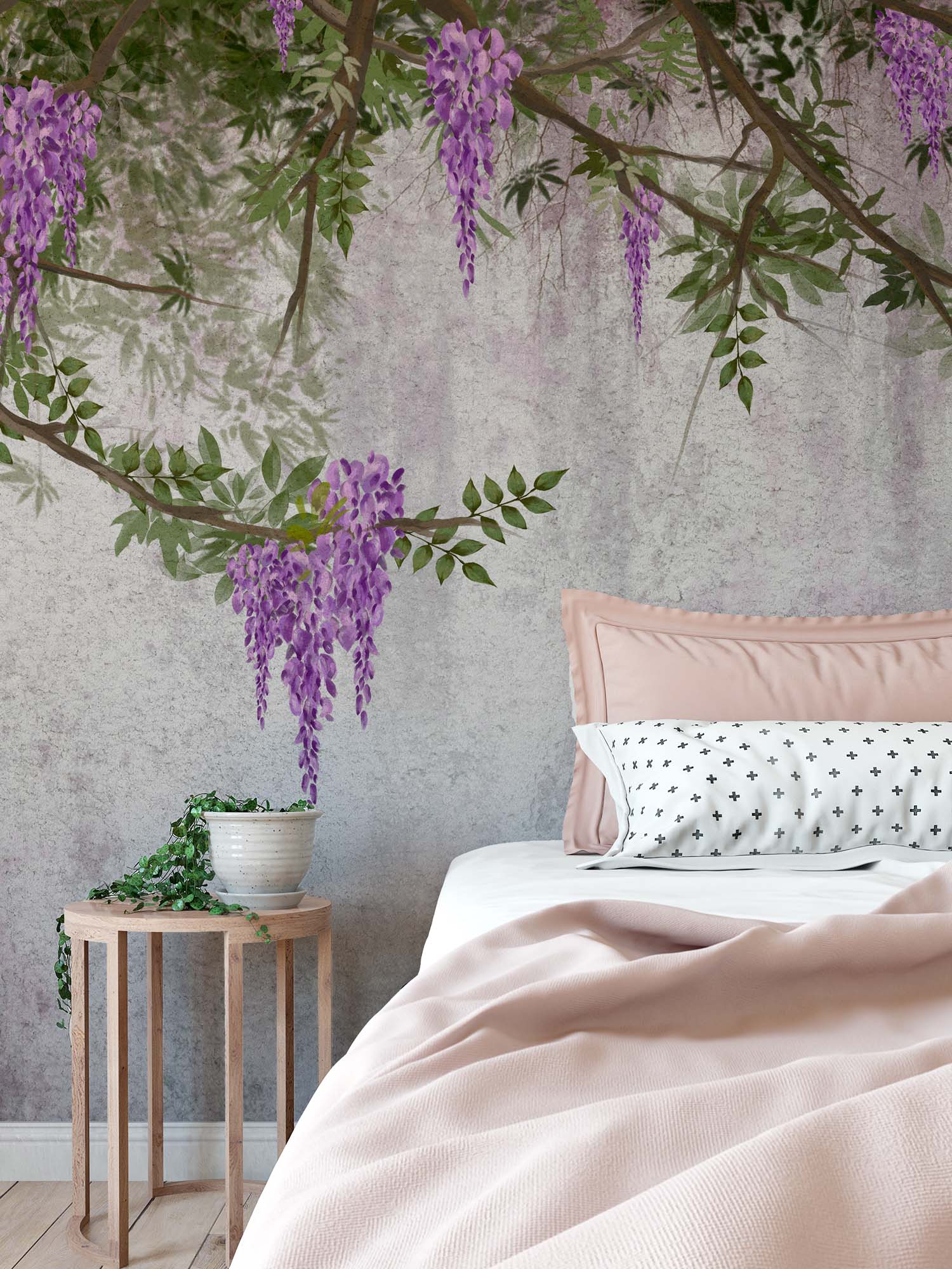 Terug naar collectie / Behang / Lavendel Bloemen Behang met Waterval