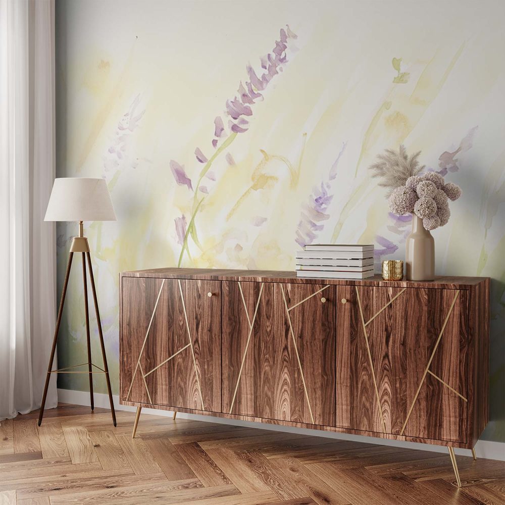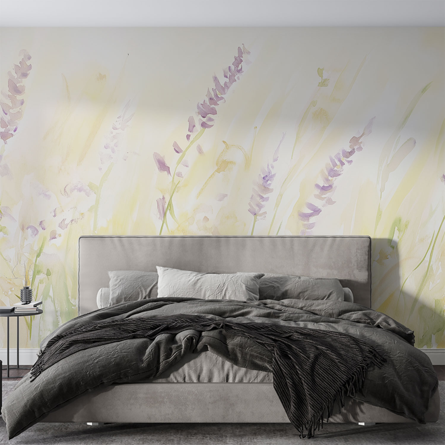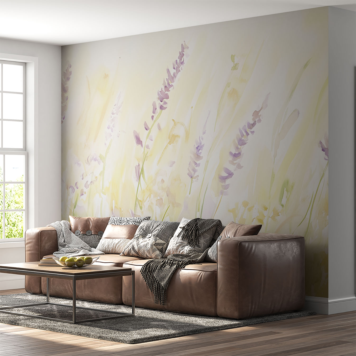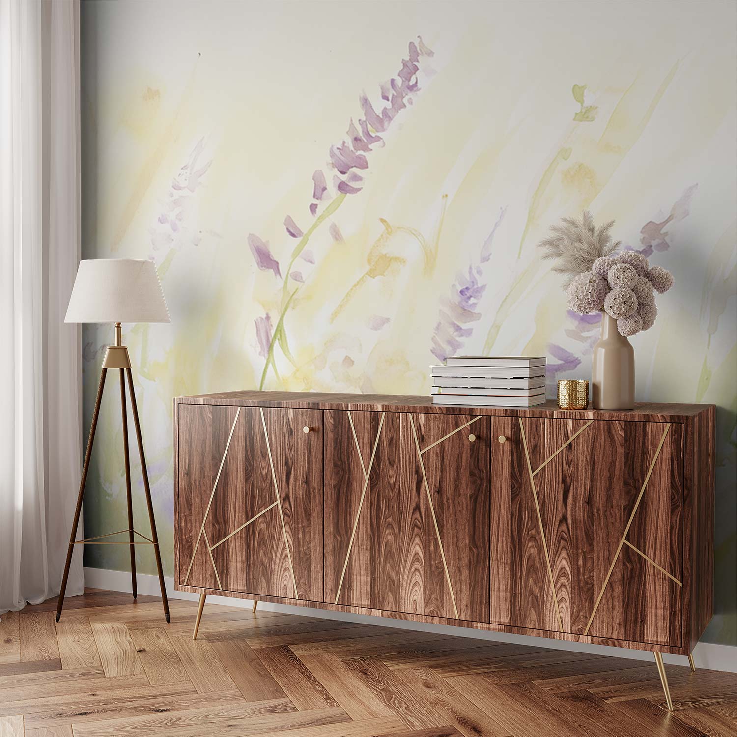 Terug naar collectie / Behang / Lavendelveld in Pastelkleuren behang
