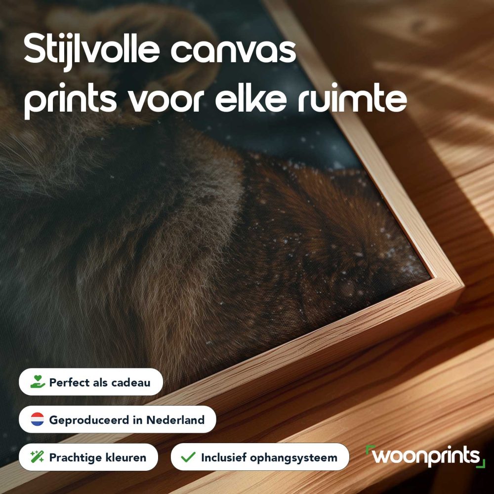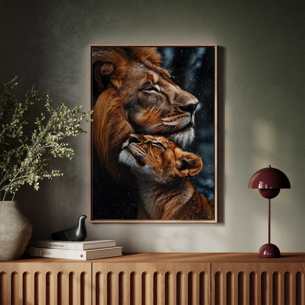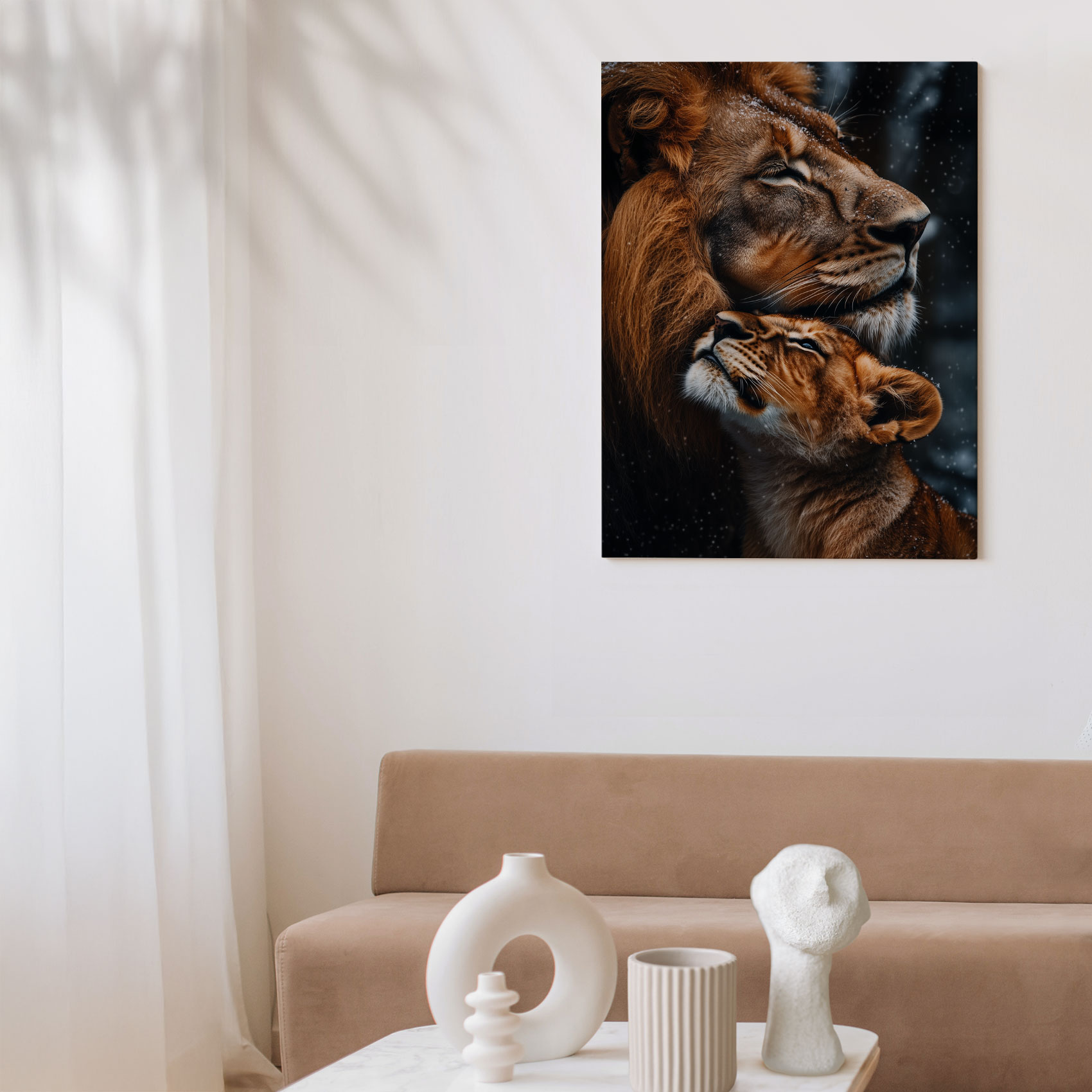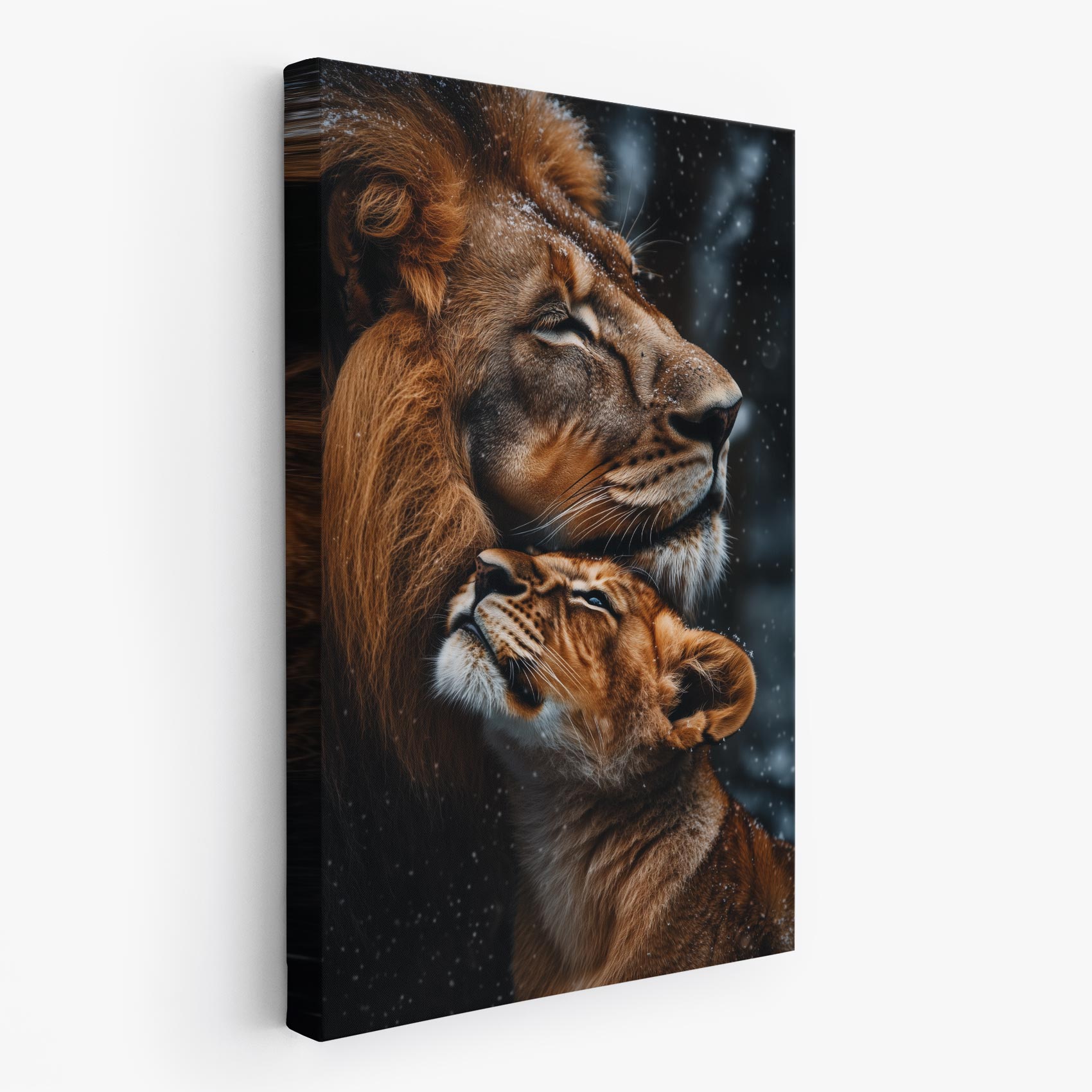 Terug naar collectie / Schilderijen / Bossen Schilderij / Leeuw en welp in besneeuwd bos