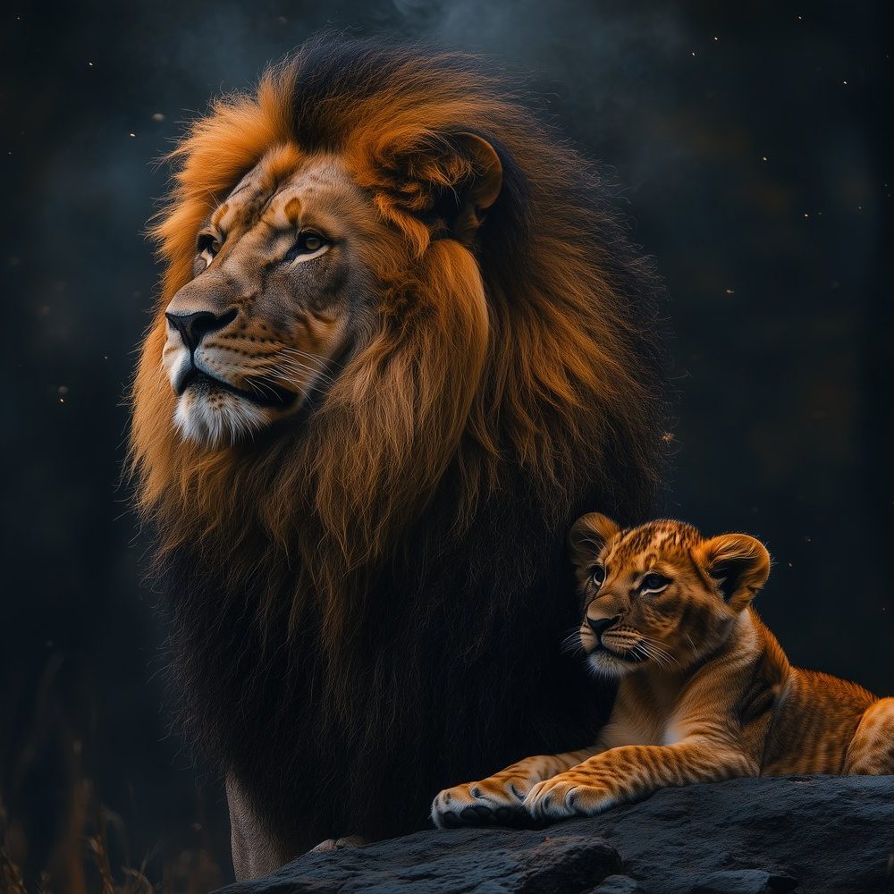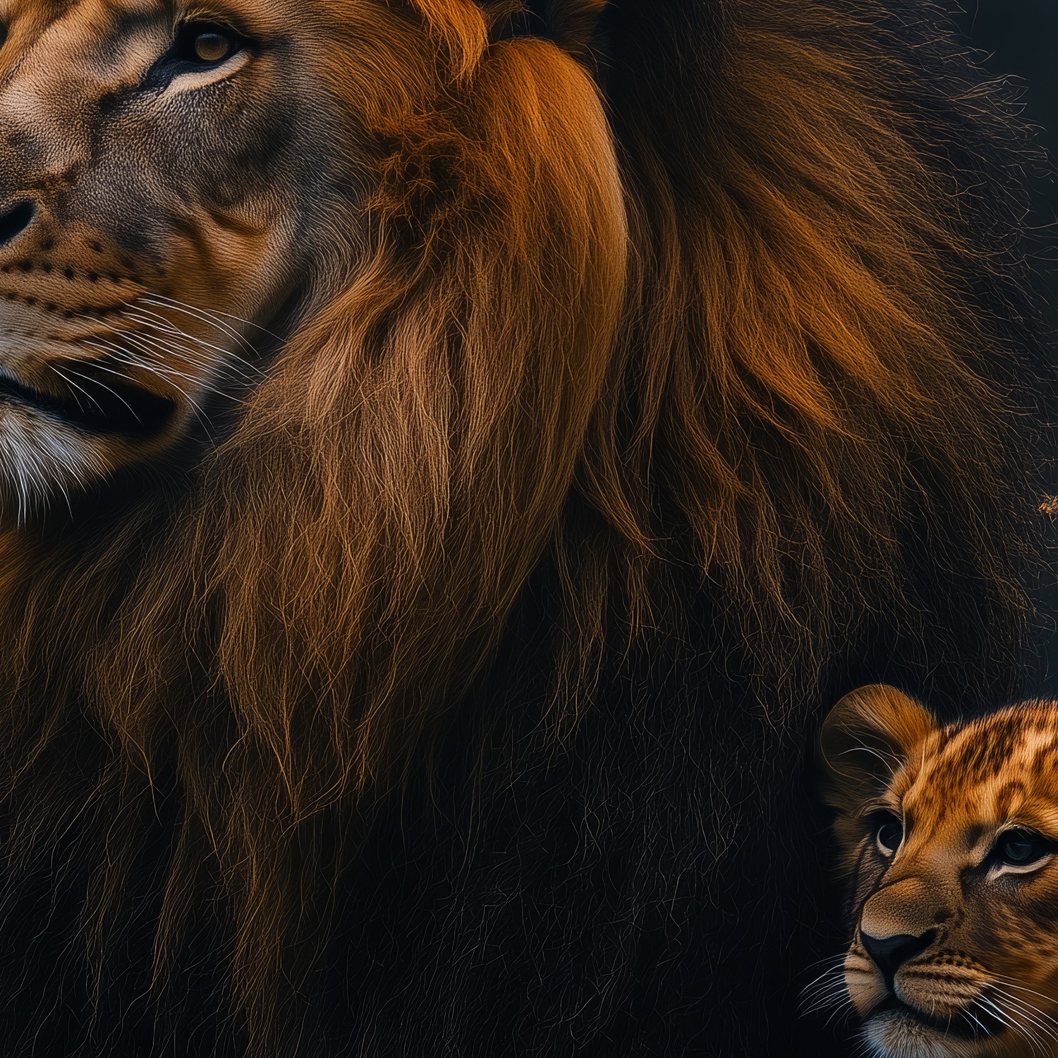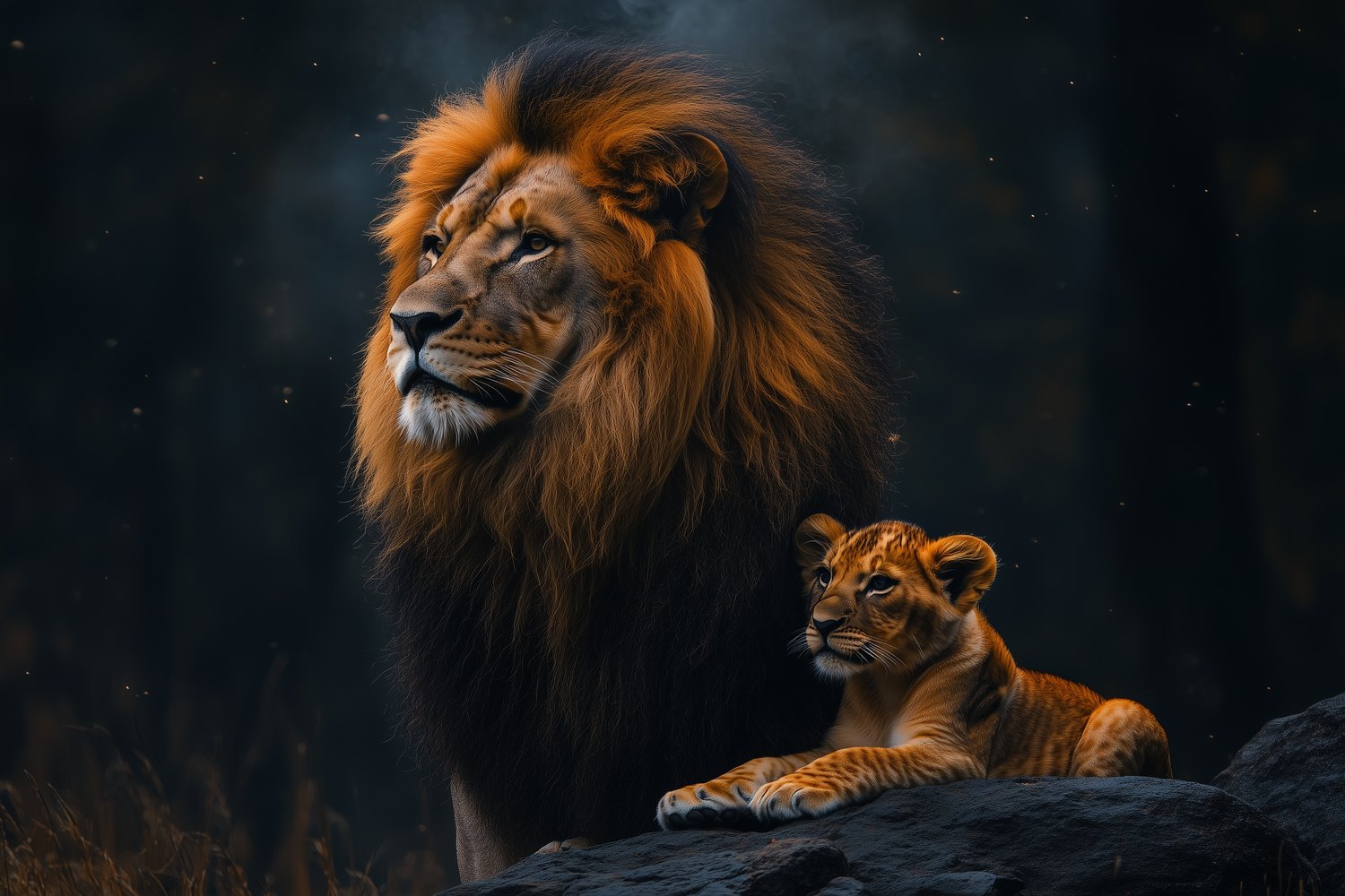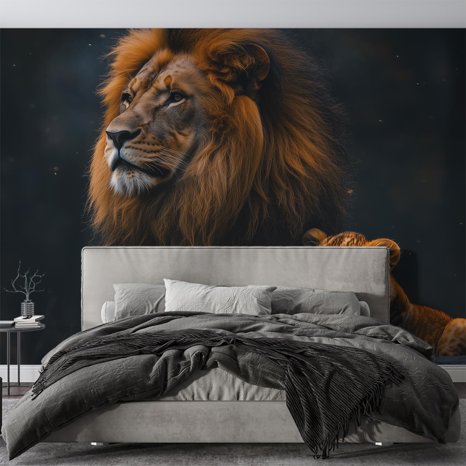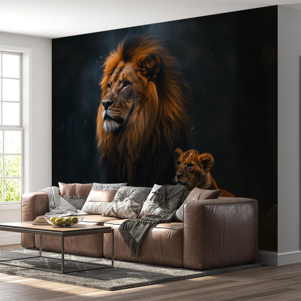Terug naar collectie / Behang / Leeuw en welp in bos behang