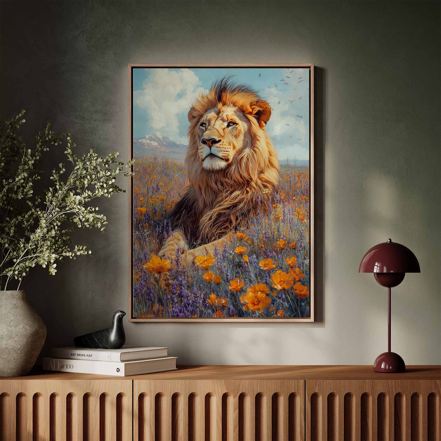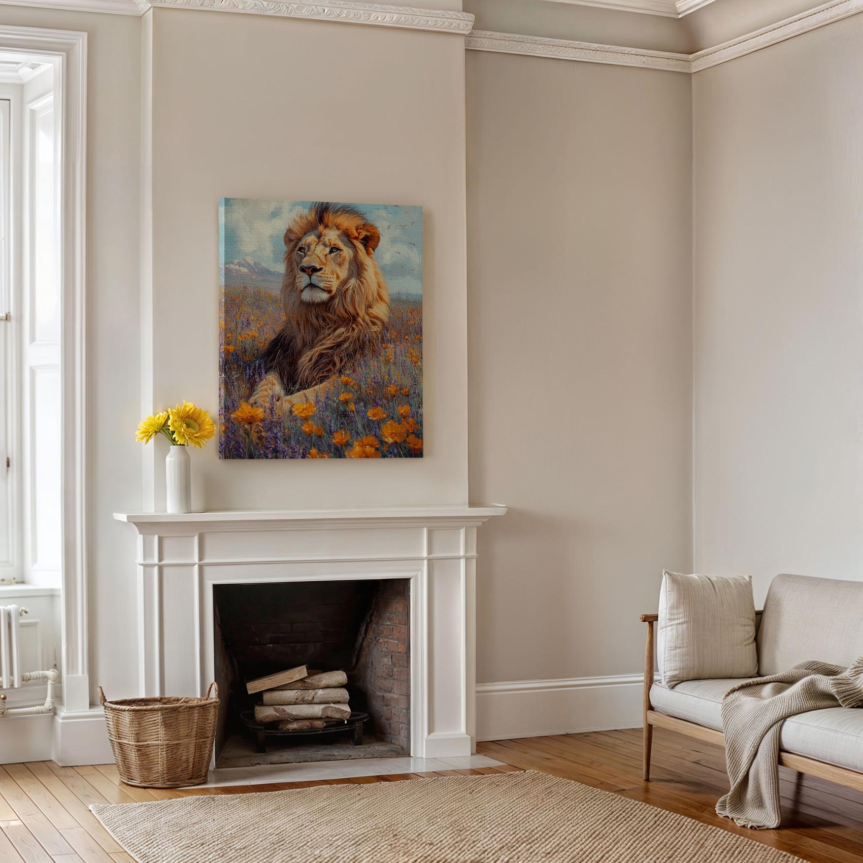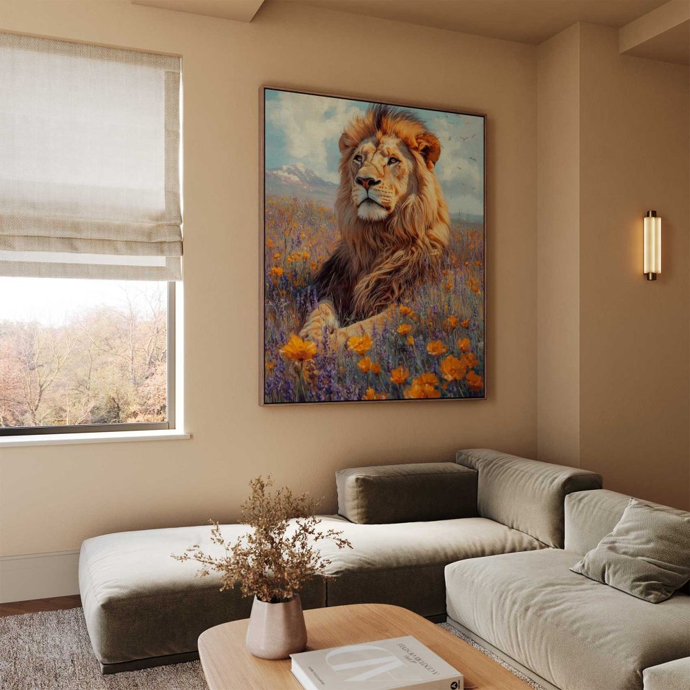 Leeuw in bloemenpracht