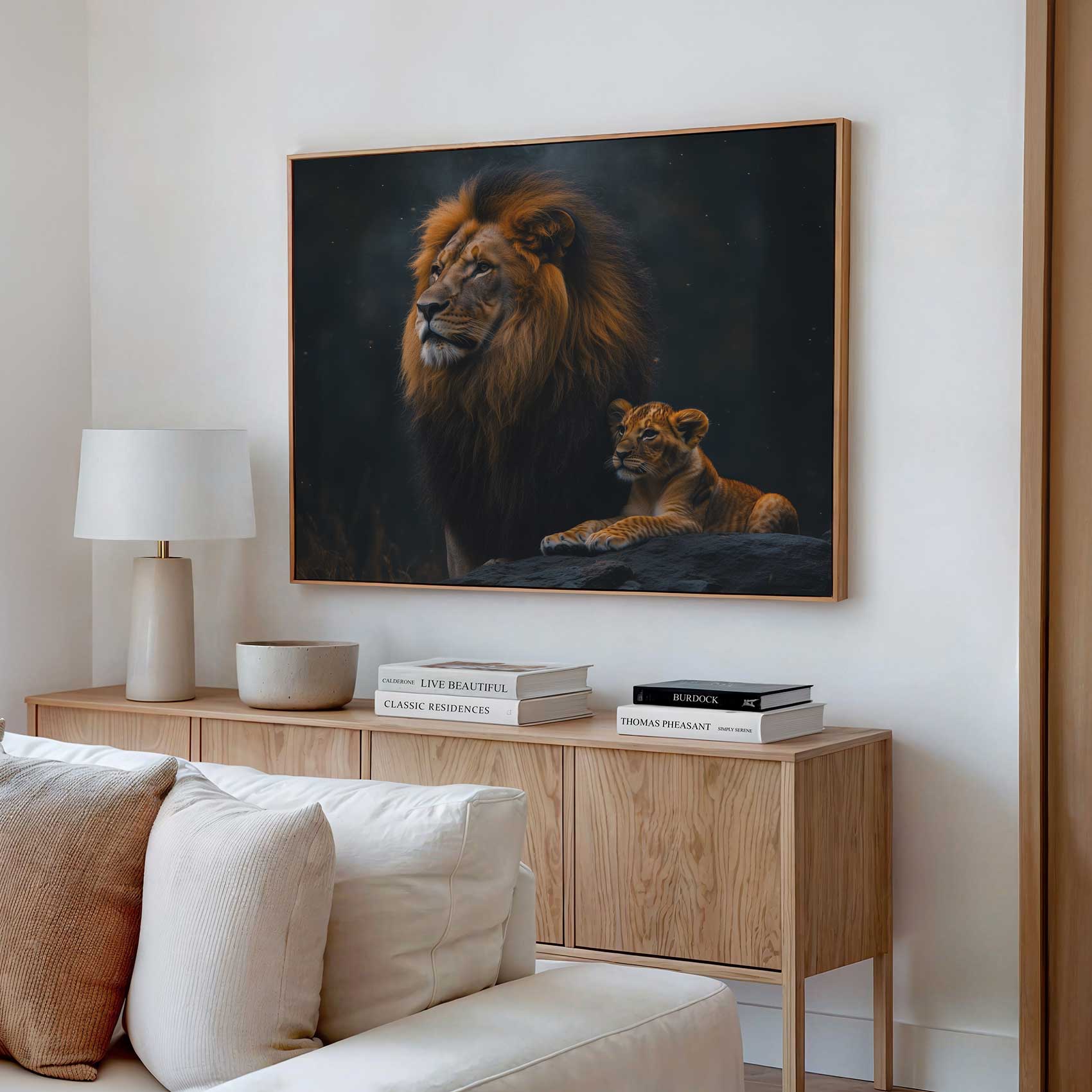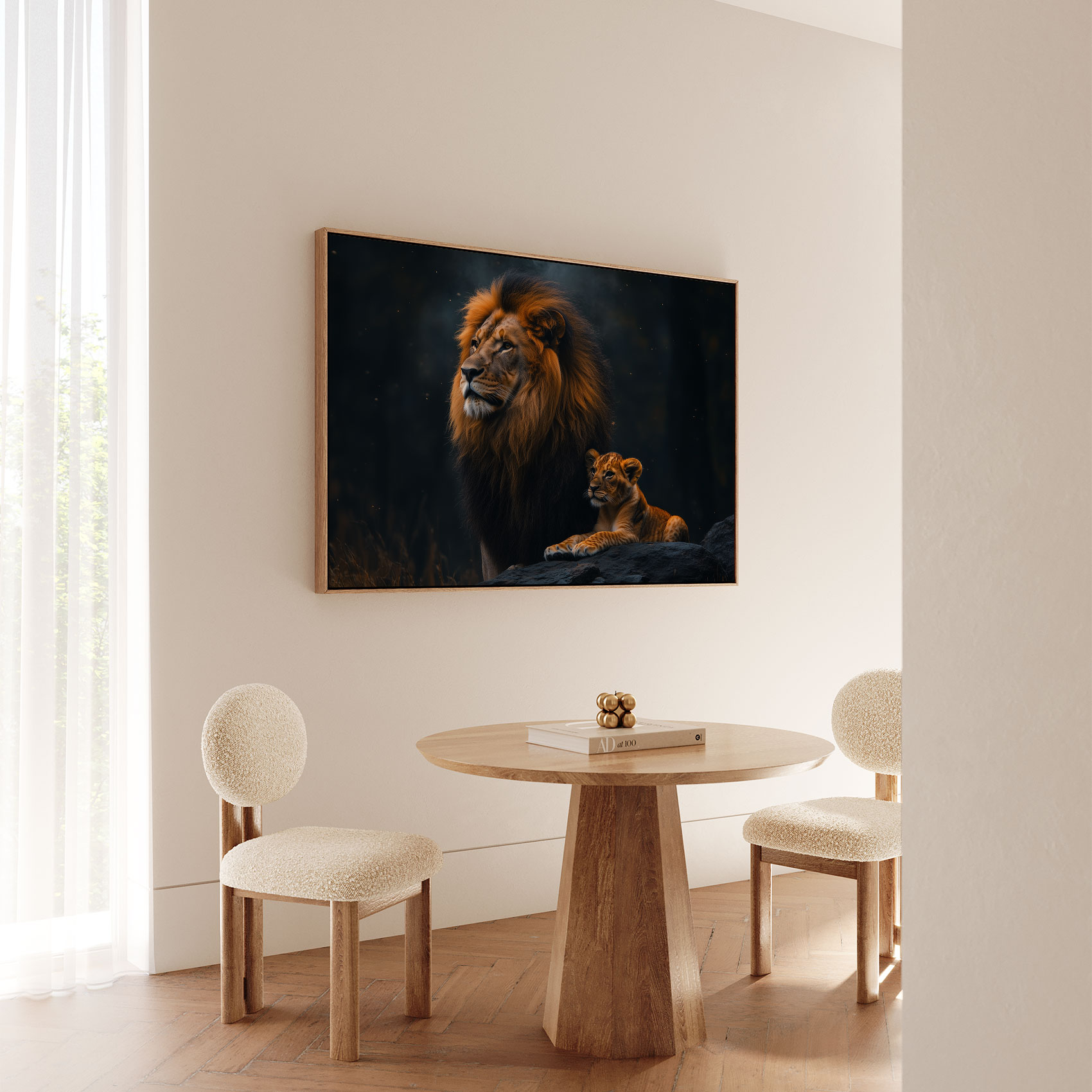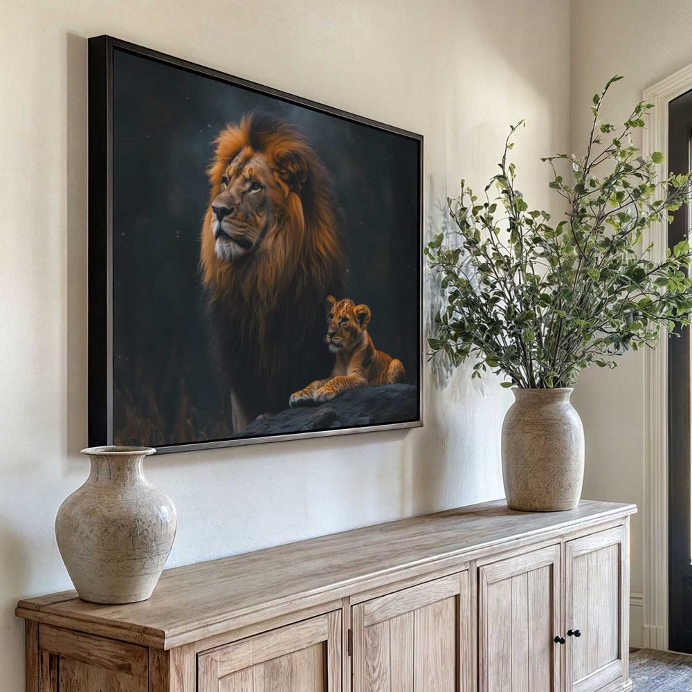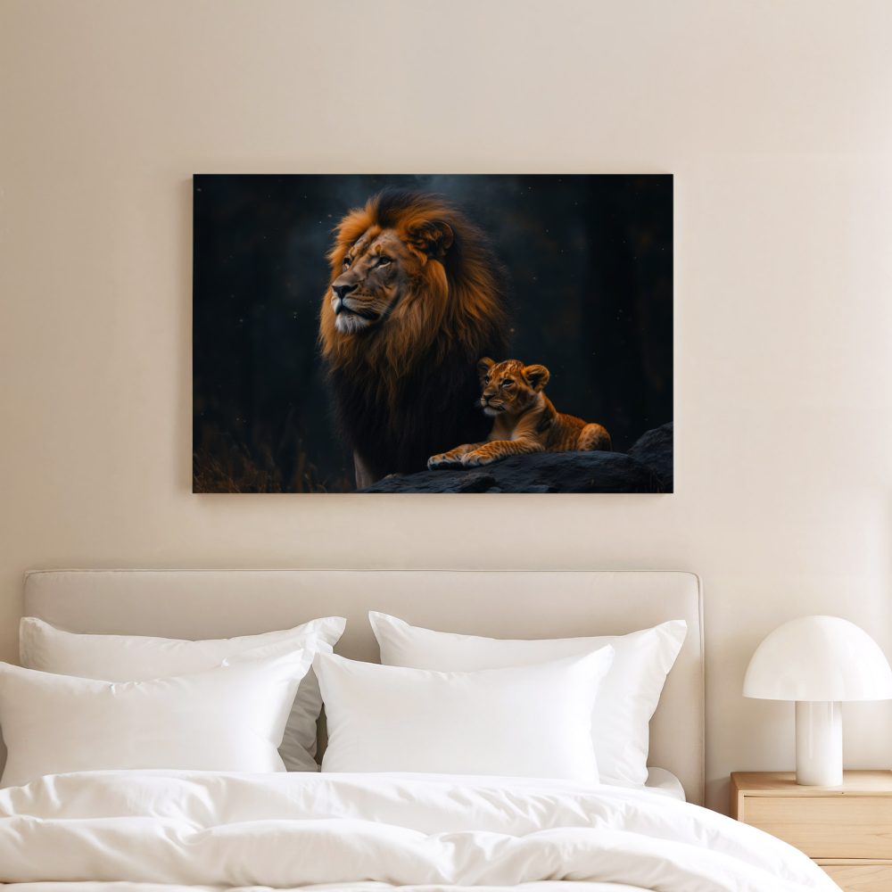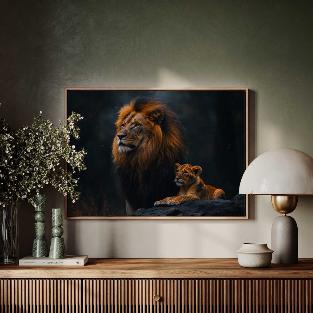 Leeuw met welp in bos