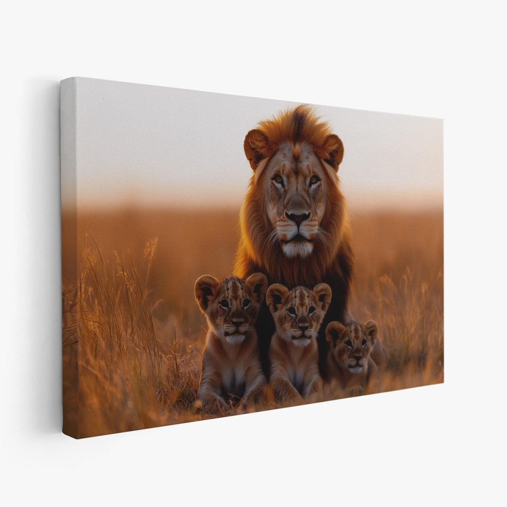 Leeuw met welpen in gouden veld