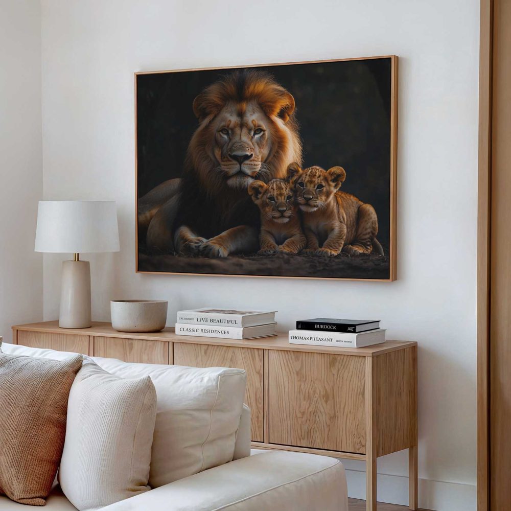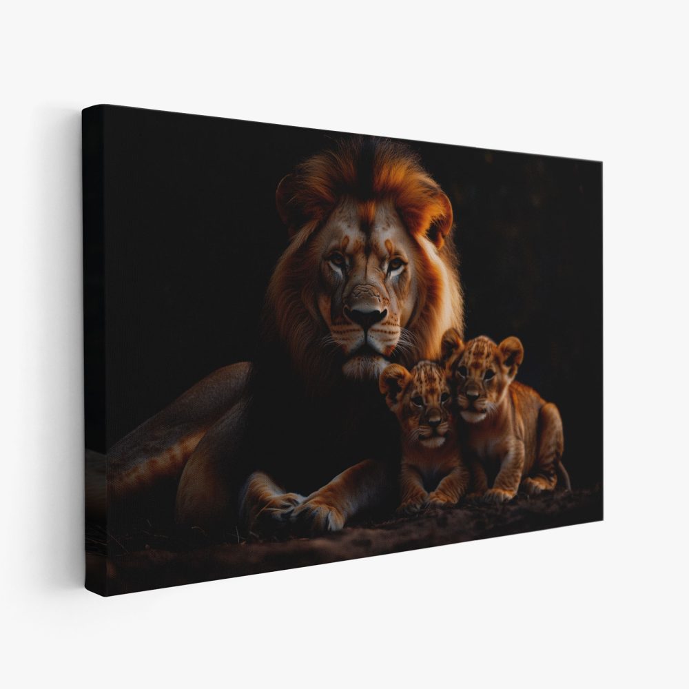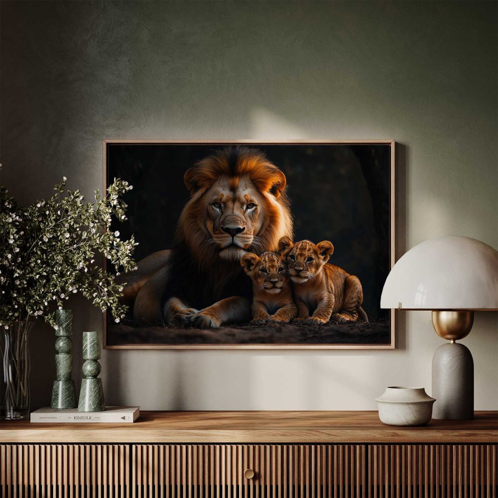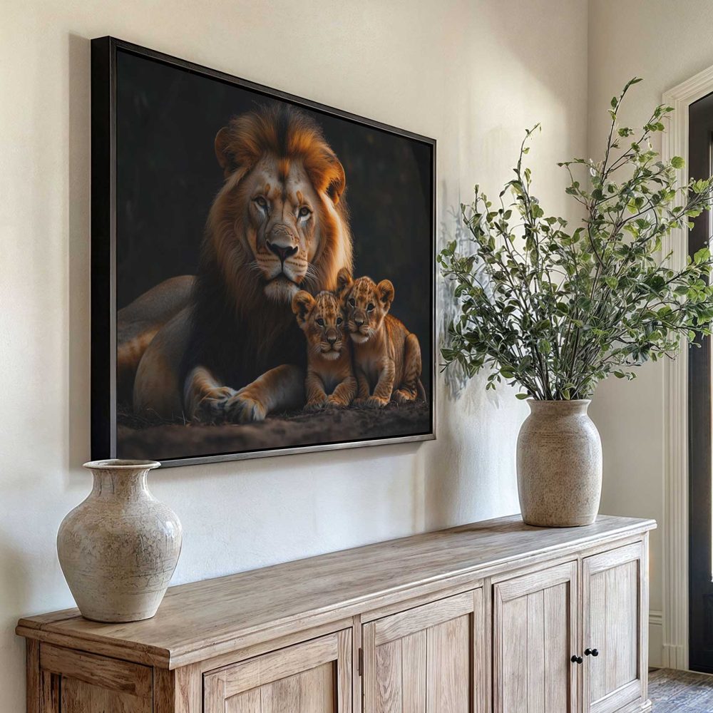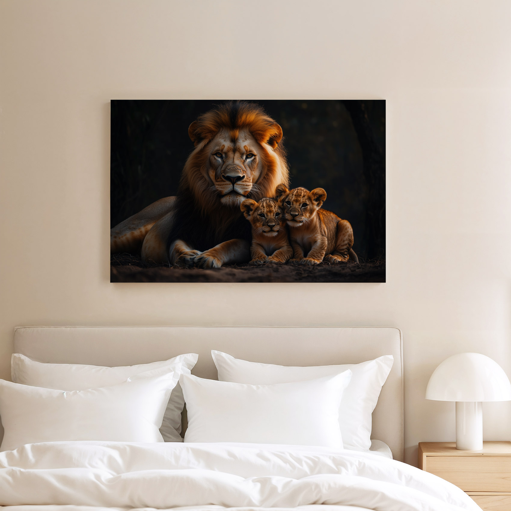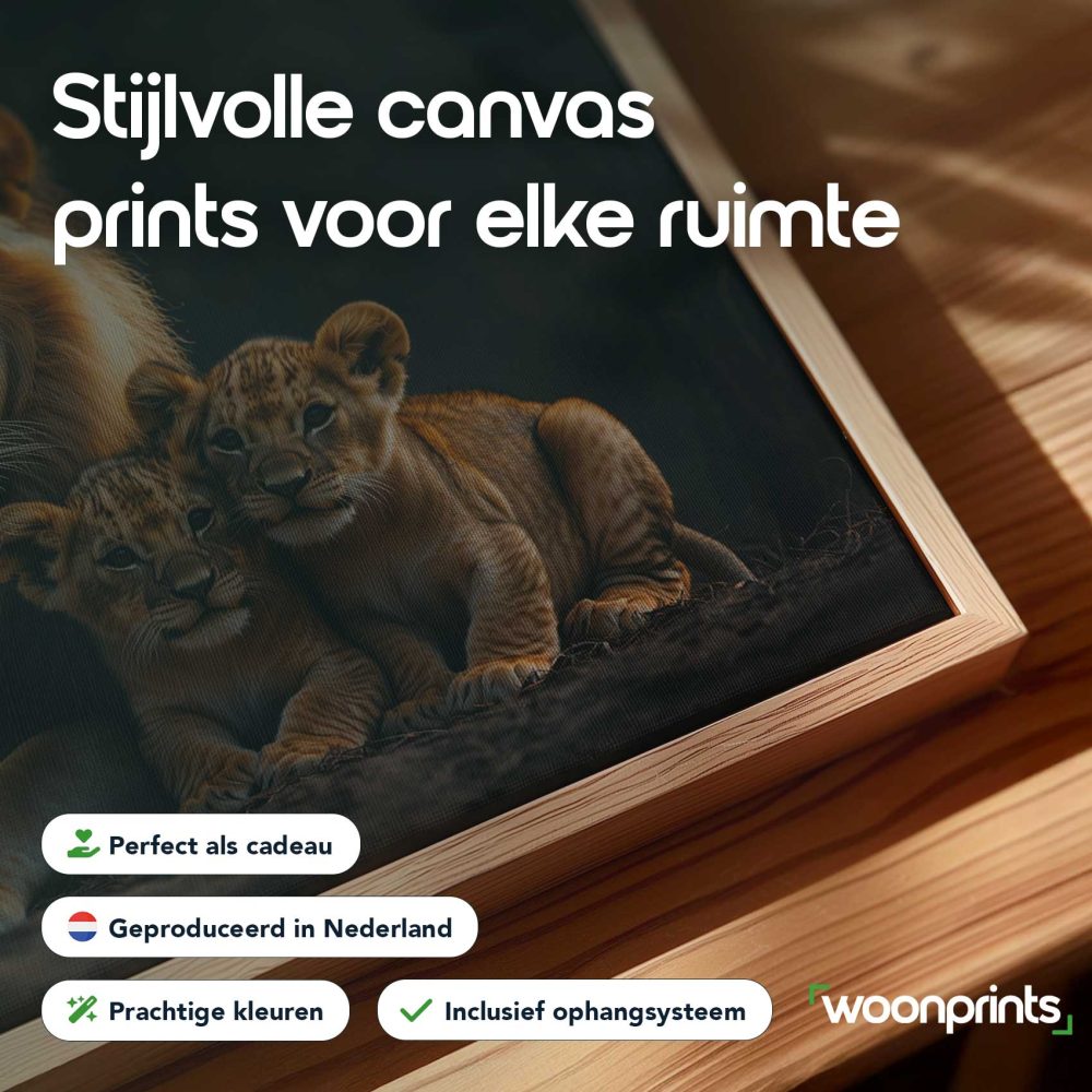 Terug naar collectie / Schilderijen / Bossen Schilderij / Leeuw met welpen in natuur