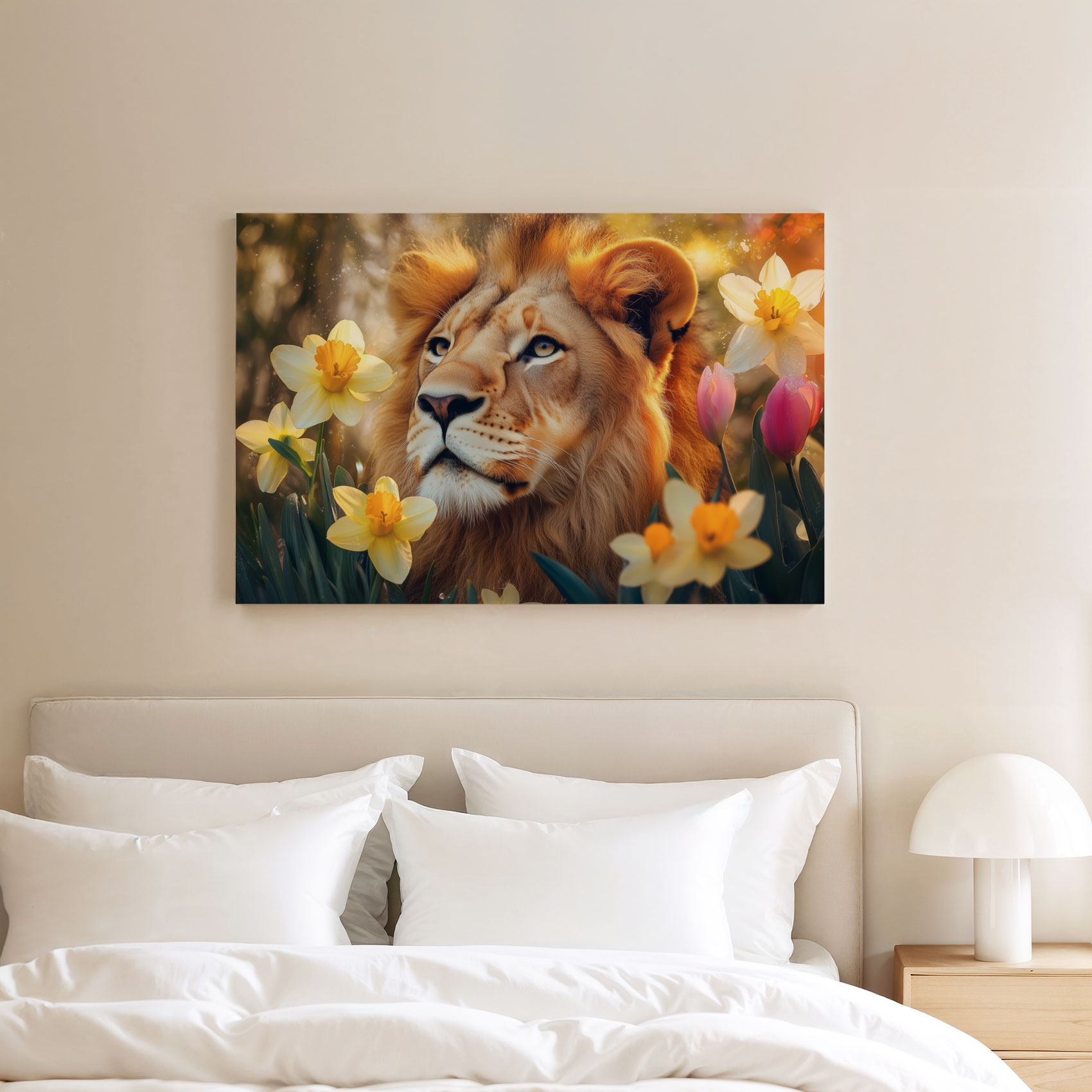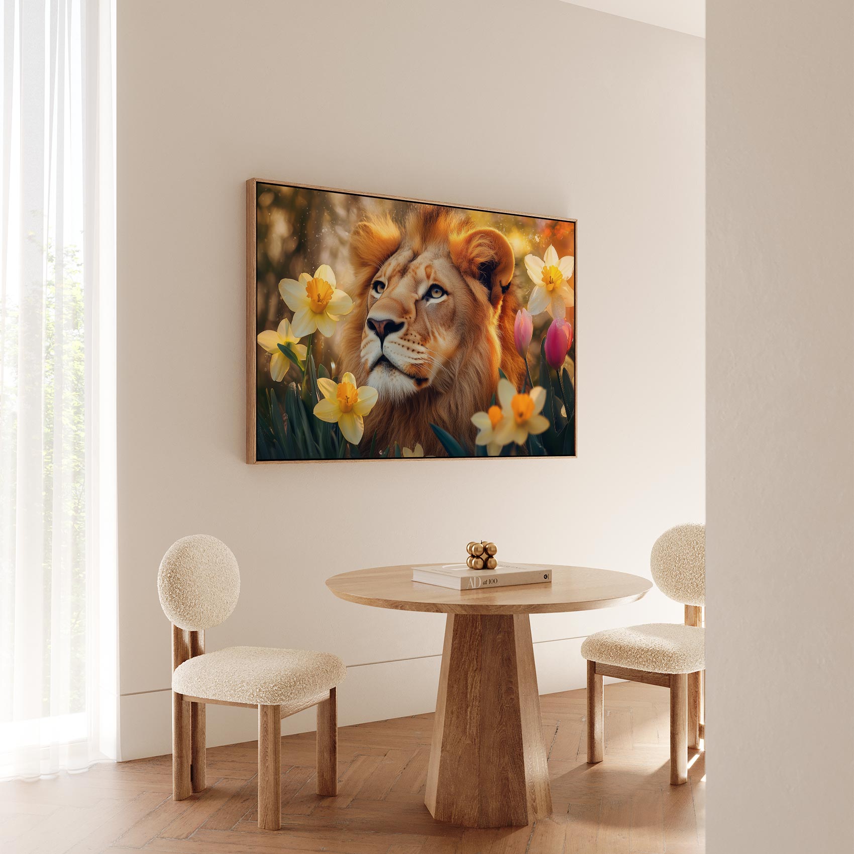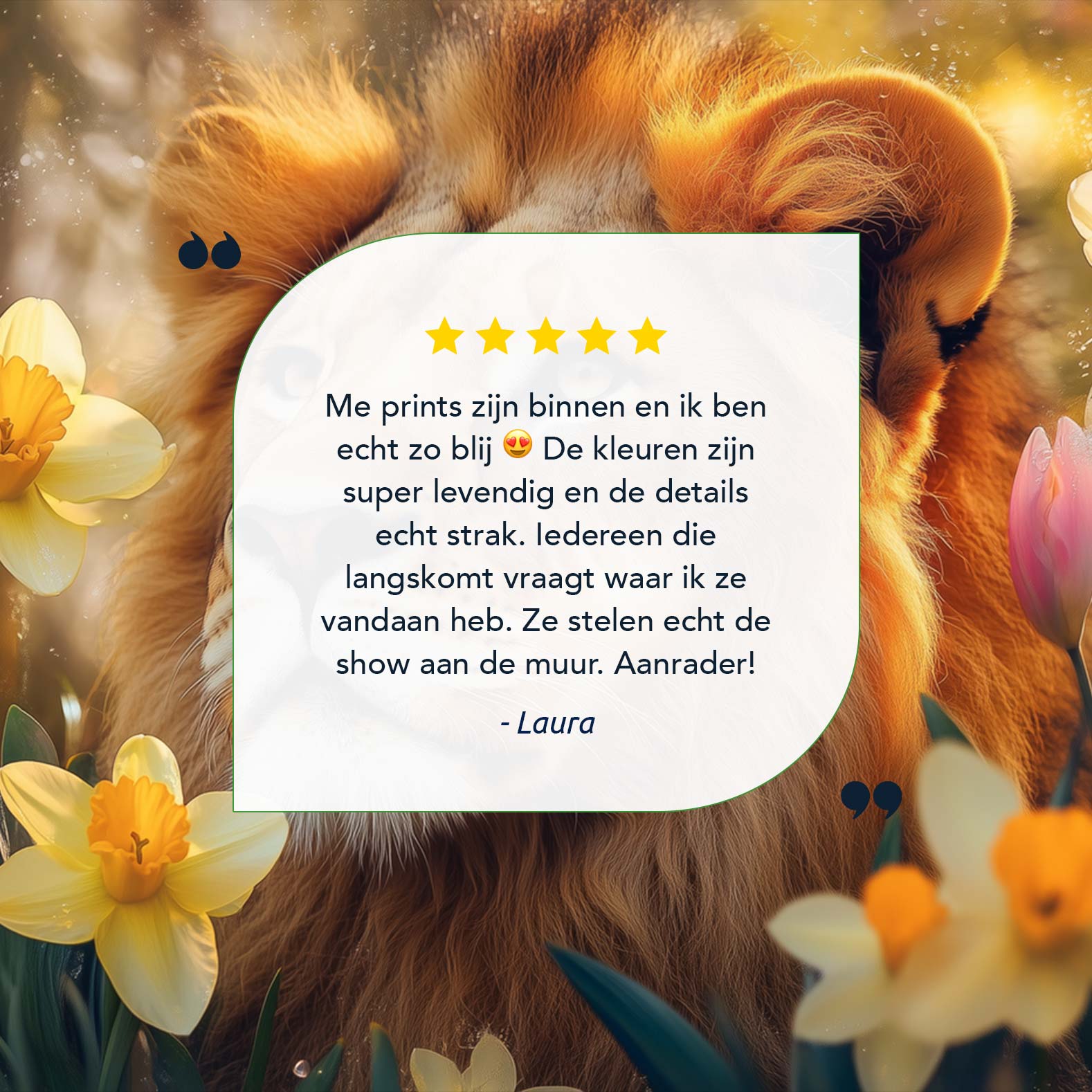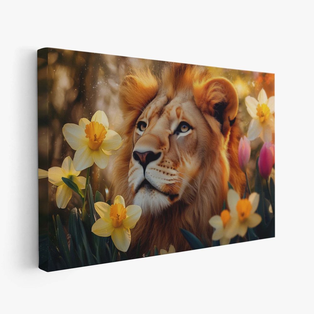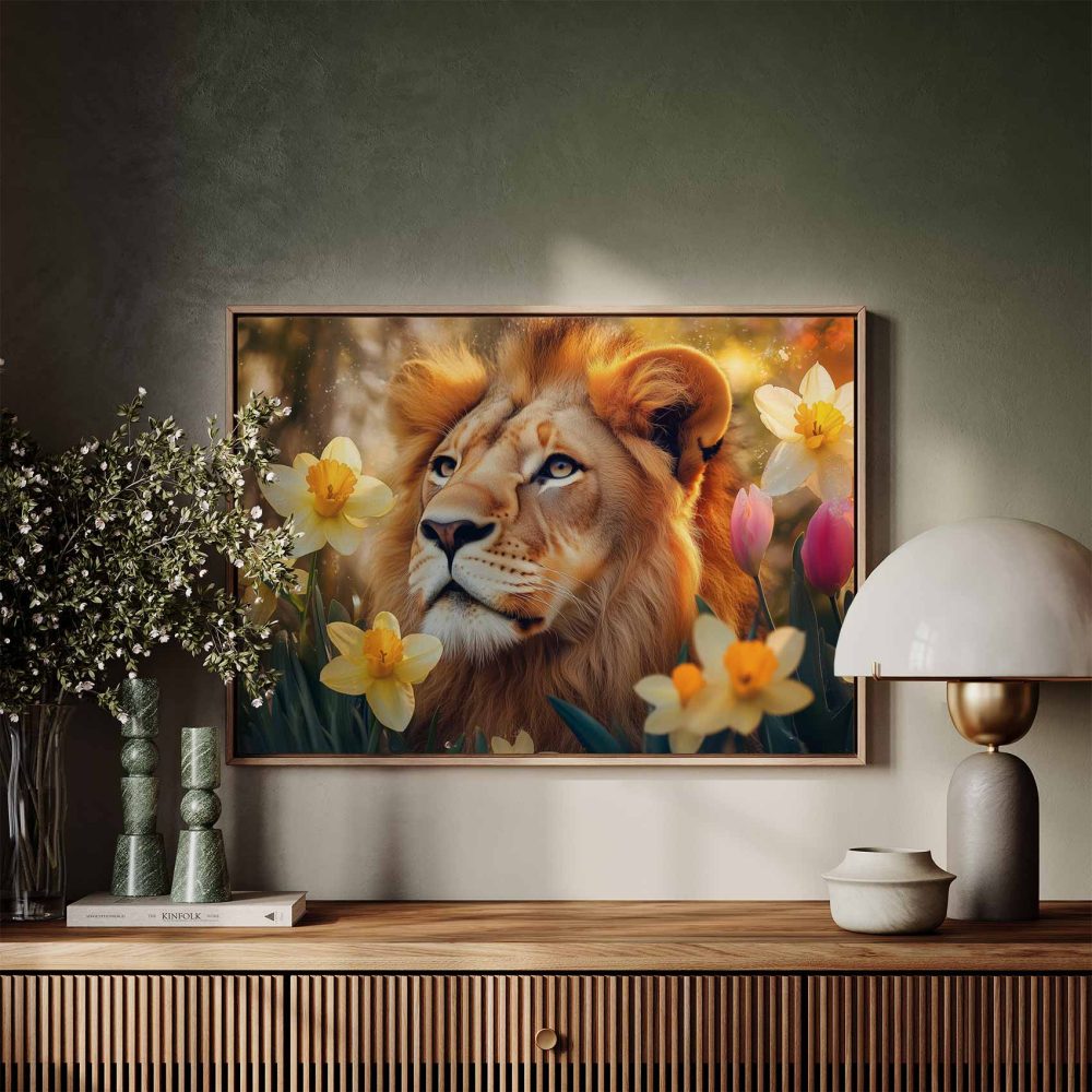 Leeuw tussen gouden bloemen