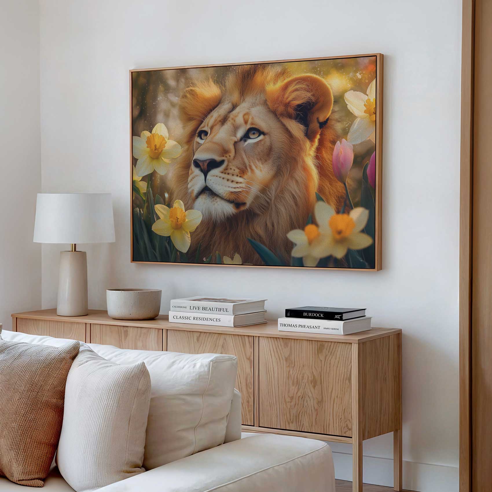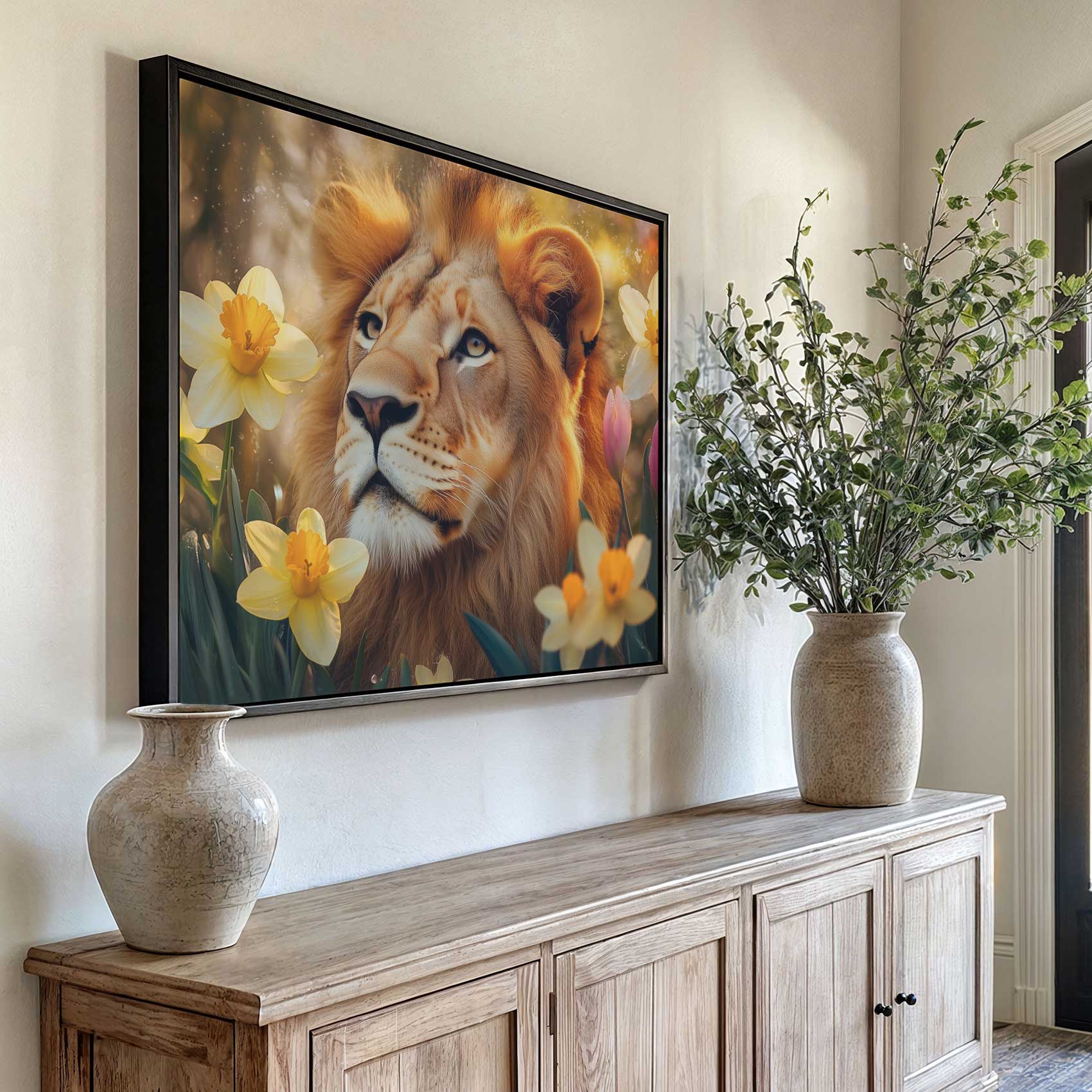 Terug naar collectie / Schilderijen / Bloemen Schilderij / Leeuw tussen gouden bloemen
