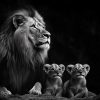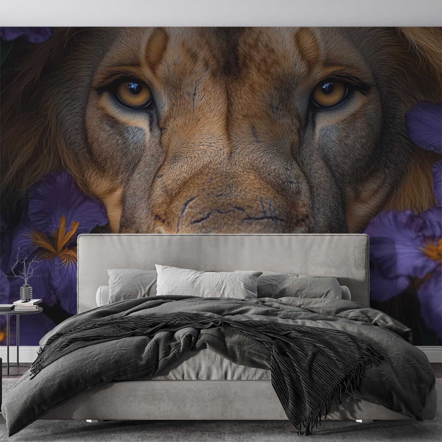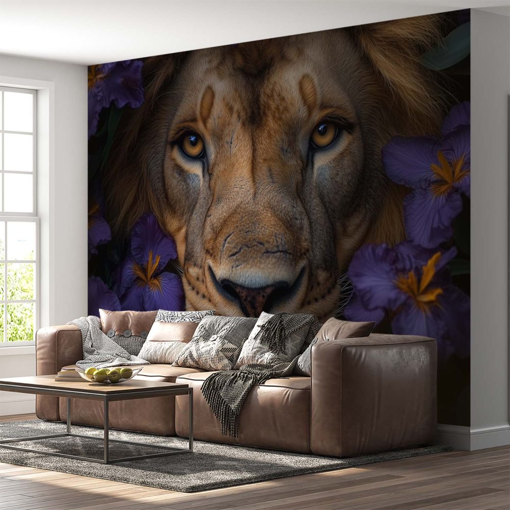 Leeuw tussen kleurrijke bloemen behang