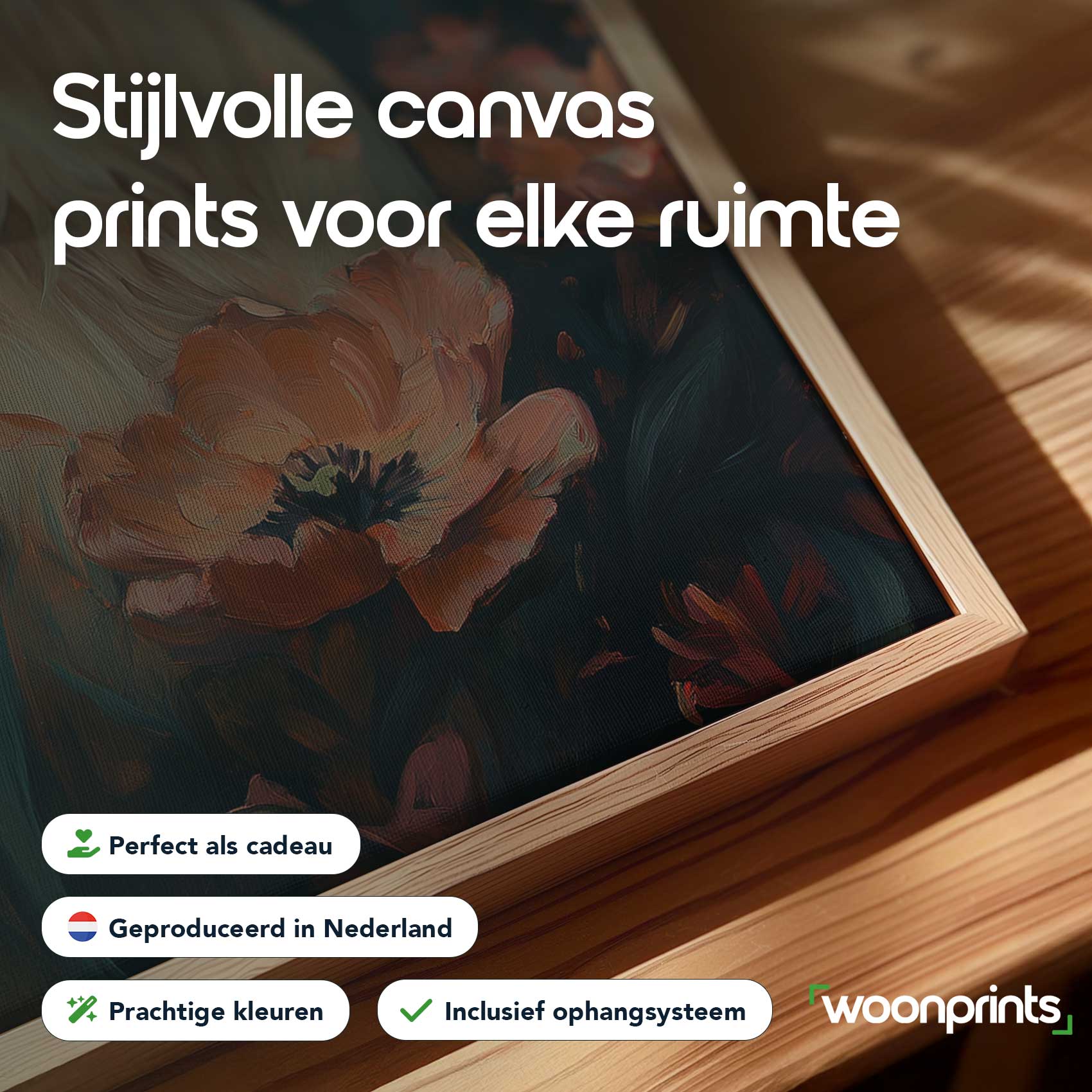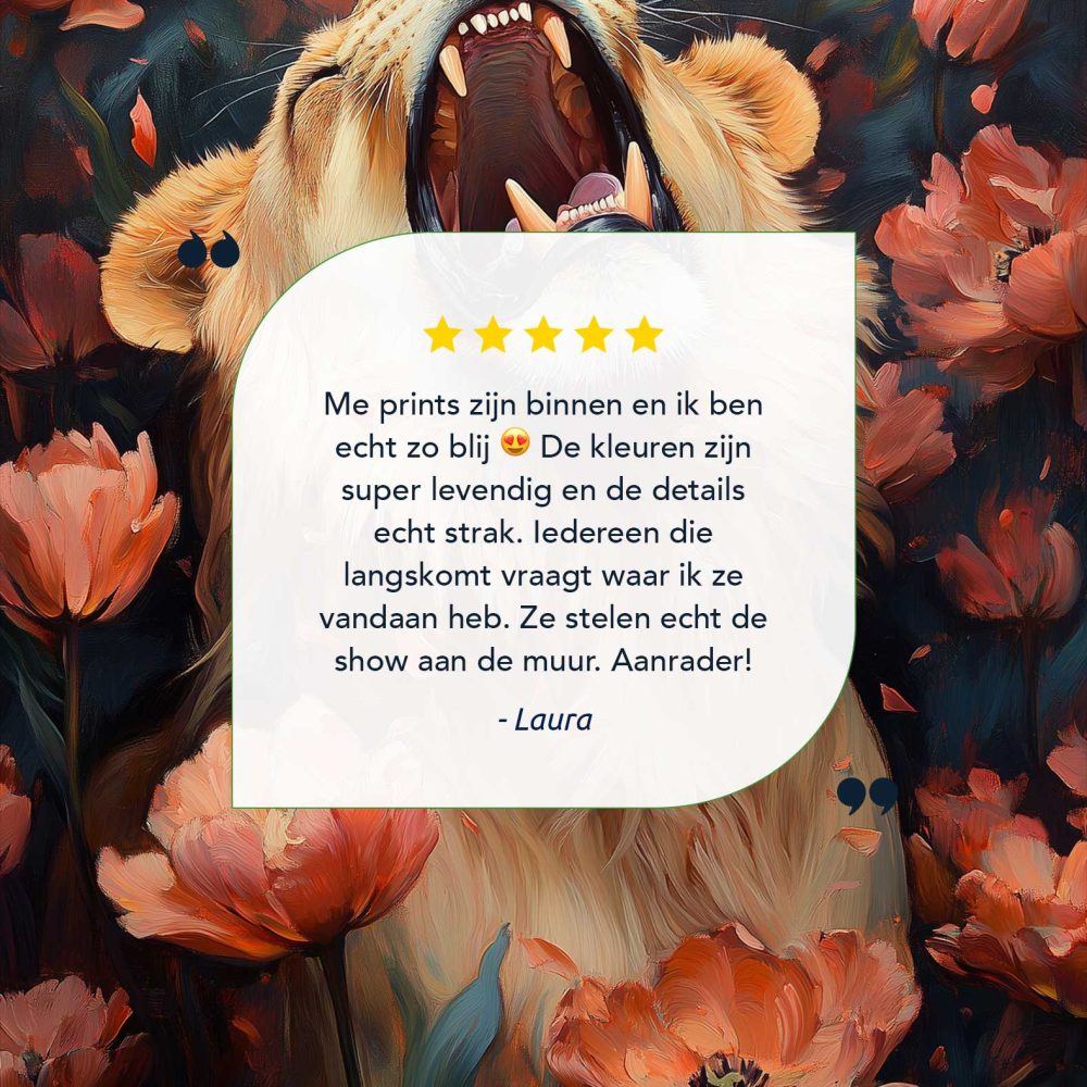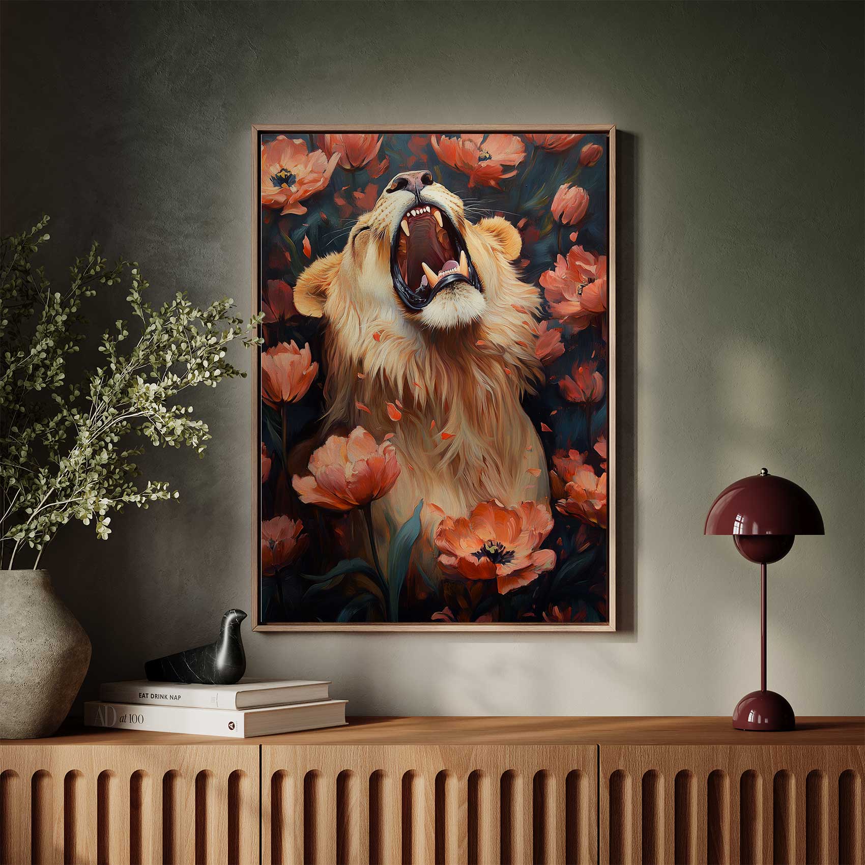Terug naar collectie / Schilderijen / Bloemen Schilderij / Leeuw tussen vlammende bloemen