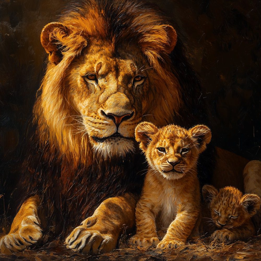 Leeuwenfamilie in natuur behang