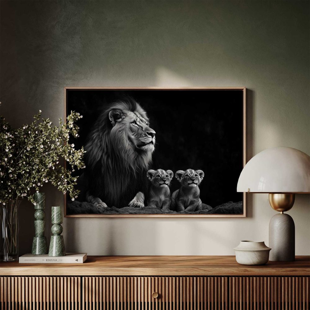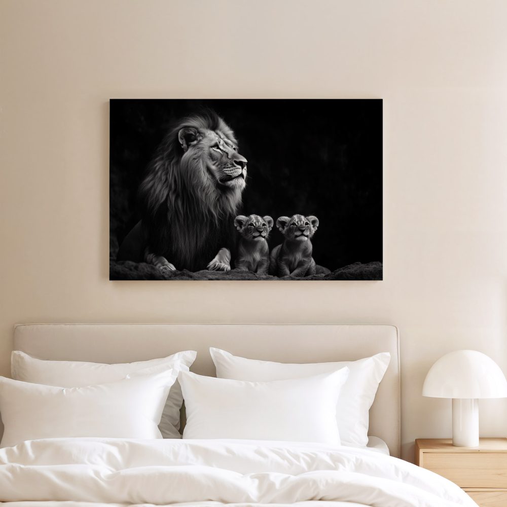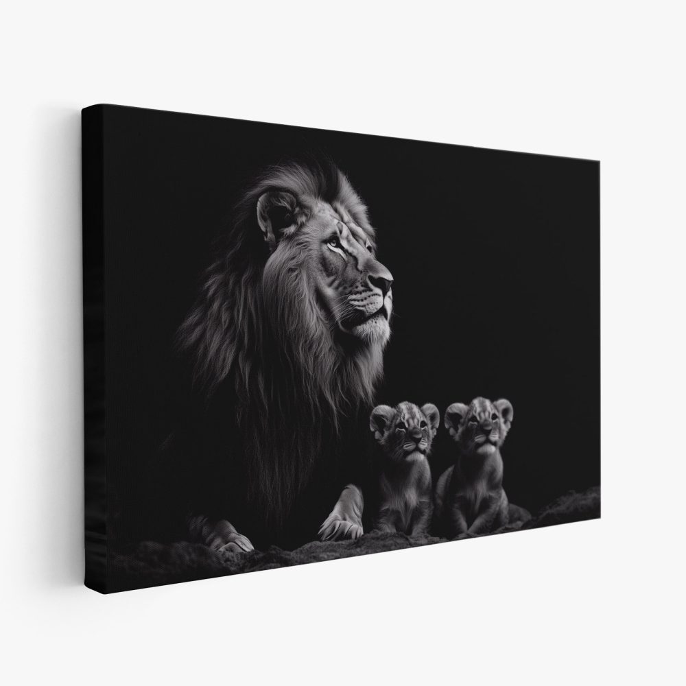 Terug naar collectie / Schilderijen / Dieren Schilderij / Leeuwenfamilie in zwart-wit