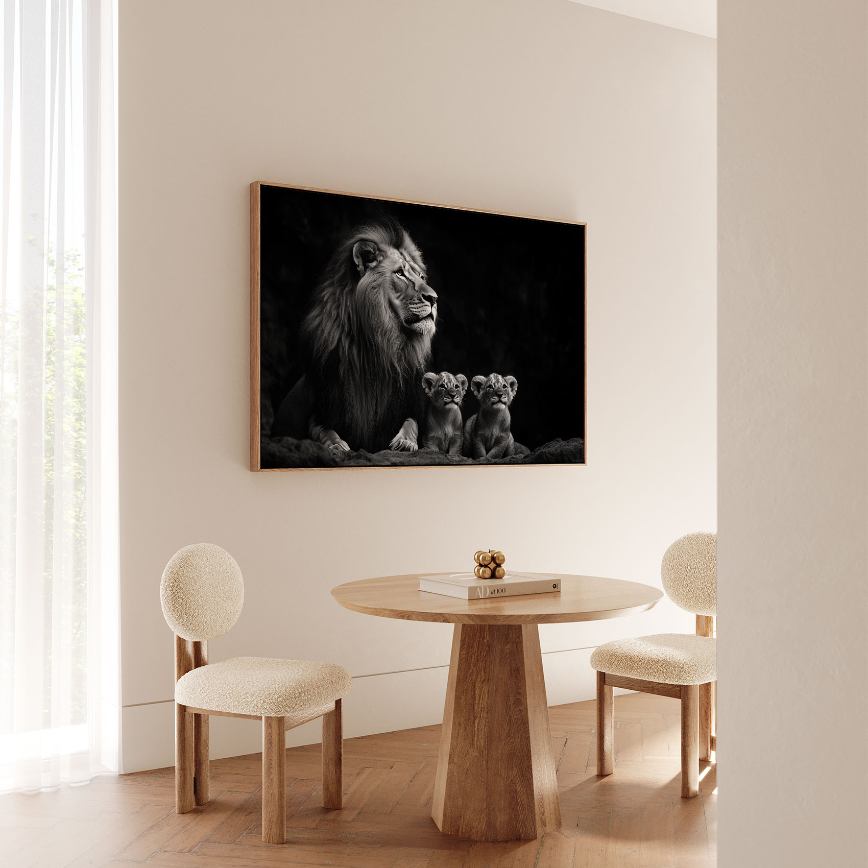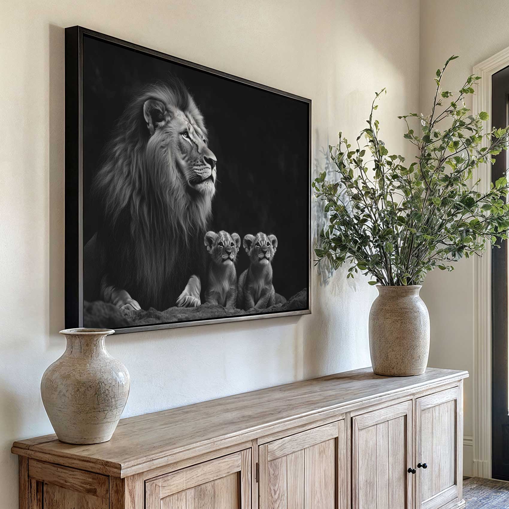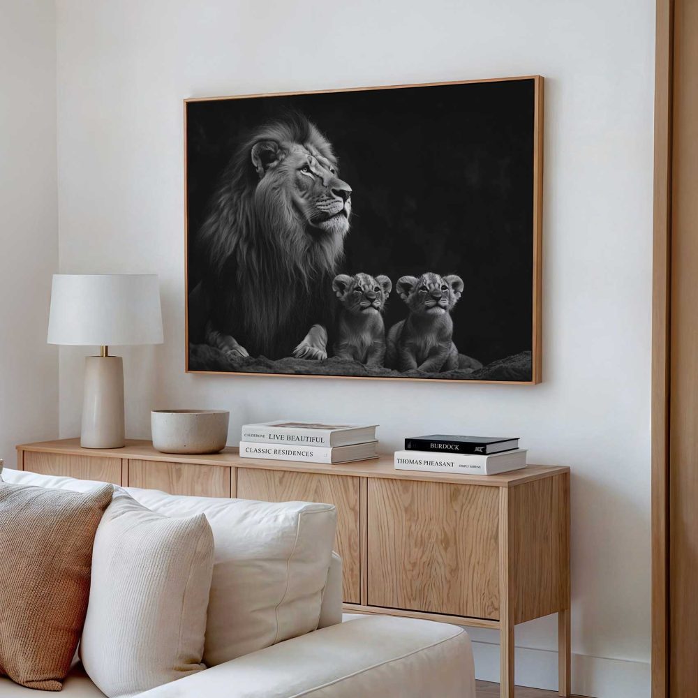 Terug naar collectie / Schilderijen / Dieren Schilderij / Leeuwenfamilie in zwart-wit