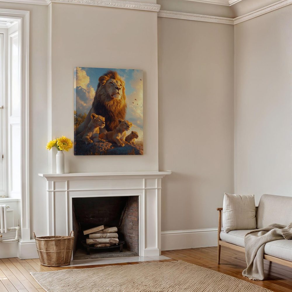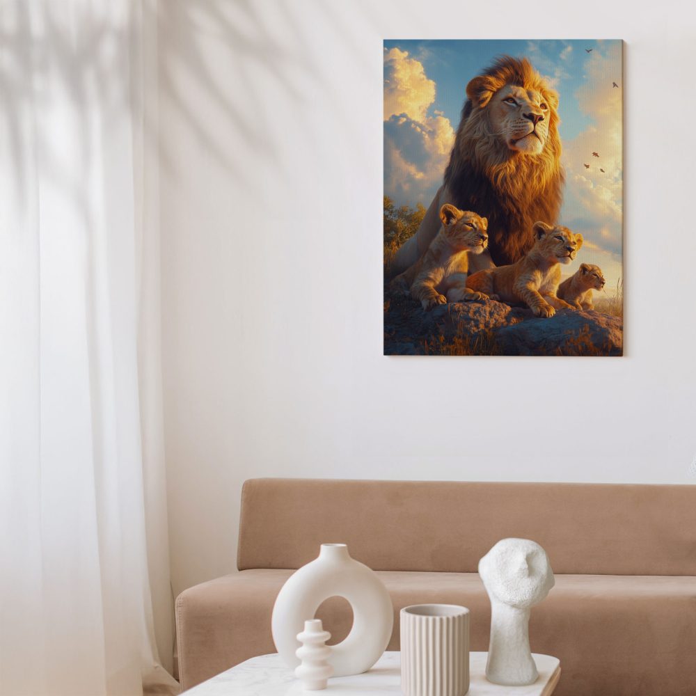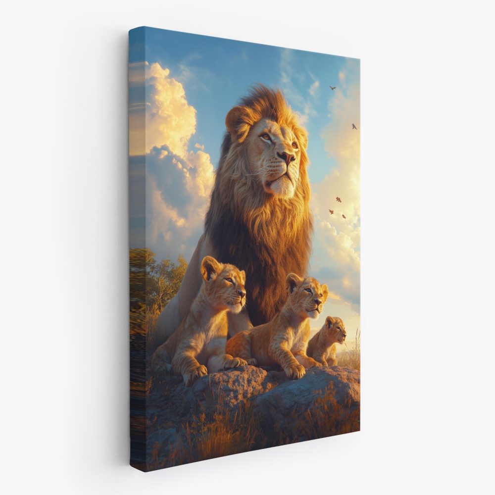 Leeuwenfamilie op rots