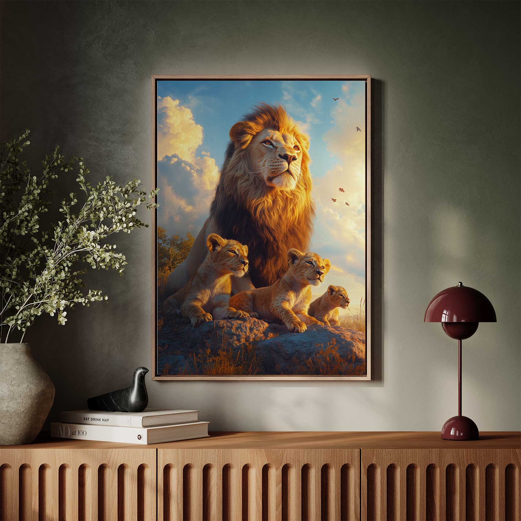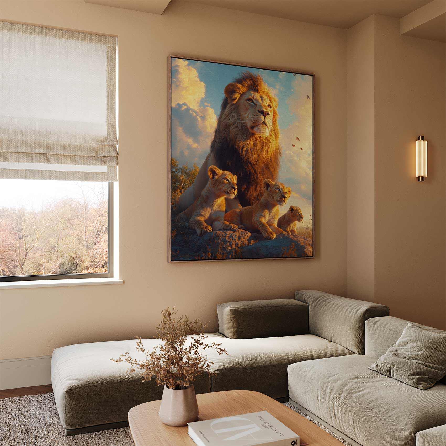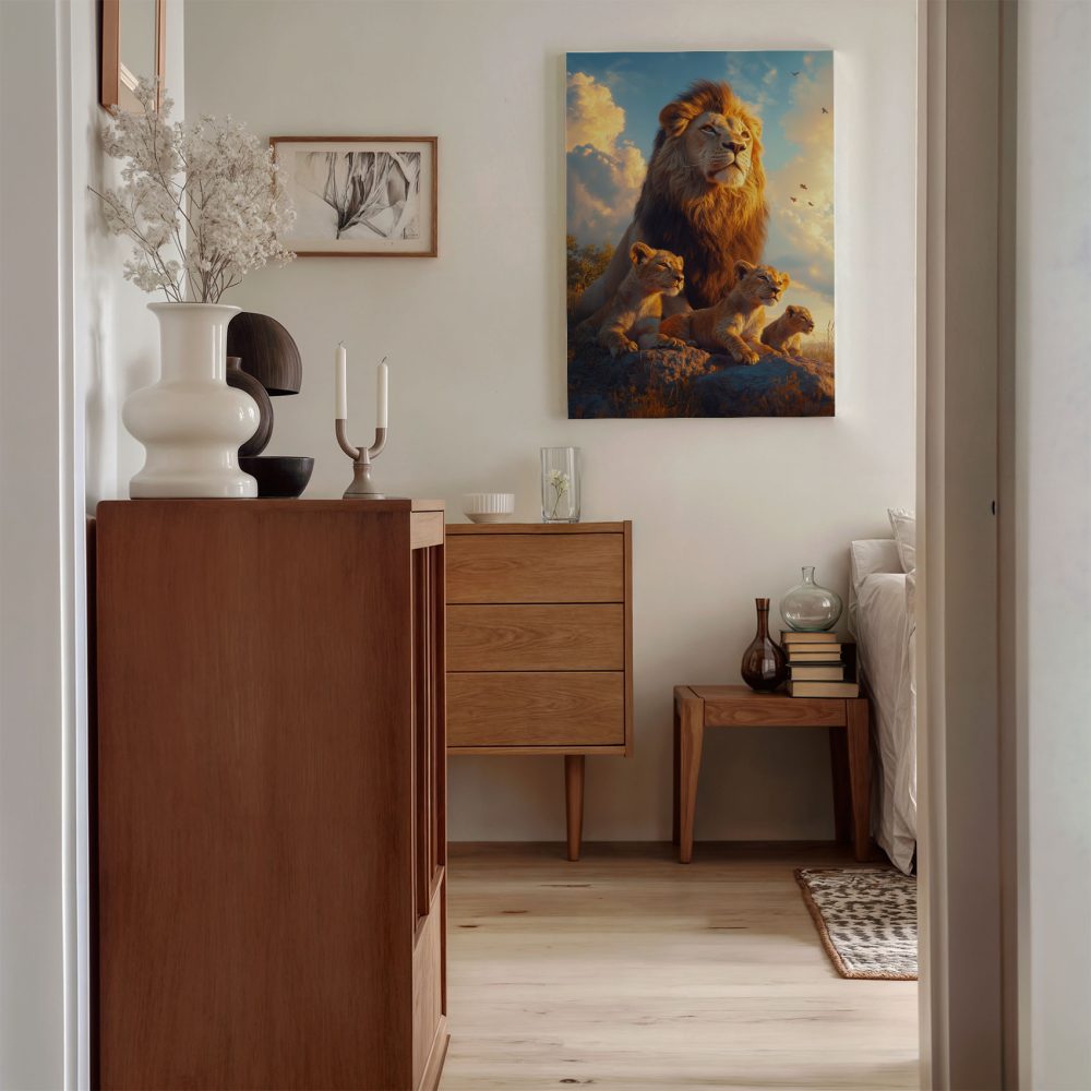 Leeuwenfamilie op rots