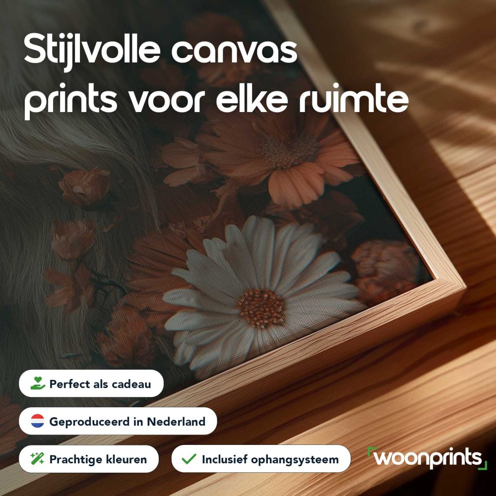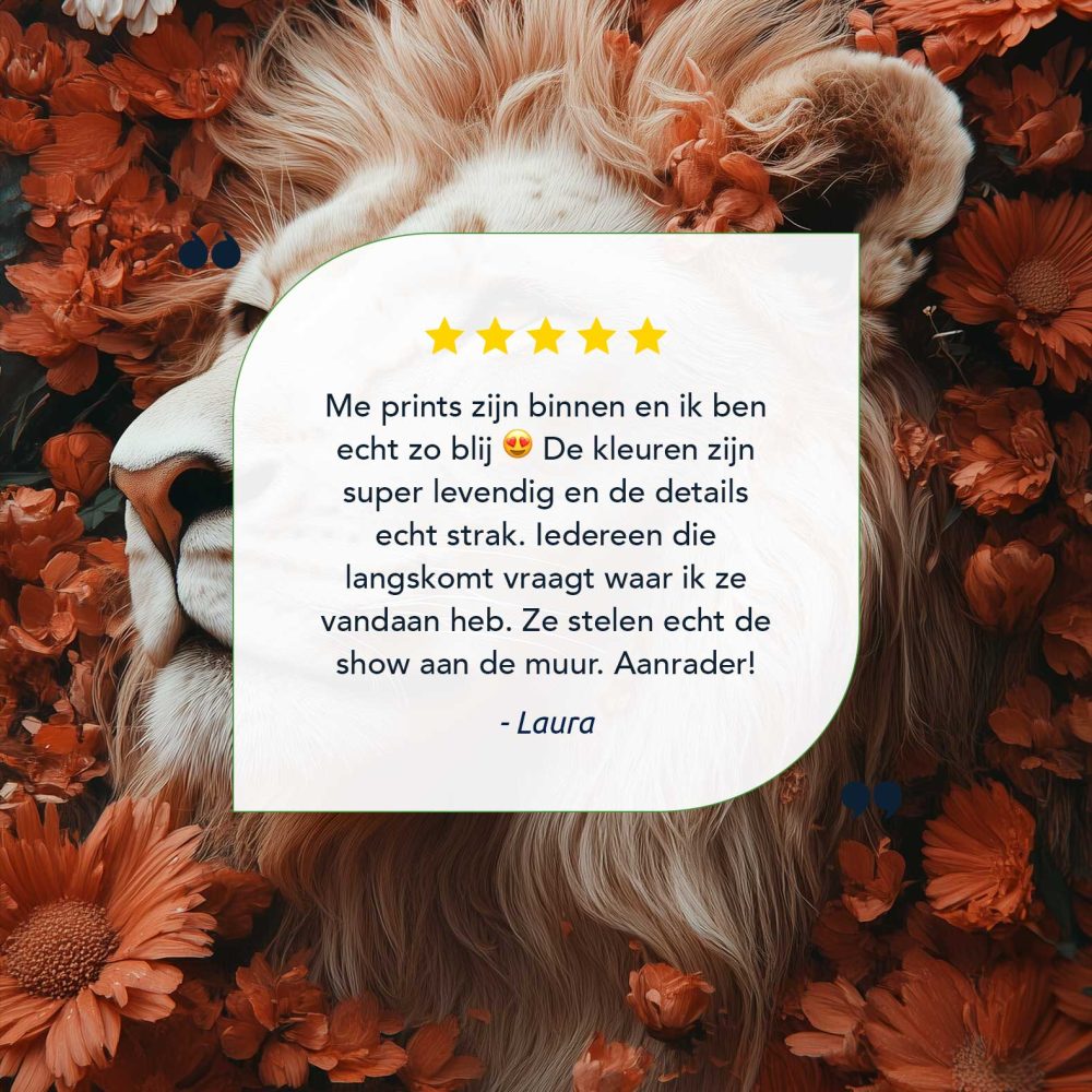 Terug naar collectie / Schilderijen / Bloemen Schilderij / Leeuwenkop met bloemenkrans