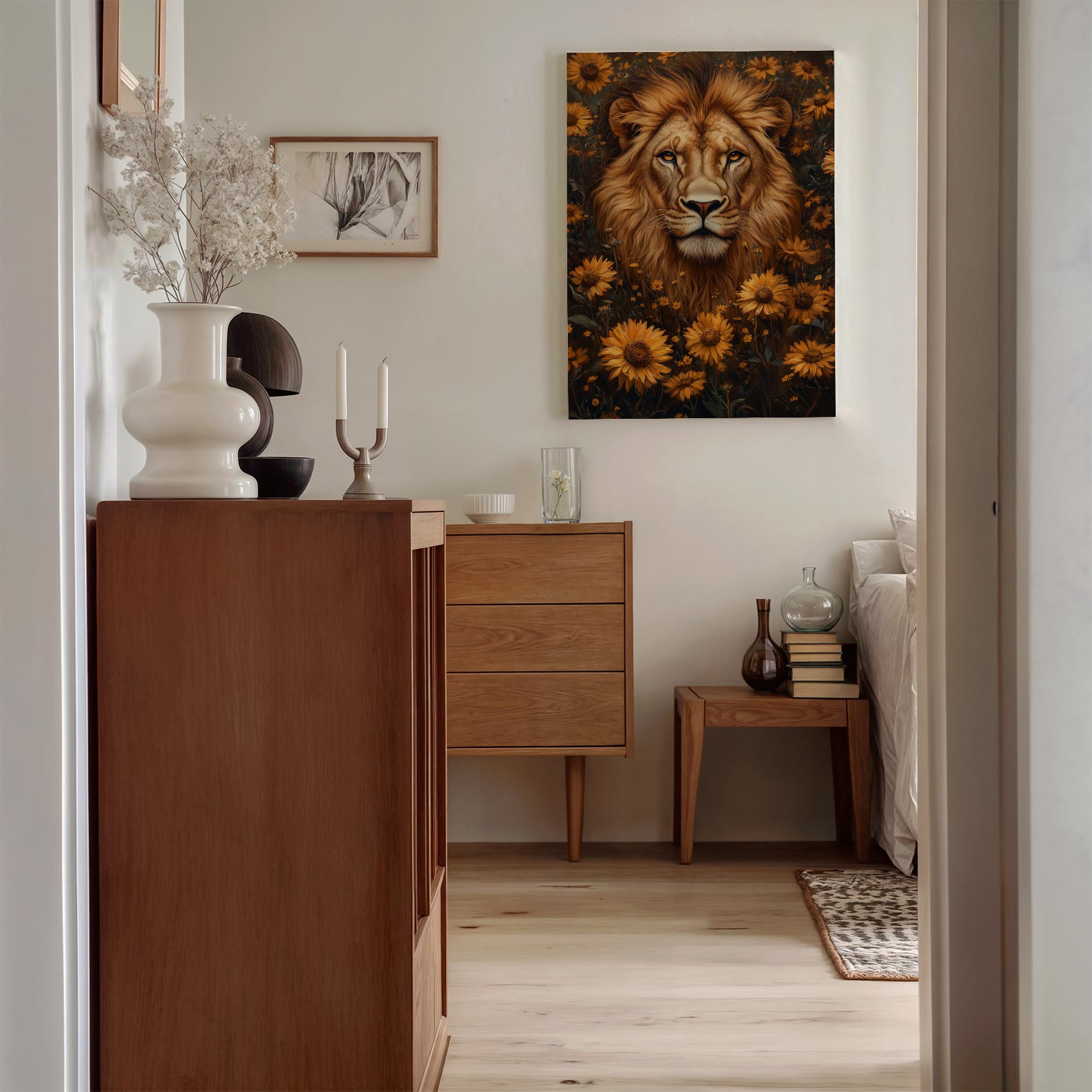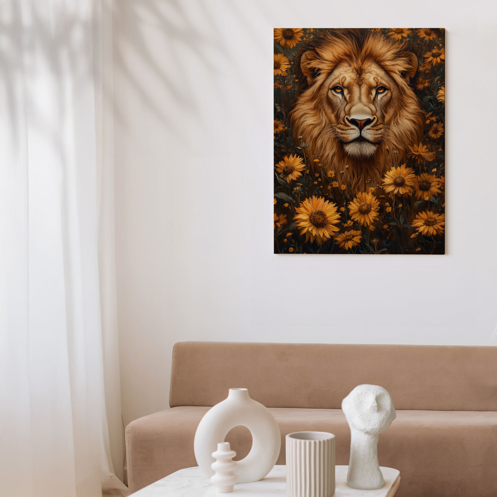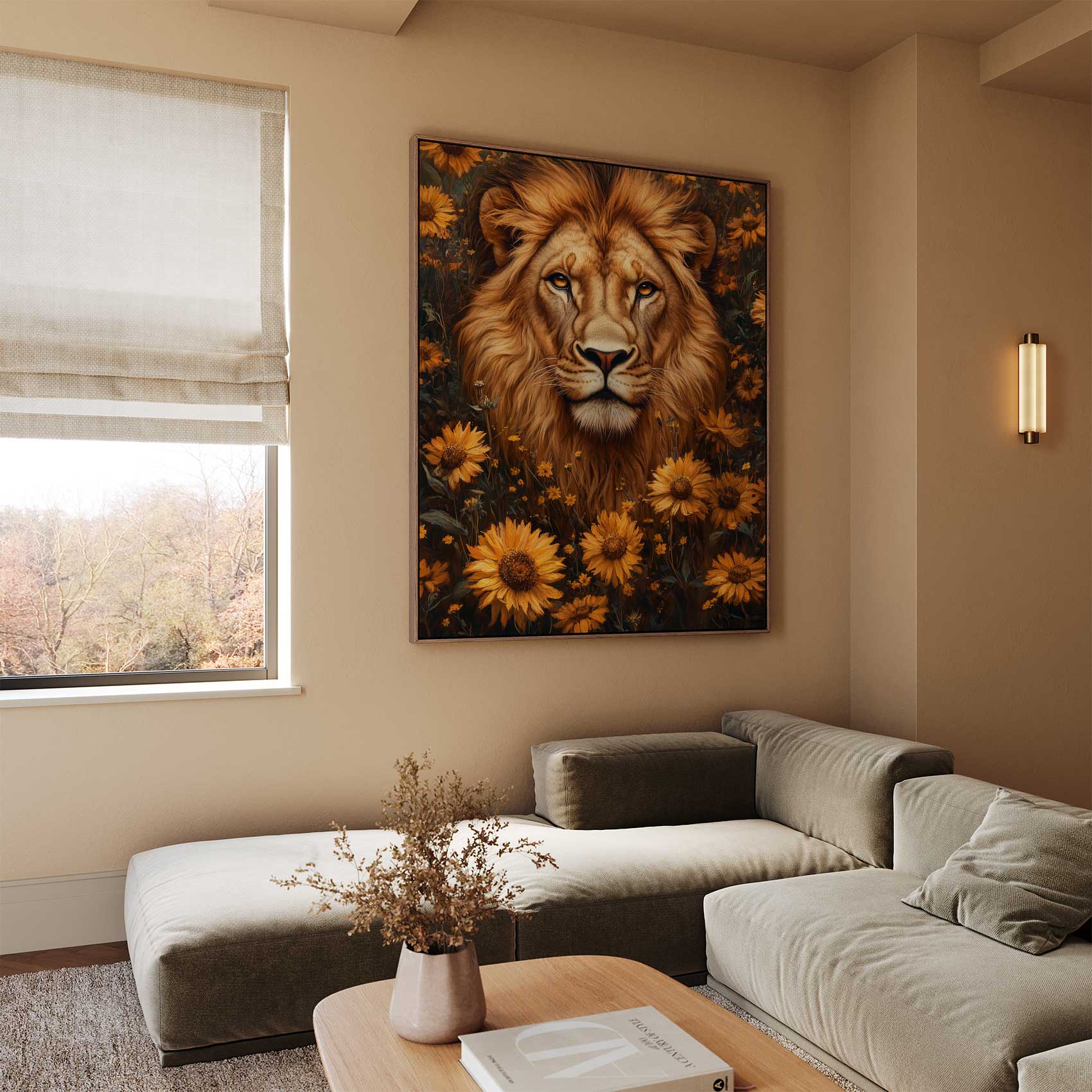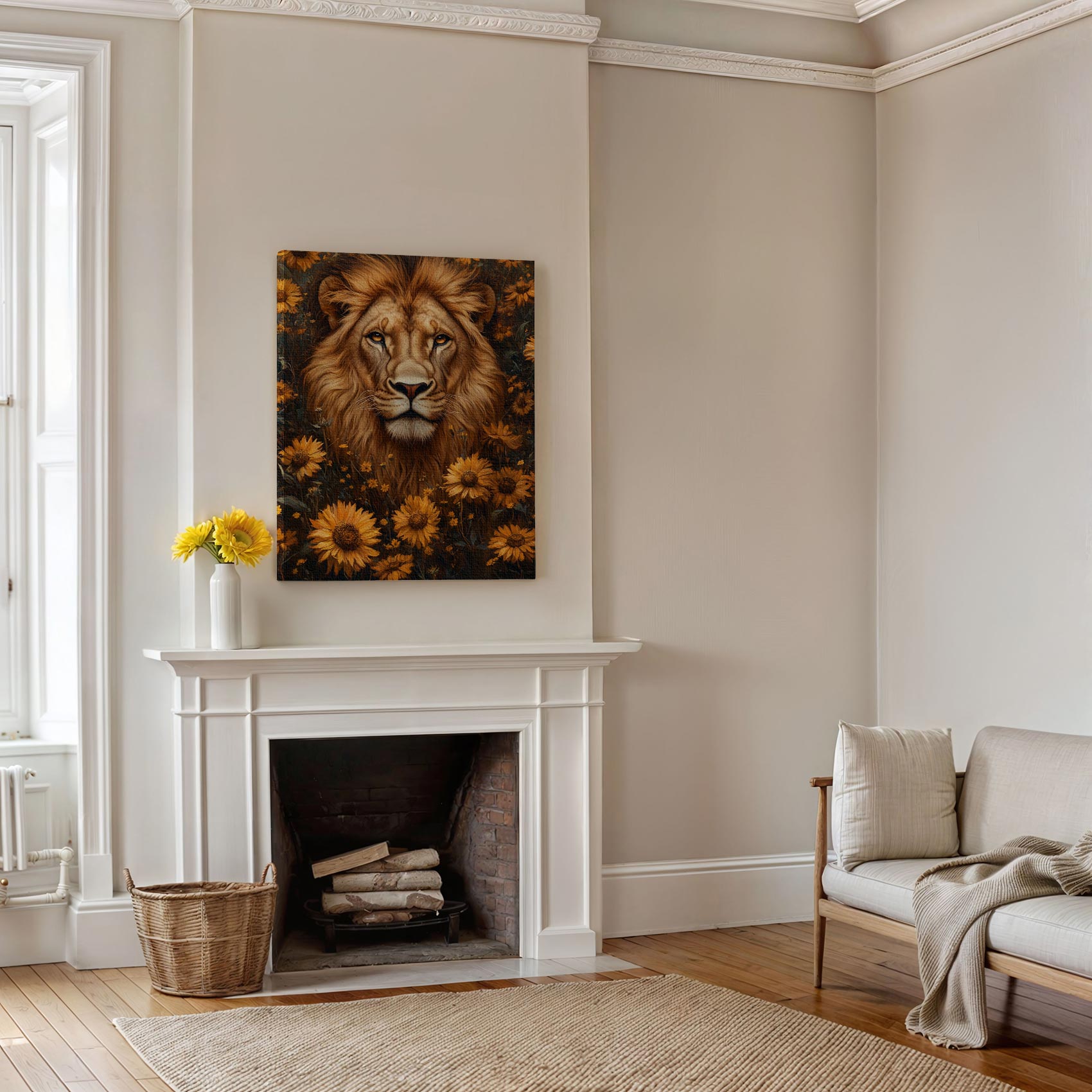 Leeuwenkop met gele bloemen