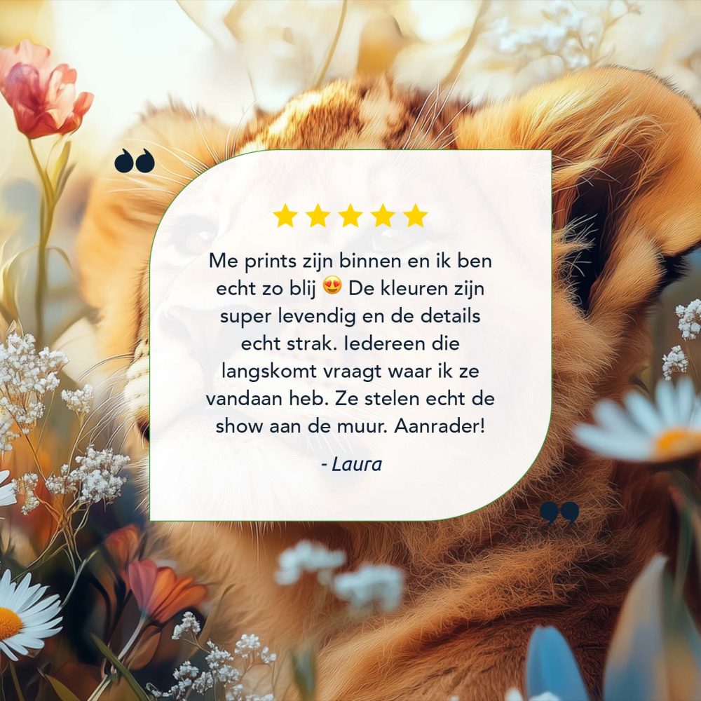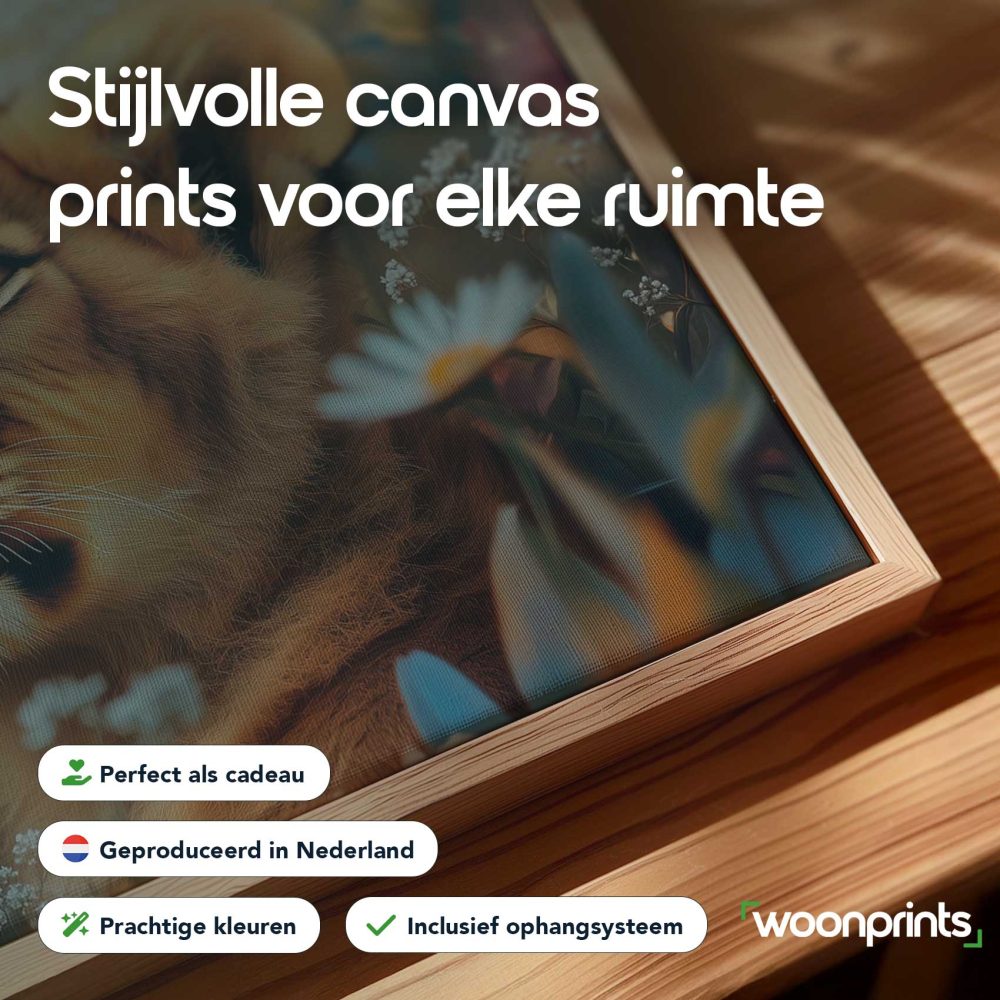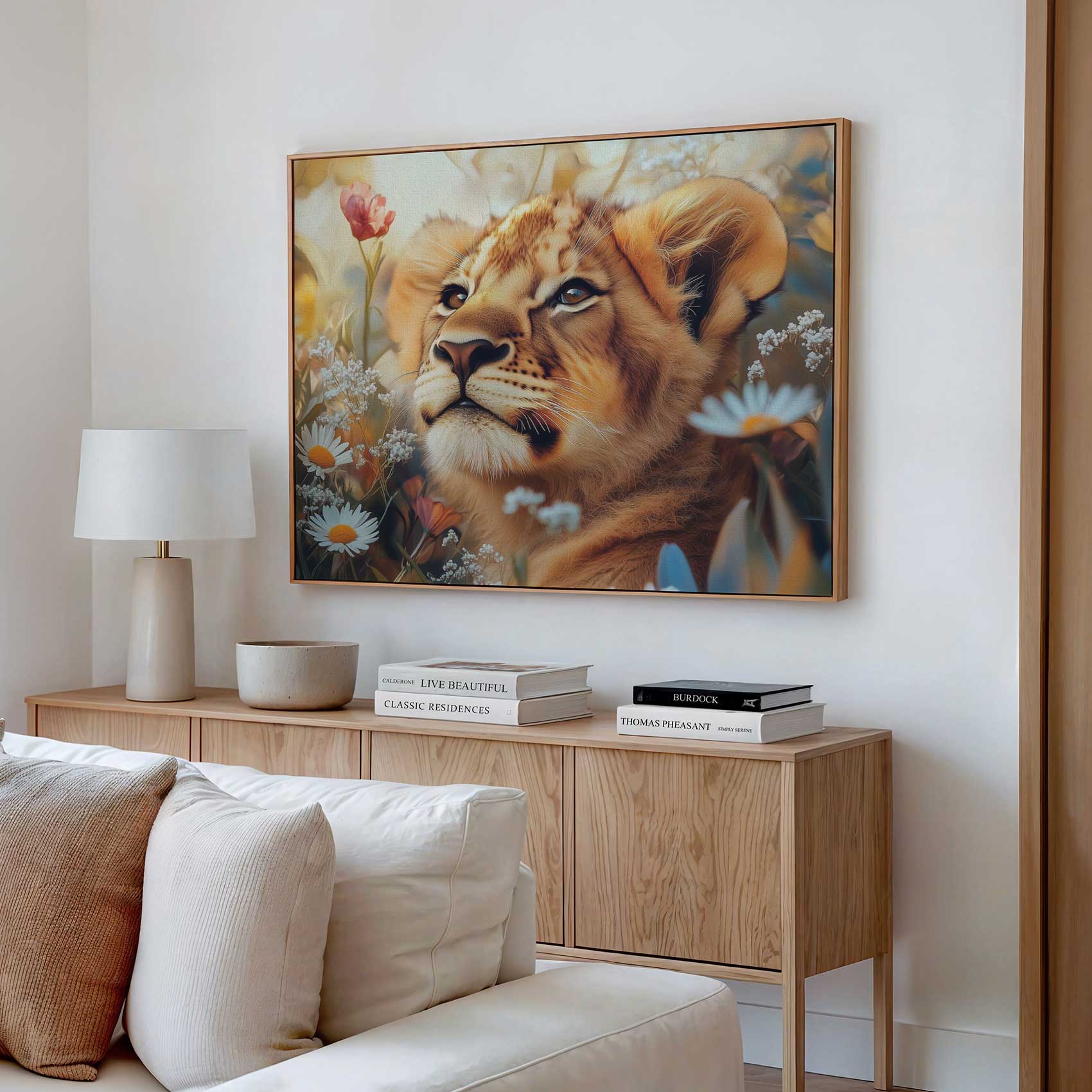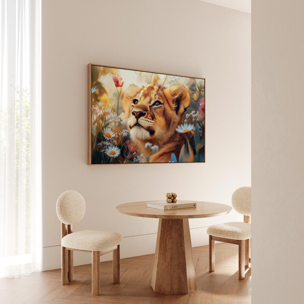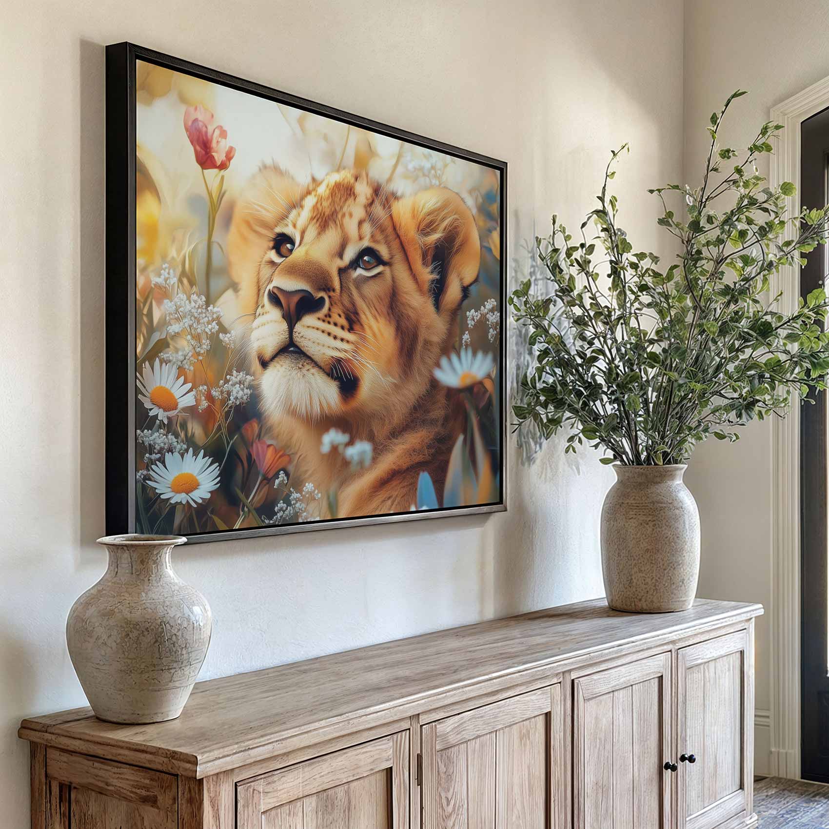 Terug naar collectie / Schilderijen / Bloemen Schilderij / Leeuwenwelp in bloemenveld