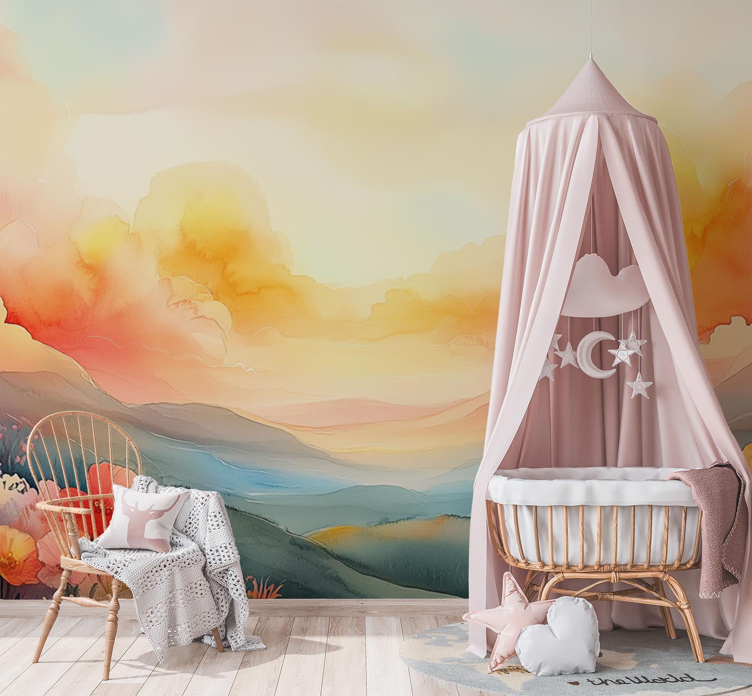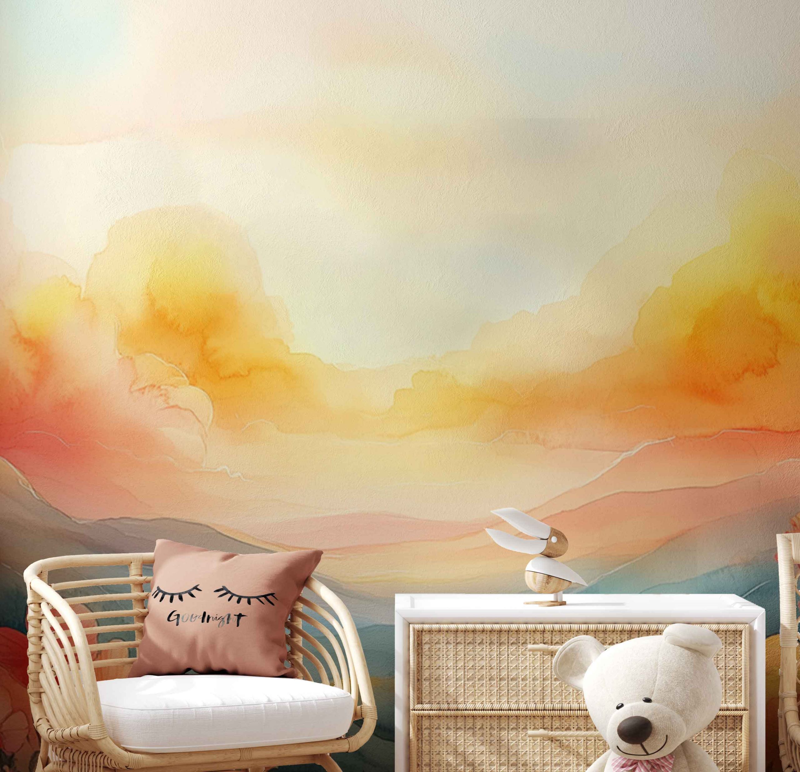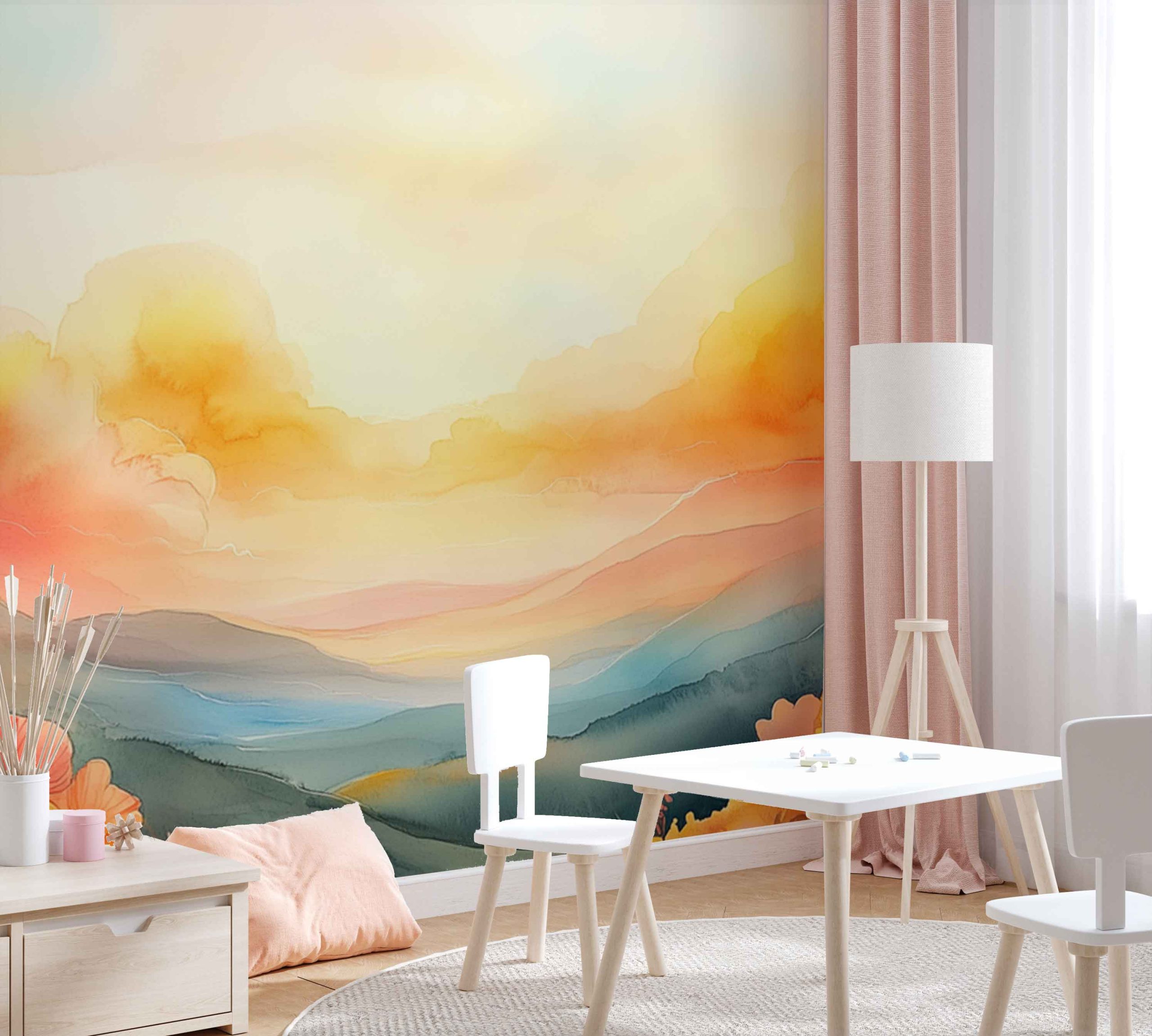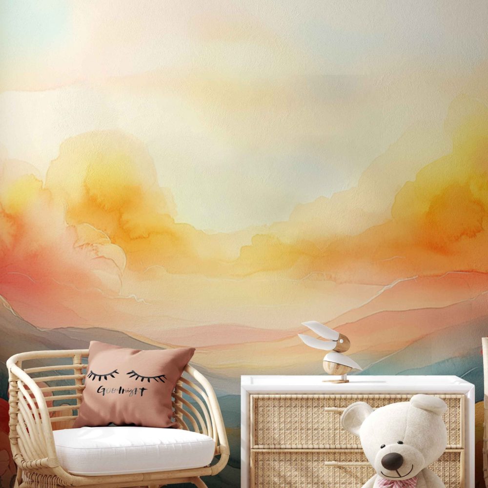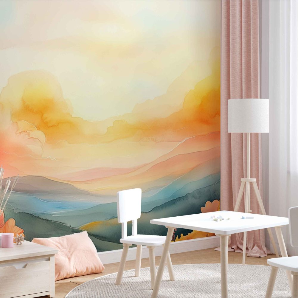 Terug naar collectie / Behang / Kinderkamer behang / Babykamer behang / Levendig Berglandschap Waterverf behang