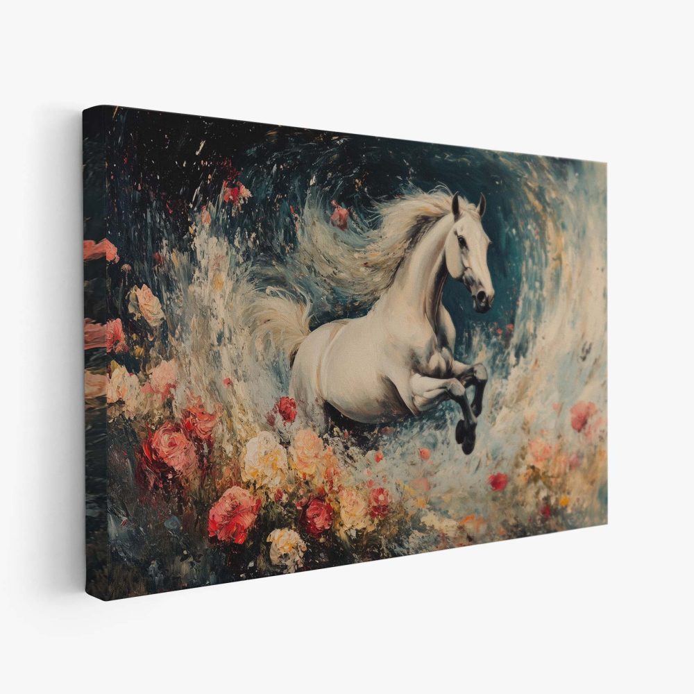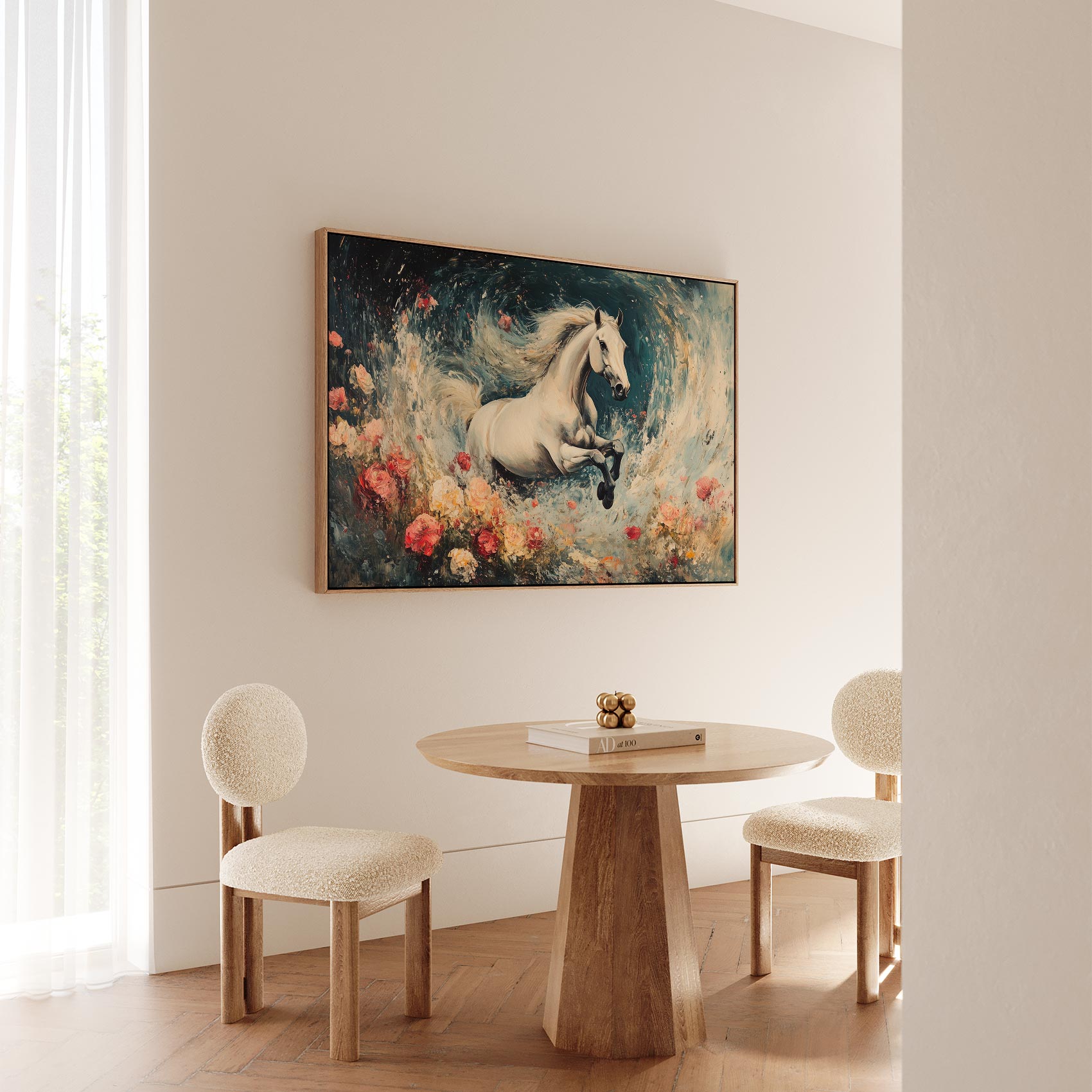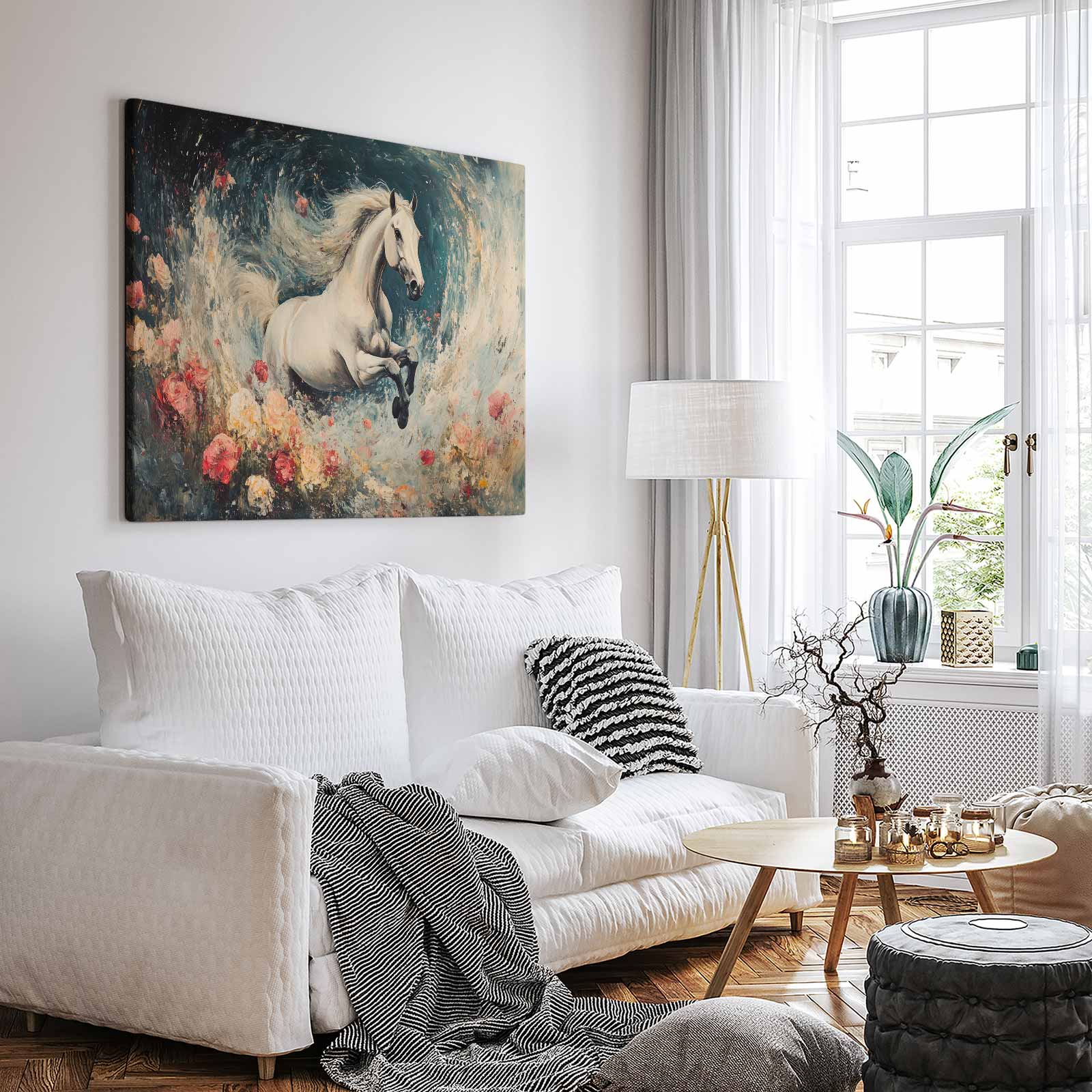 Terug naar collectie / Schilderijen / Bloemen Schilderij / Levendig paard in bloemenzee