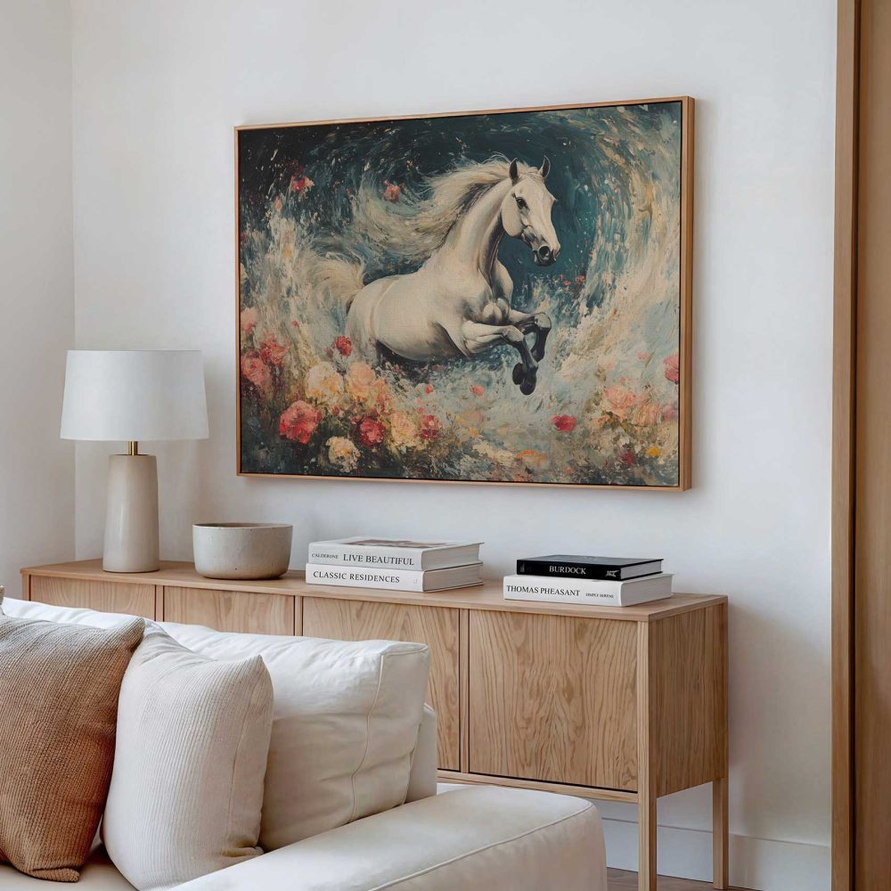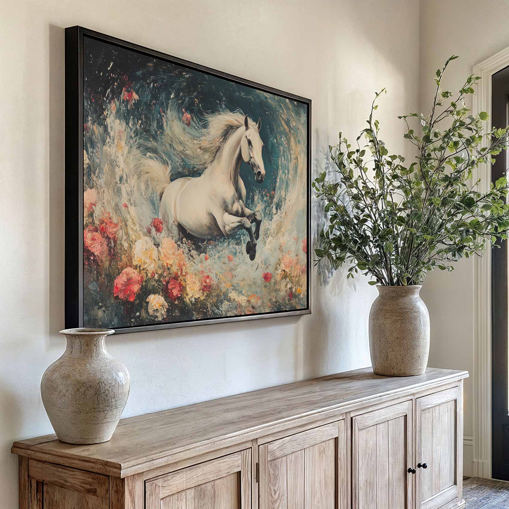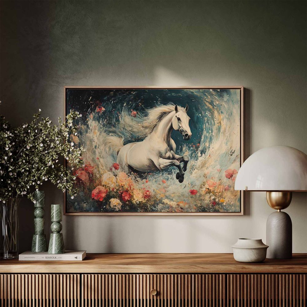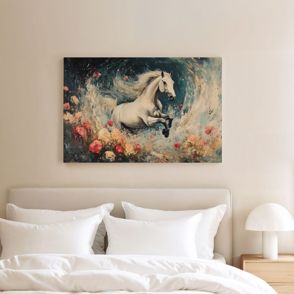 Terug naar collectie / Schilderijen / Bloemen Schilderij / Levendig paard in bloemenzee