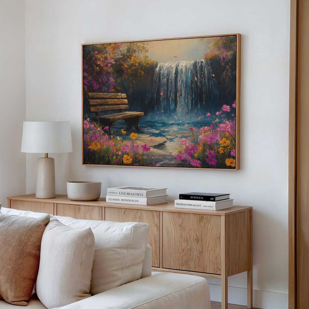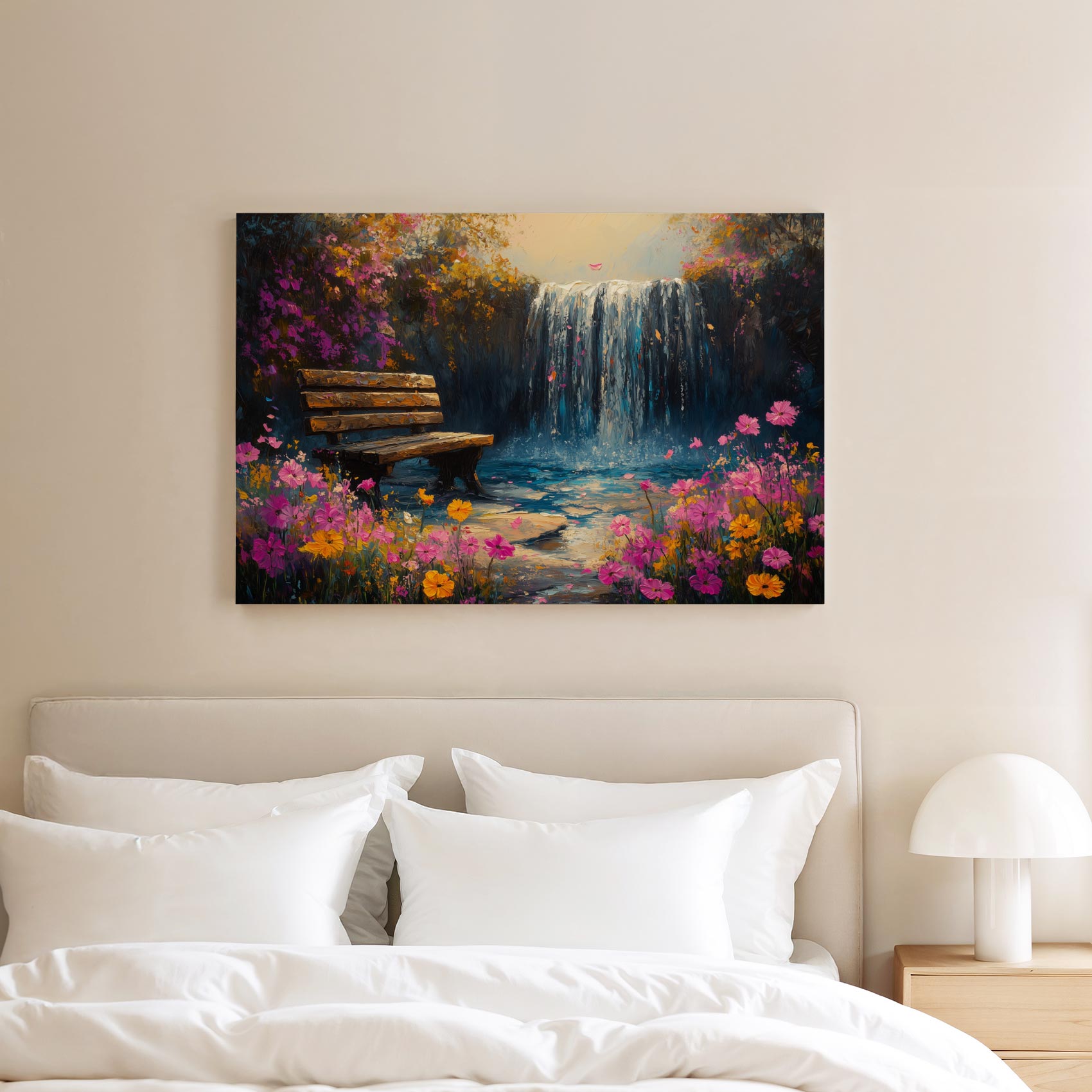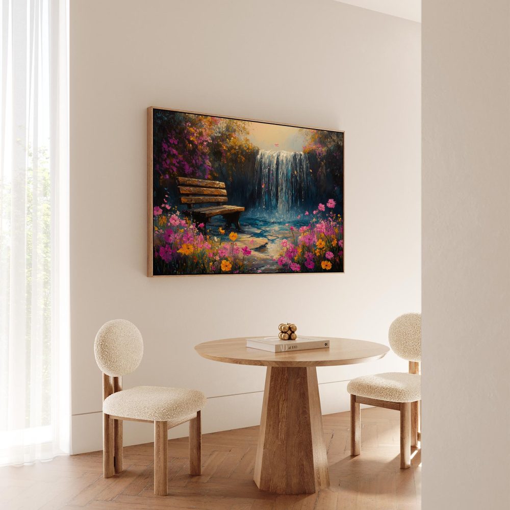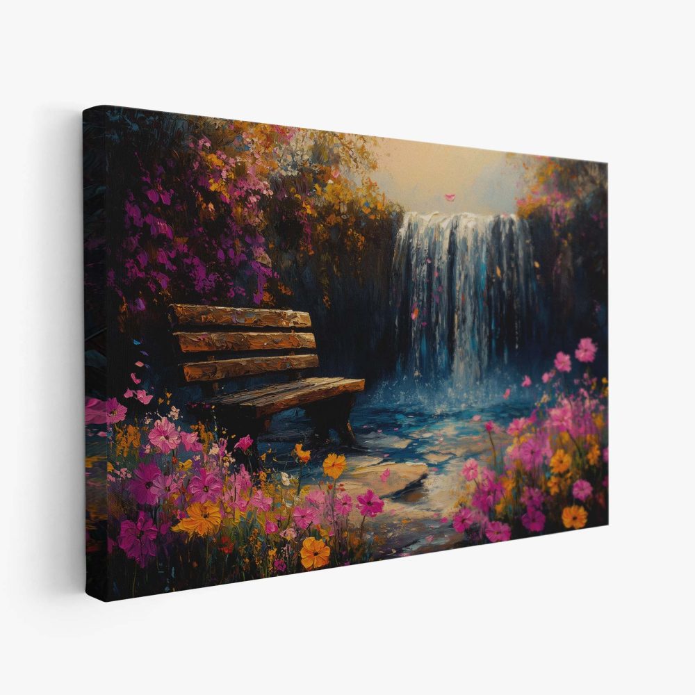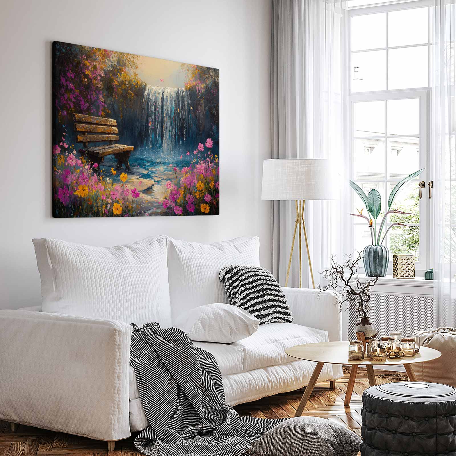 Terug naar collectie / Schilderijen / Bloemen Schilderij / Levendig parktafereel met waterval