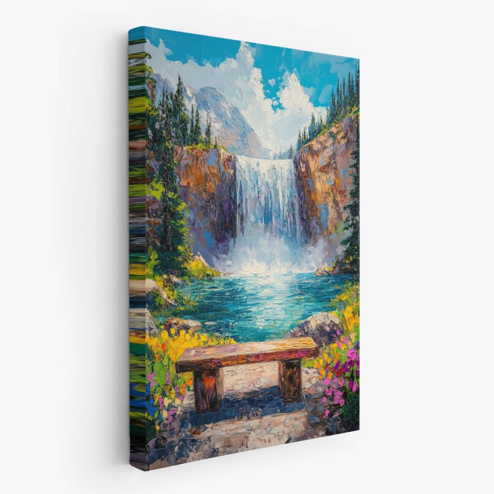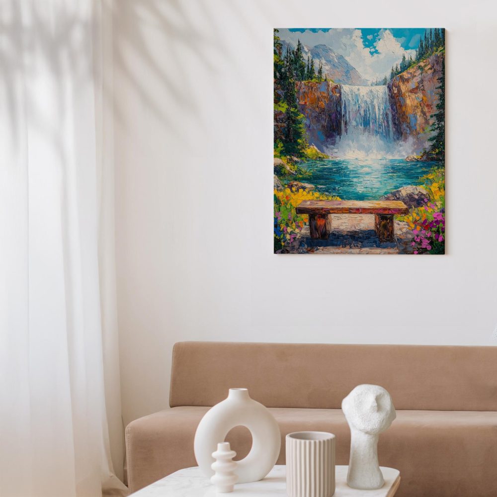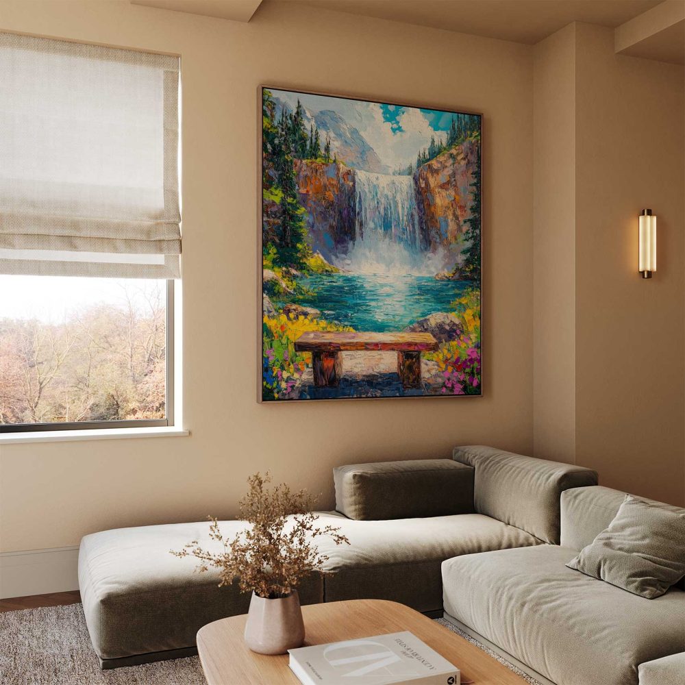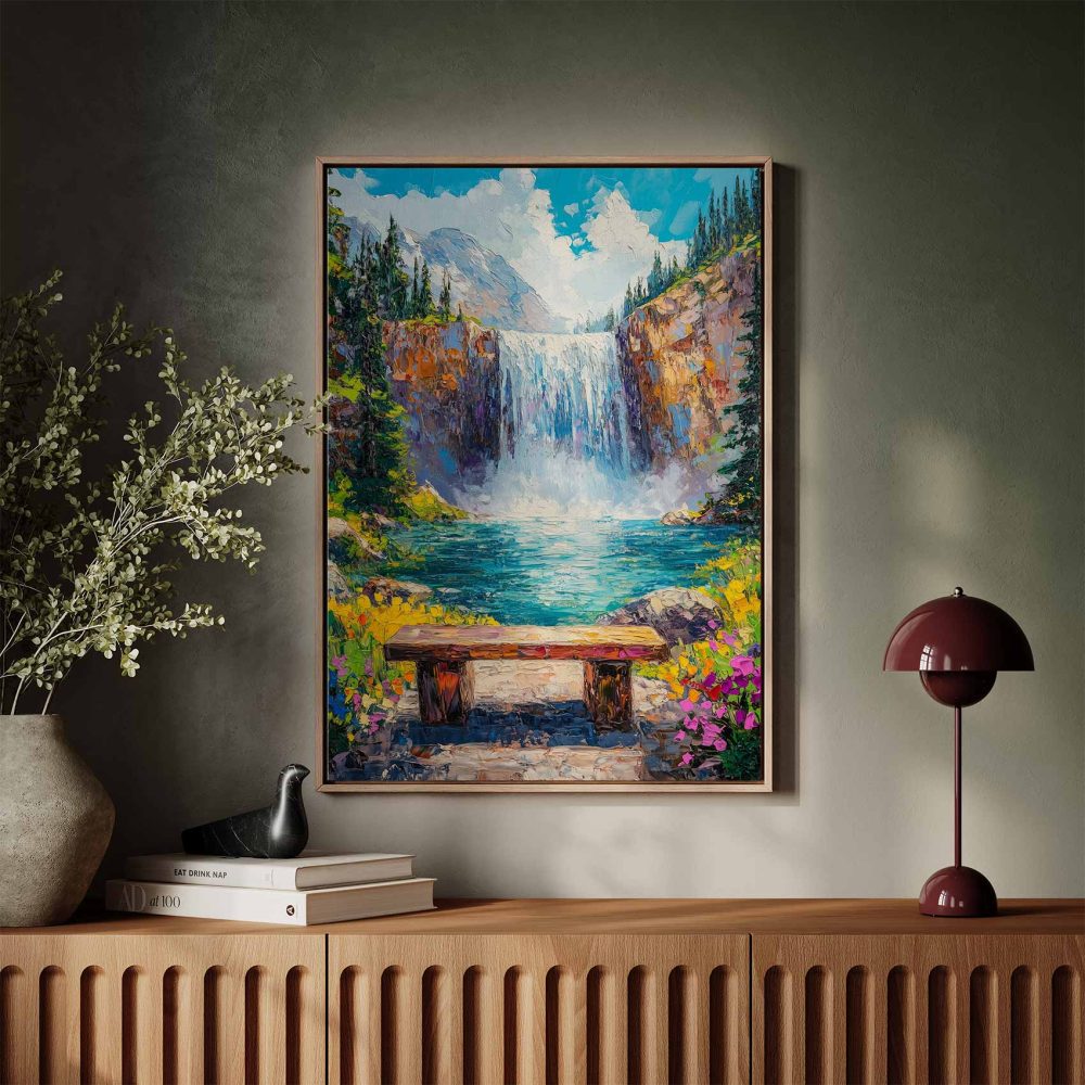 Terug naar collectie / Schilderijen / Bergen Schilderij / Levendig waterval schilderij