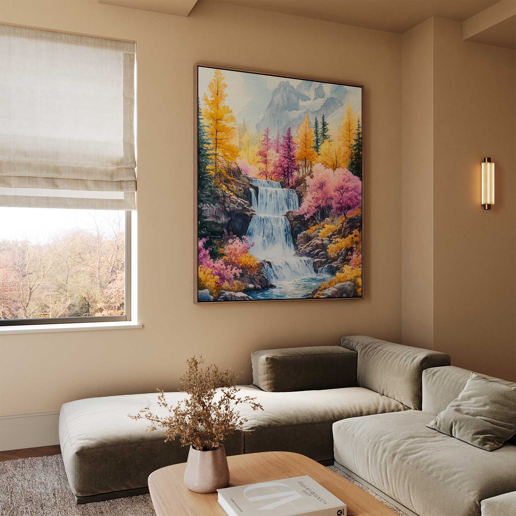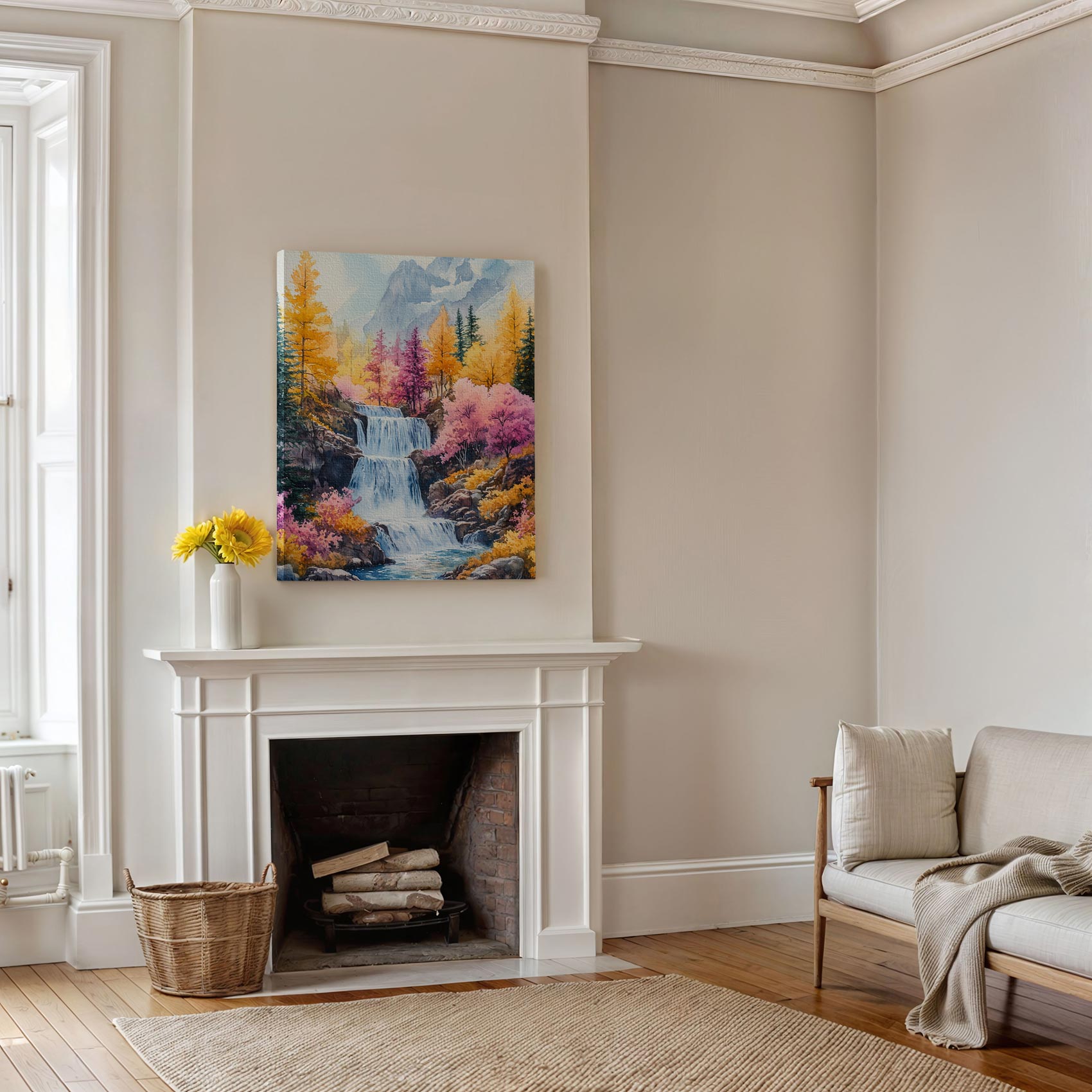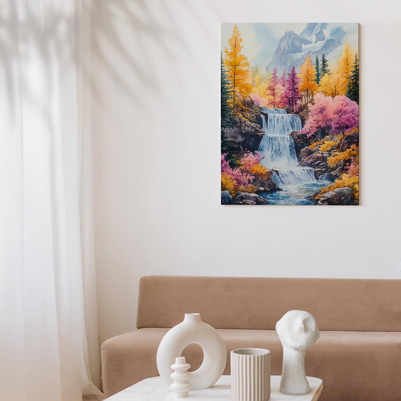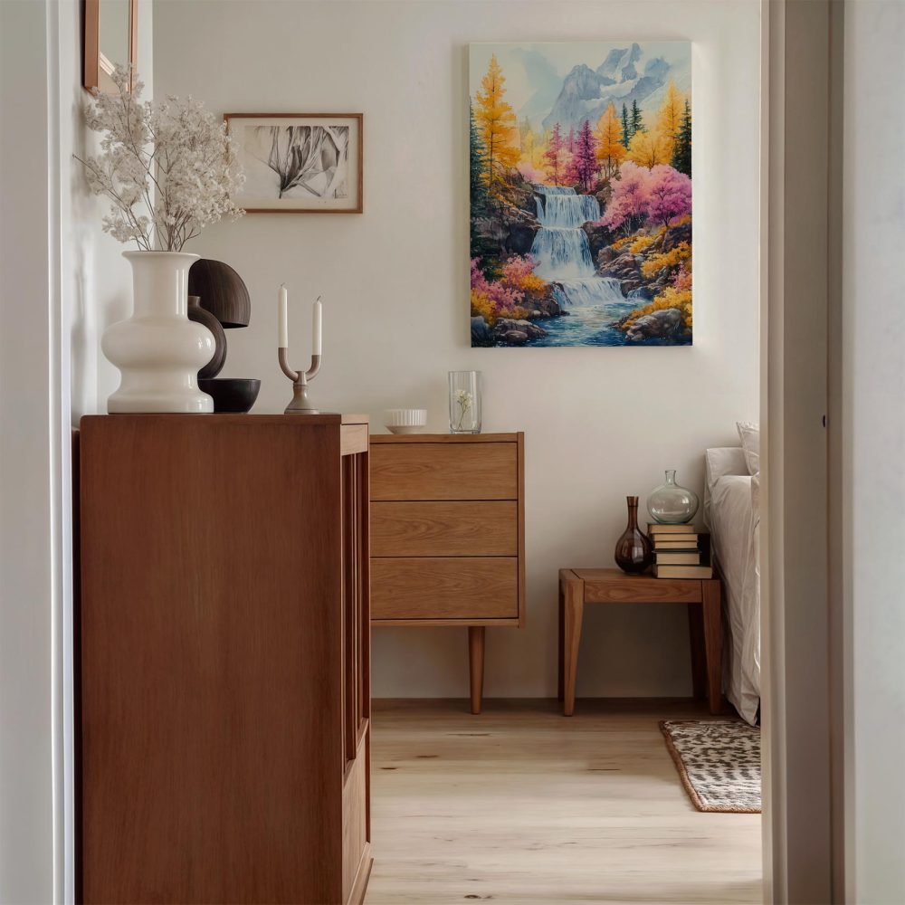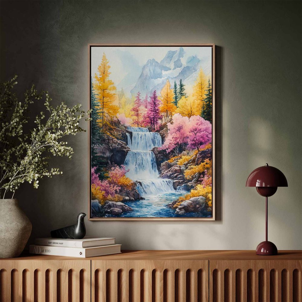 Terug naar collectie / Schilderijen / Bergen Schilderij / Levendig watervalgebergte