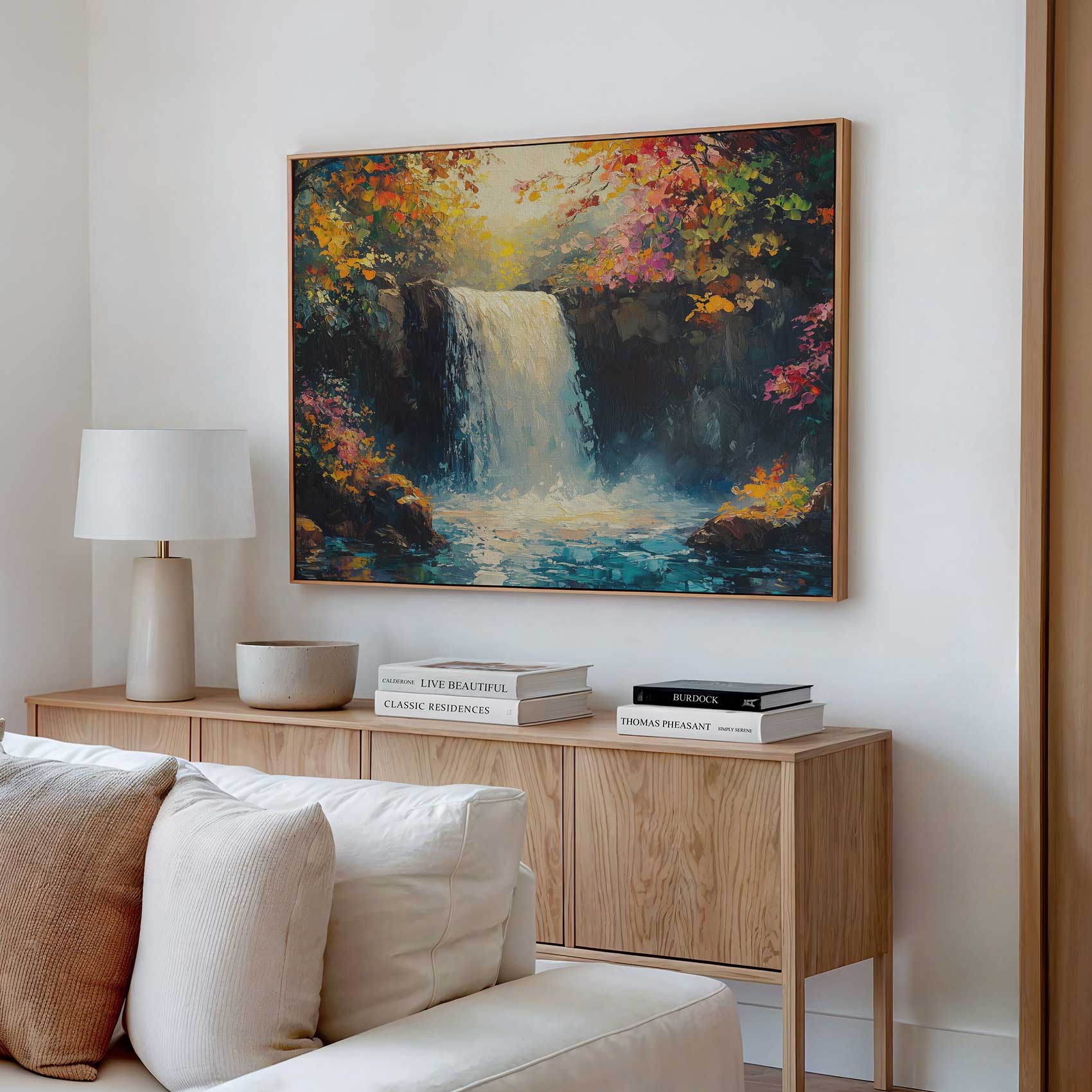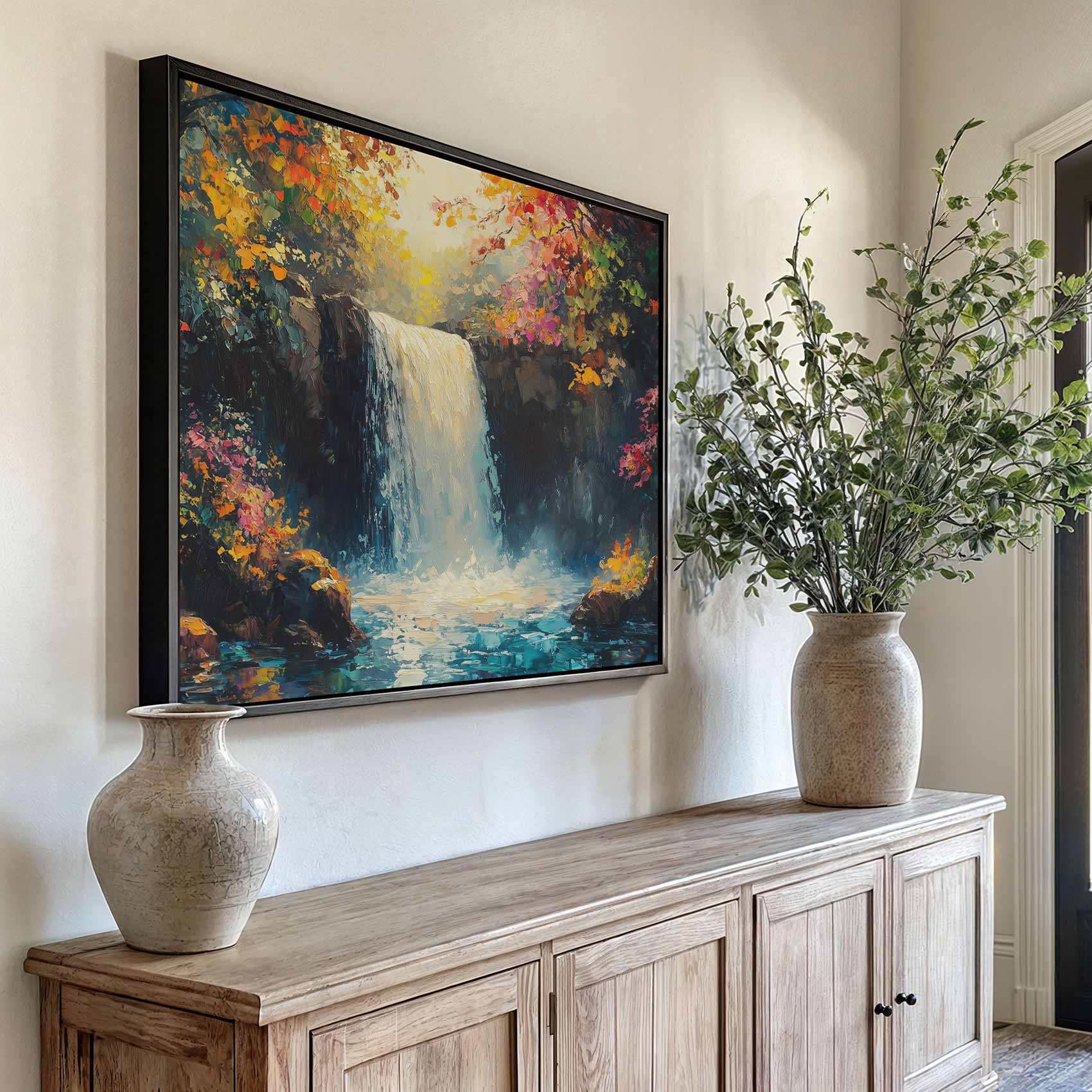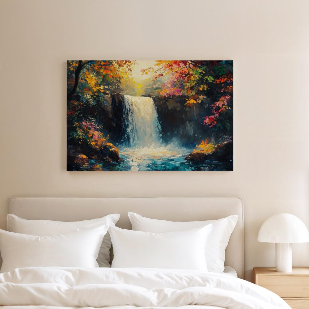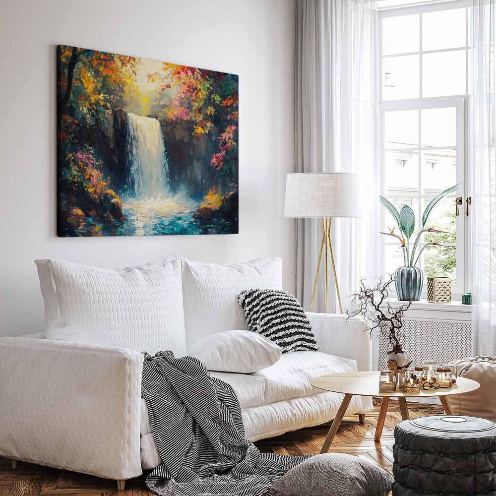 Levendig Watervalwoud Schilderij