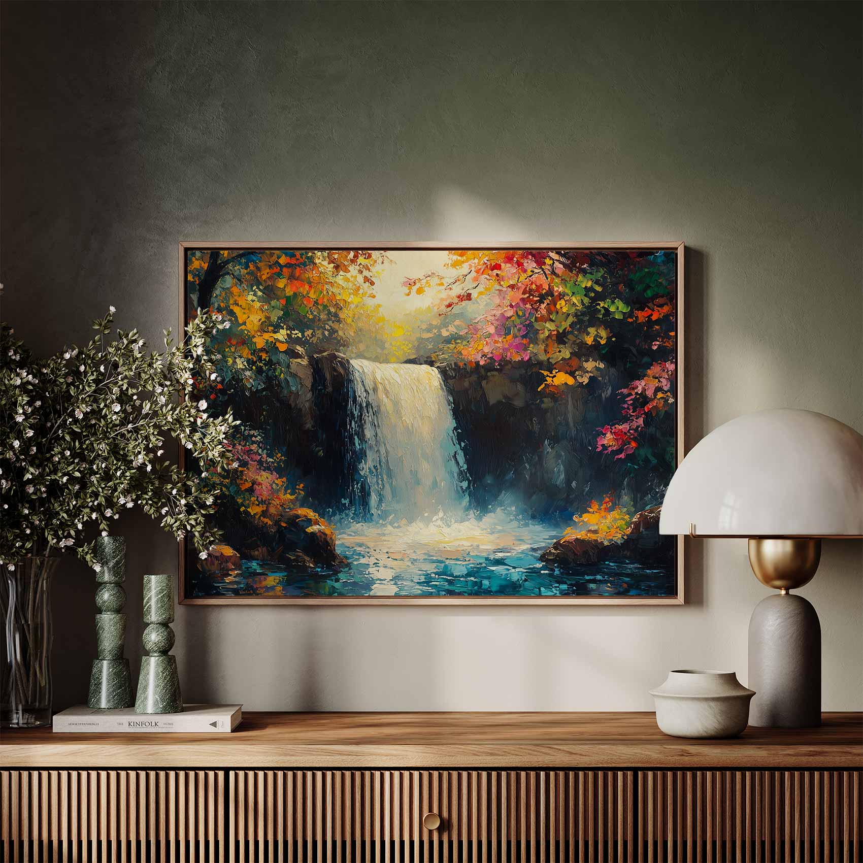 Terug naar collectie / Schilderijen / Bergen Schilderij / Levendig Watervalwoud Schilderij