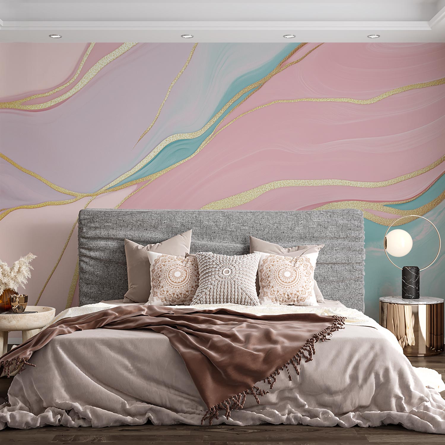 U ontvangt een staal van 15 × 20 cm op Variovlies behang, met dezelfde print en structuur als het uiteindelijke product. Zo kunt u thuis rustig beoordelen of het ontwerp goed past.