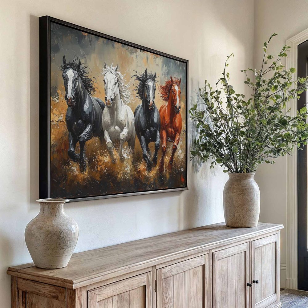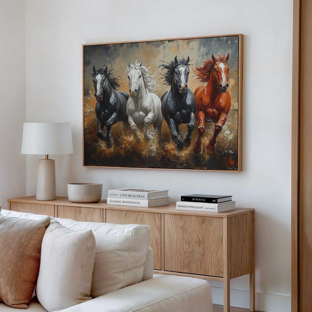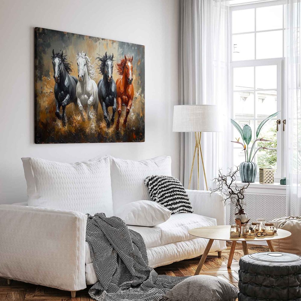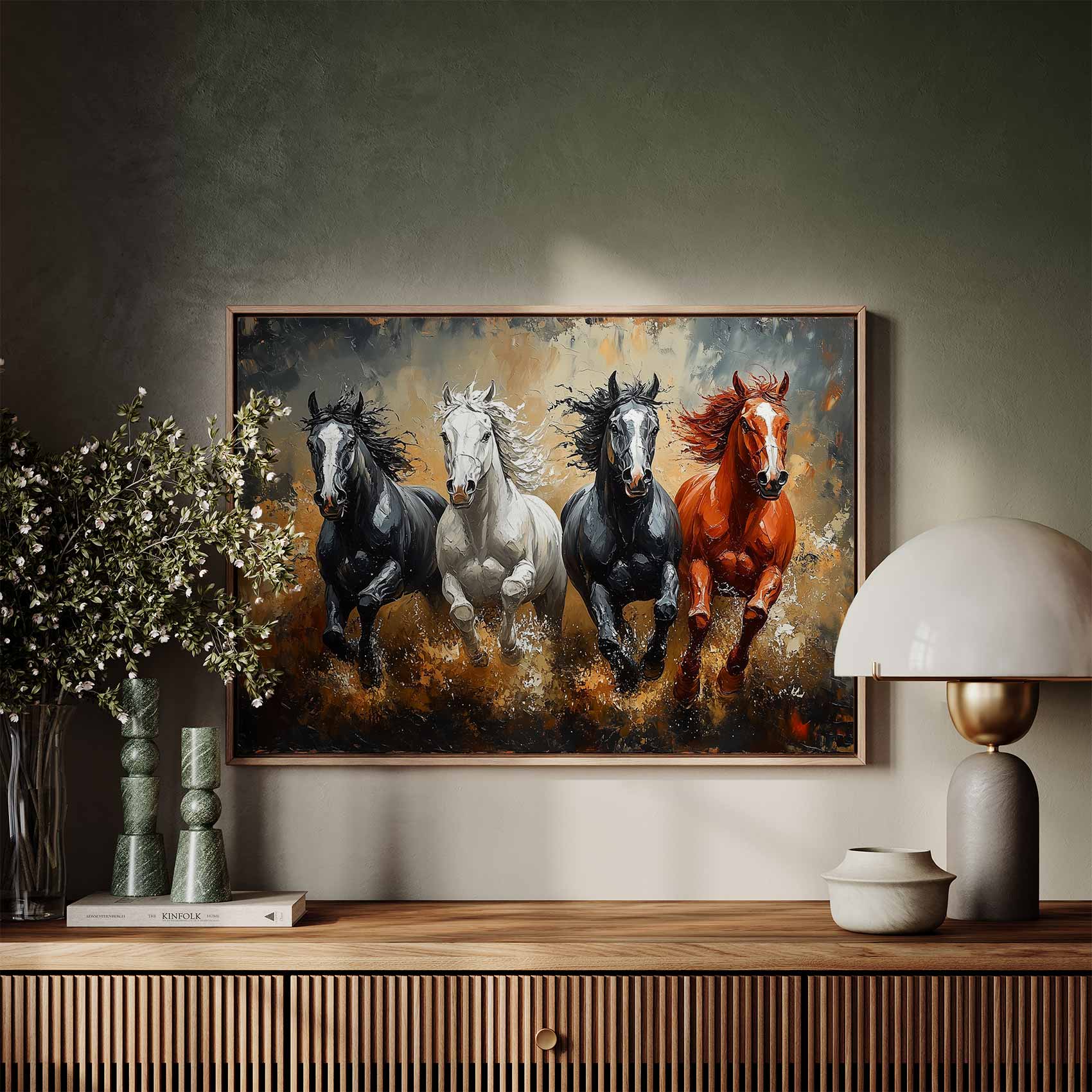 Terug naar collectie / Schilderijen / Dieren Schilderij / Levendige galopperende paarden