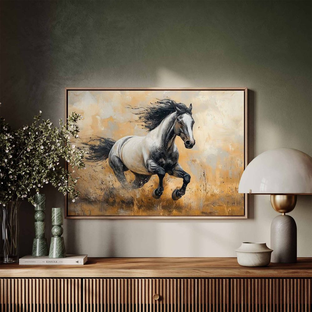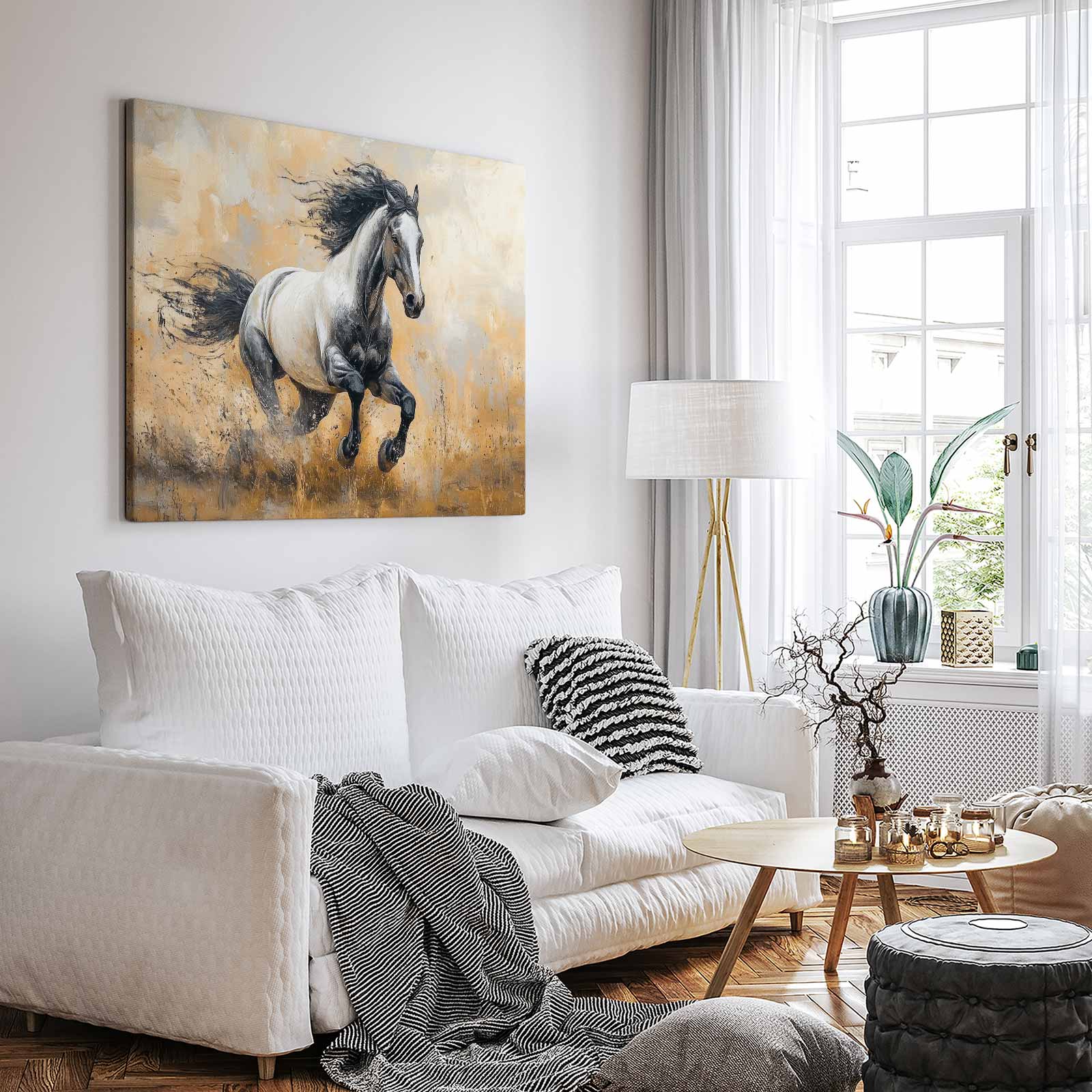 Terug naar collectie / Schilderijen / Dieren Schilderij / Levendige galopperende paardimpressie