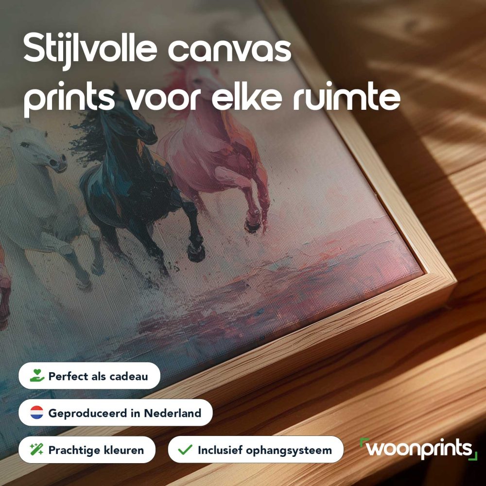 Terug naar collectie / Schilderijen / Abstract Schilderij / Levendige galopperende waterpaarden