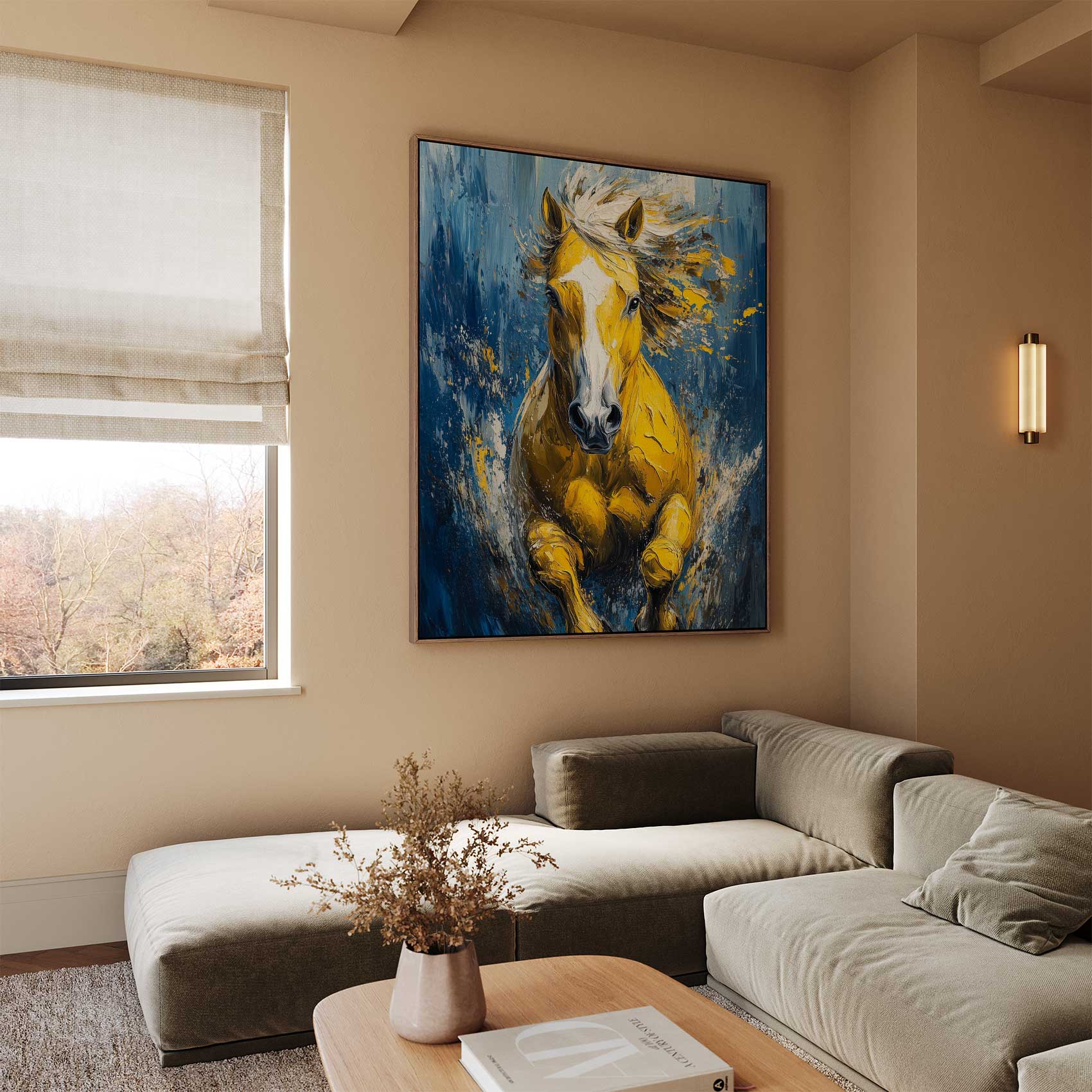 Levendige gele renpaard impressie