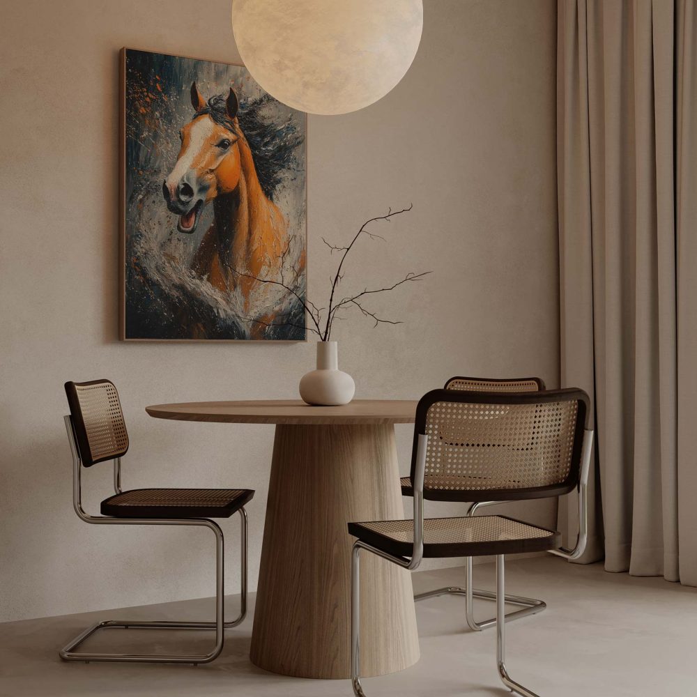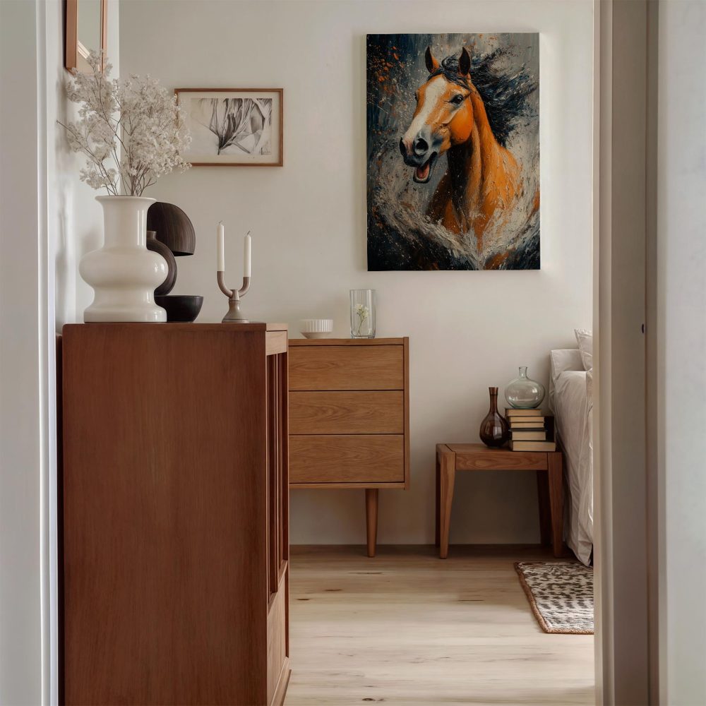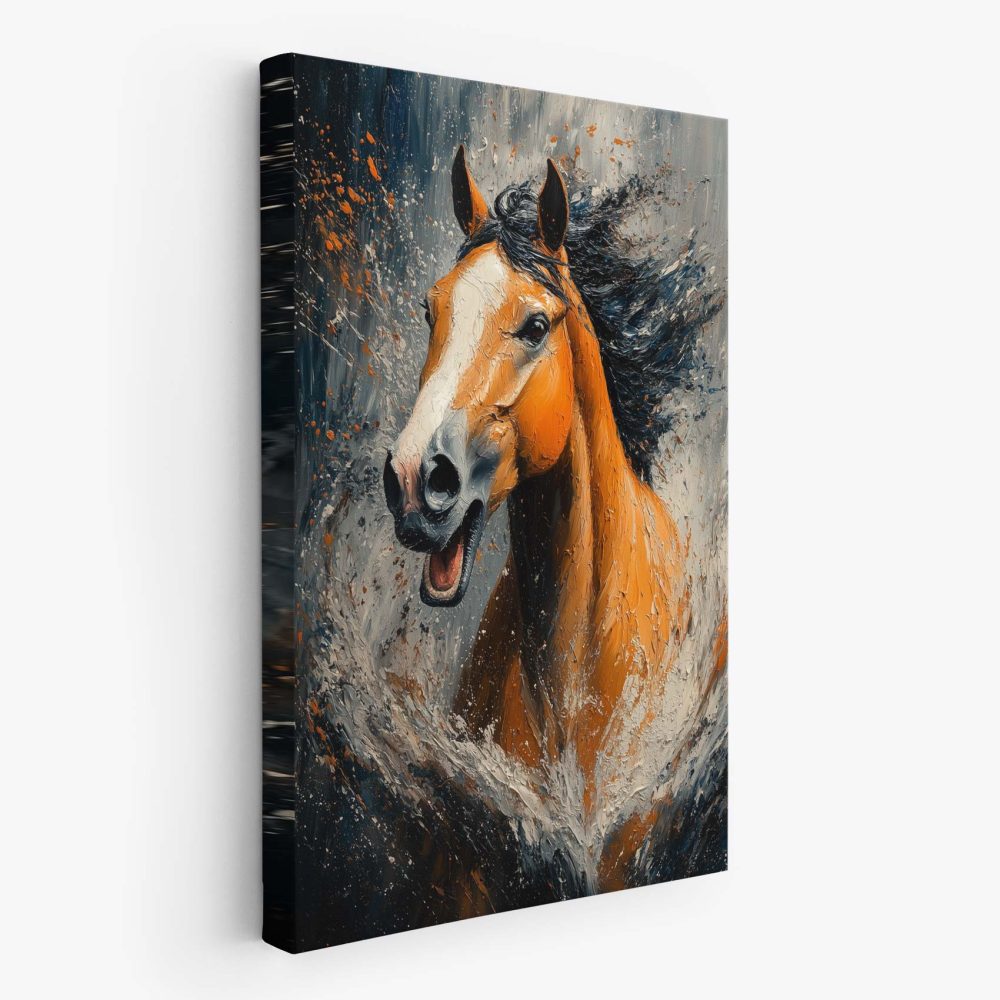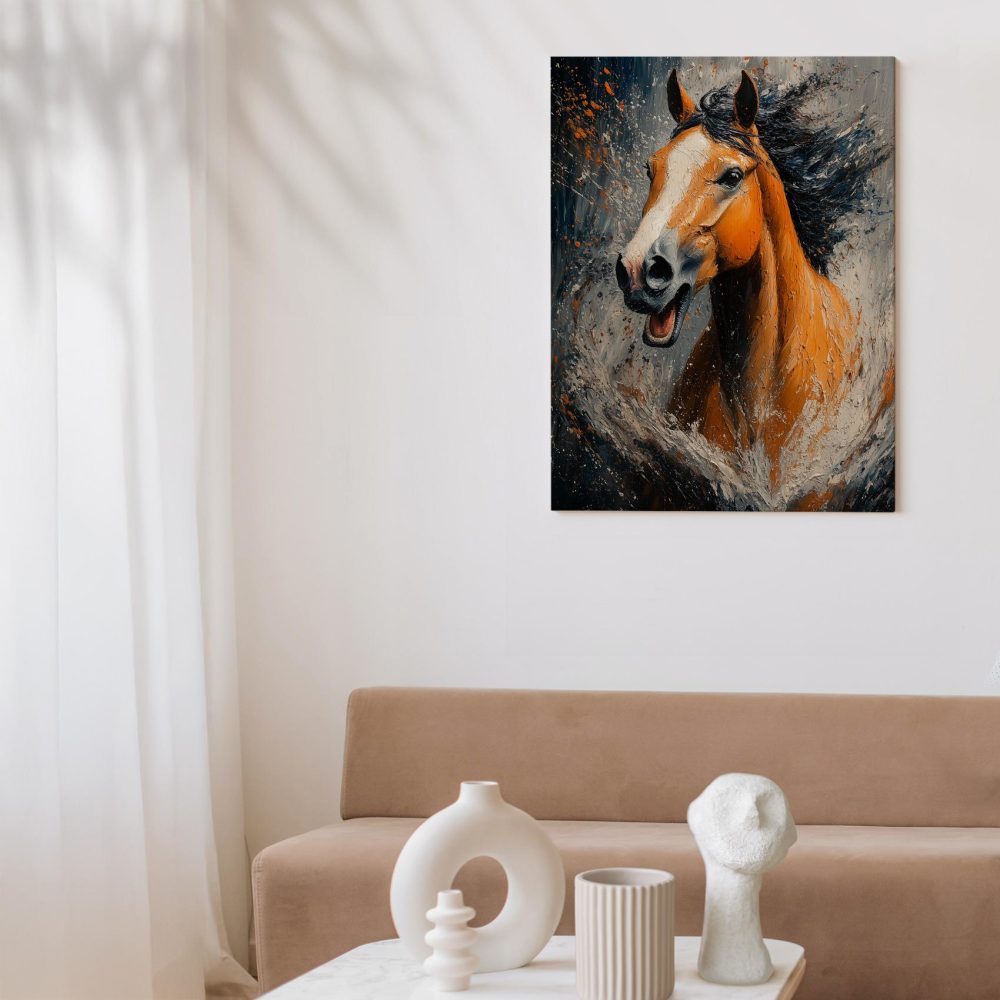 Terug naar collectie / Schilderijen / Abstract Schilderij / Levendige oranje renpaard