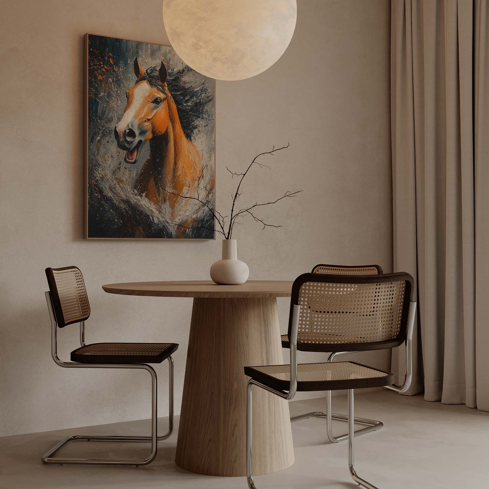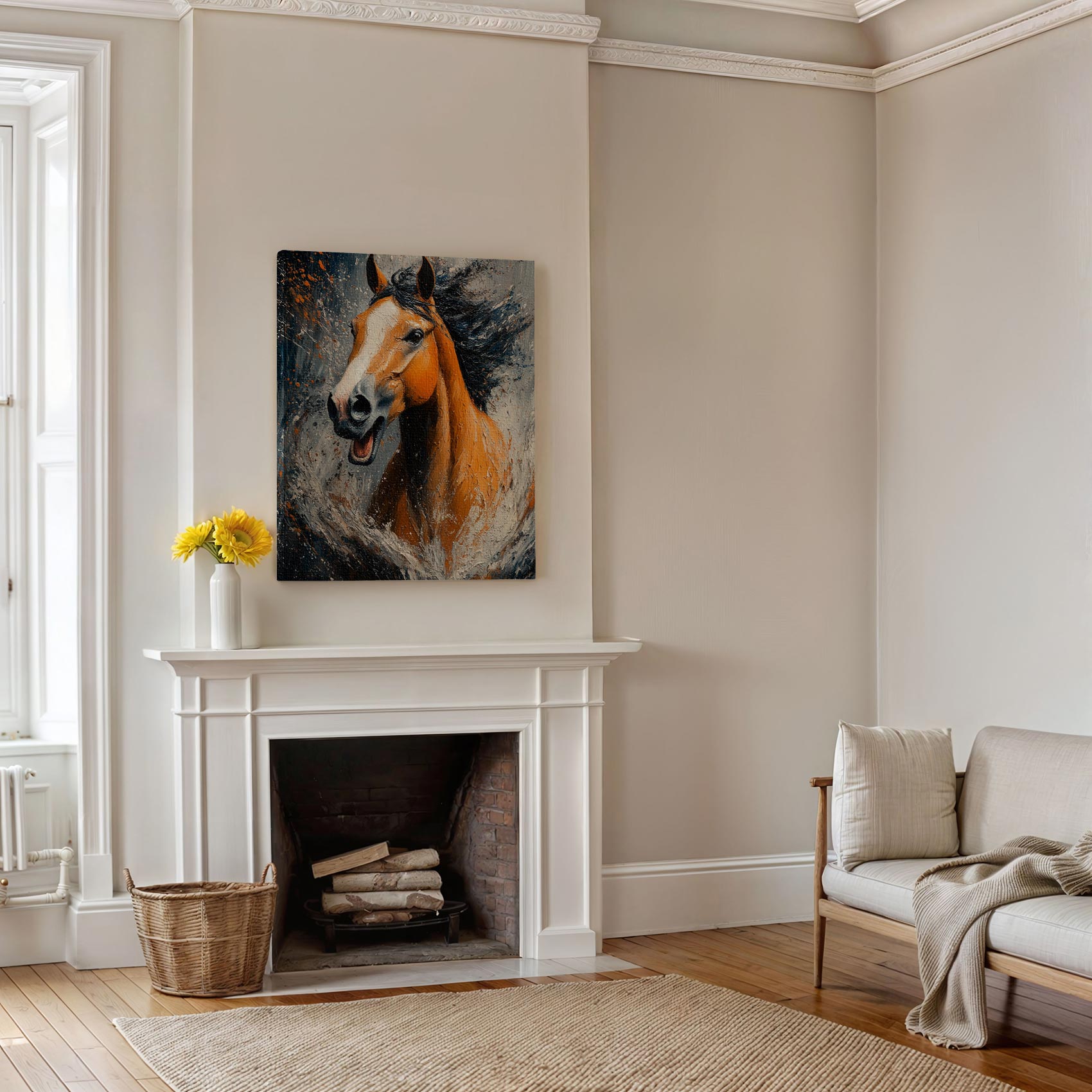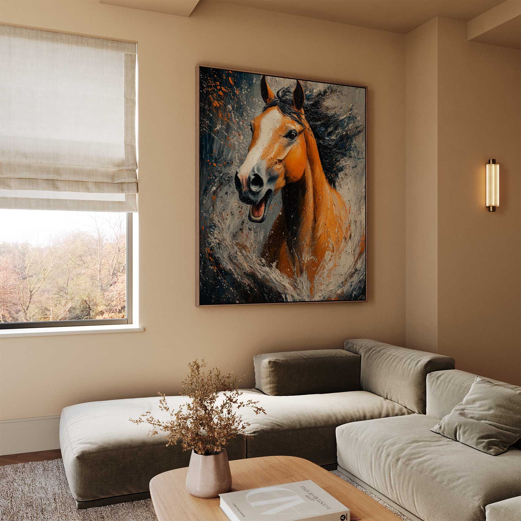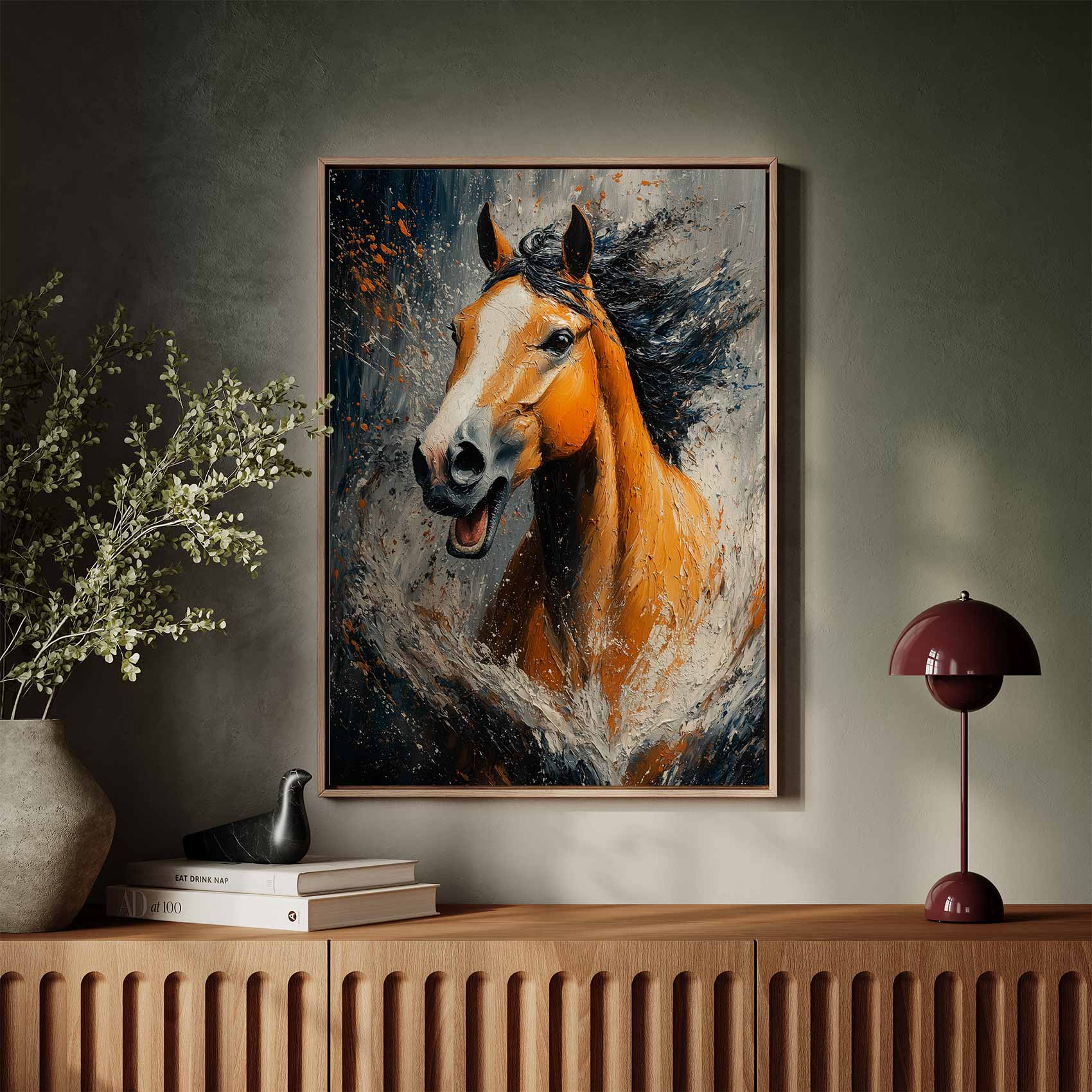 Terug naar collectie / Schilderijen / Abstract Schilderij / Levendige oranje renpaard