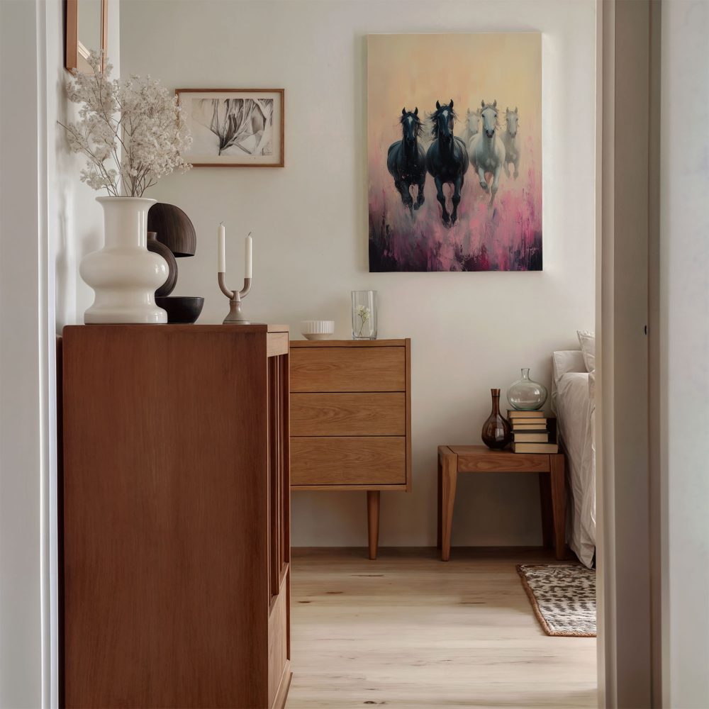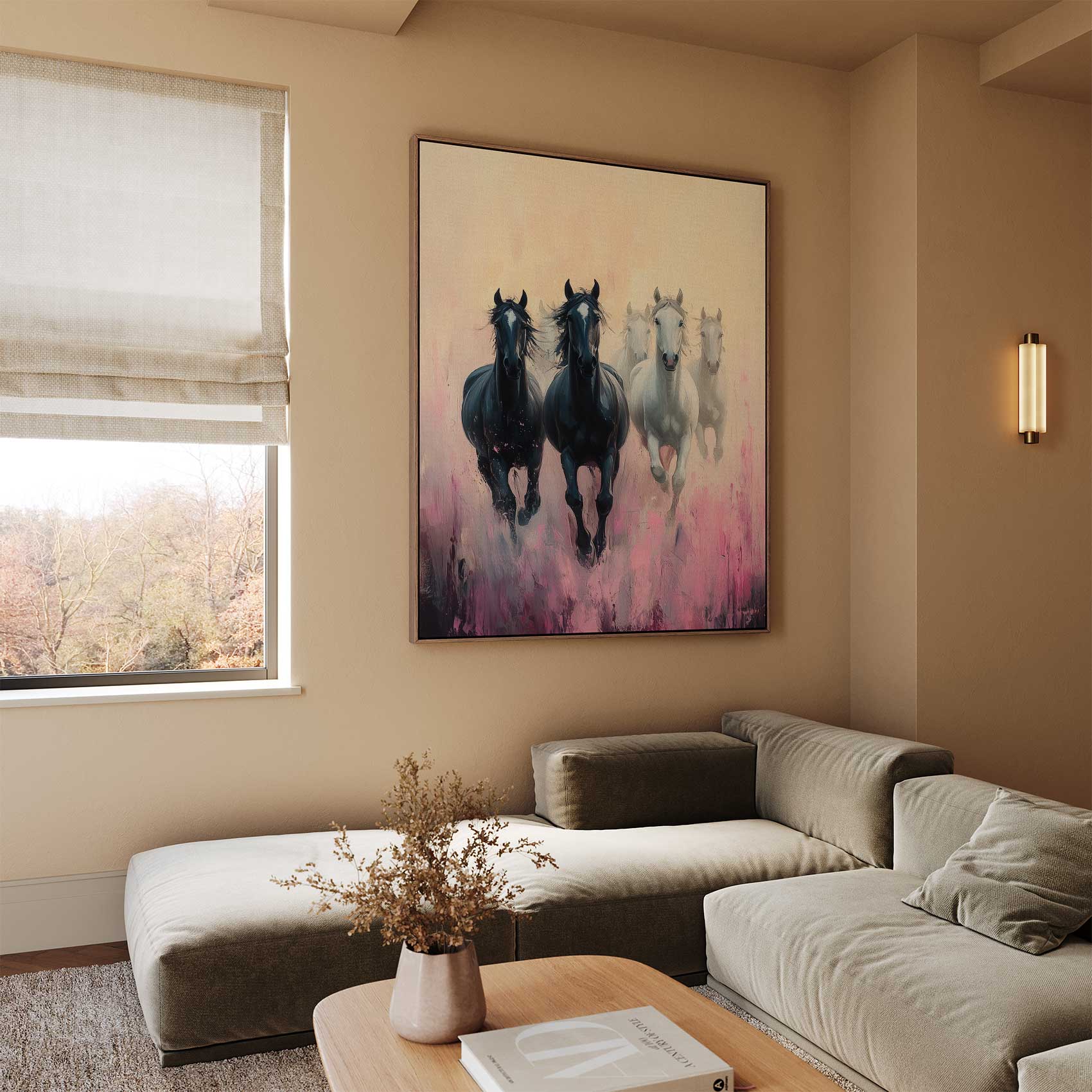 Terug naar collectie / Schilderijen / Abstract Schilderij / Levendige paarden in galop