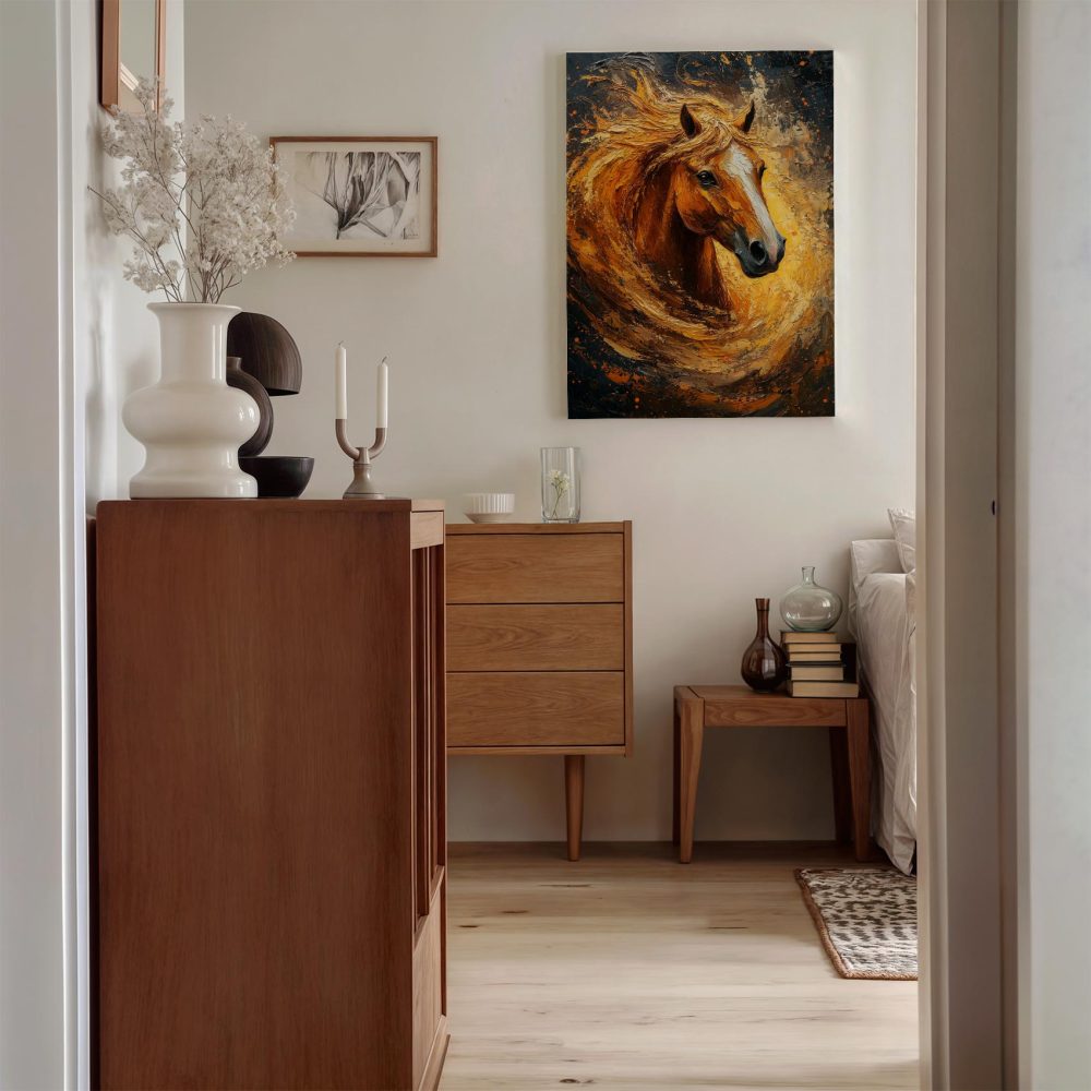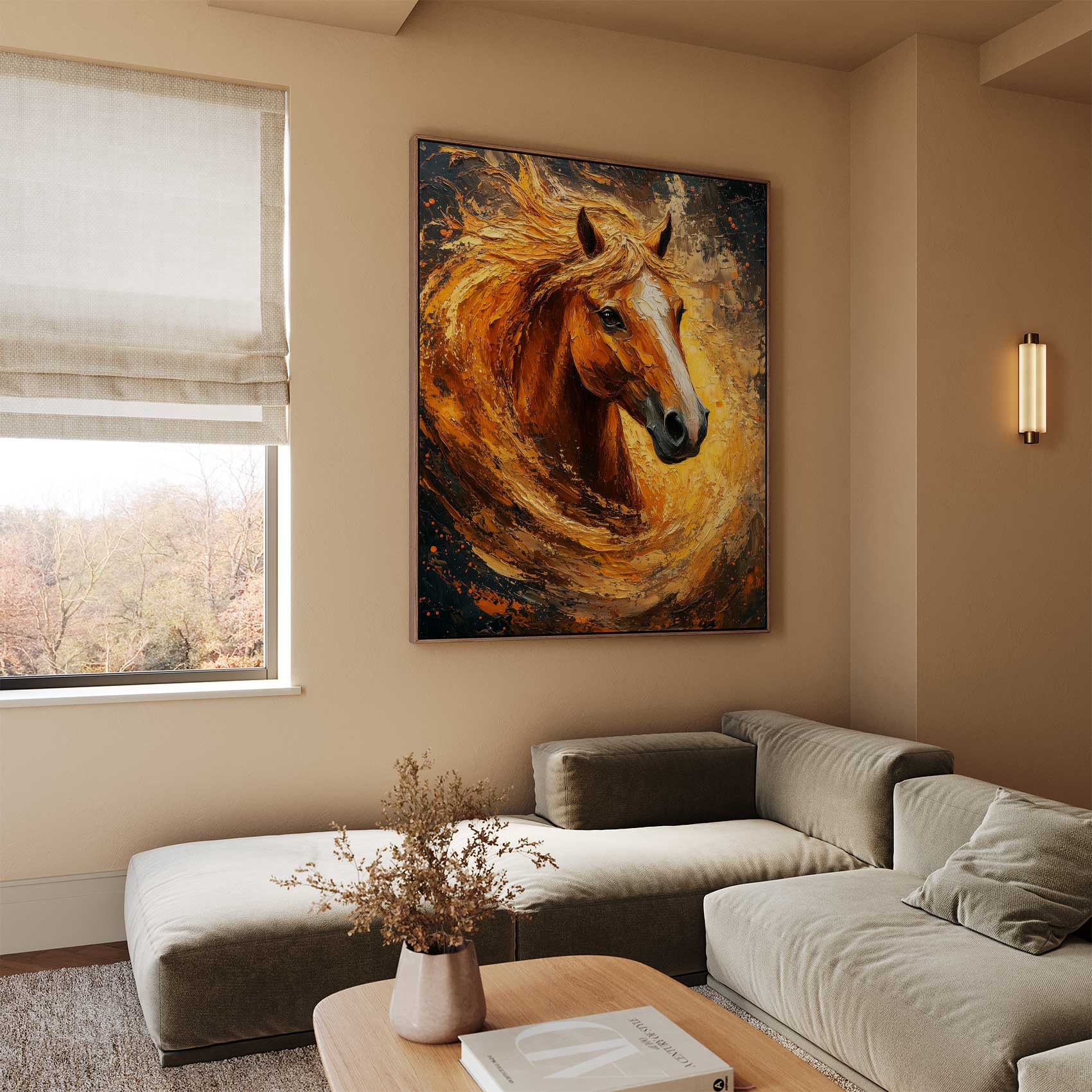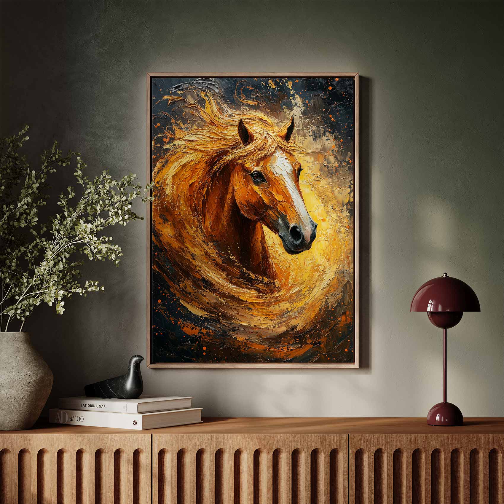 Terug naar collectie / Schilderijen / Abstract Schilderij / Levendige paardenvlammenschilderij