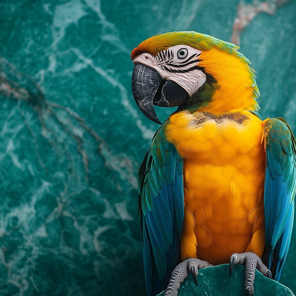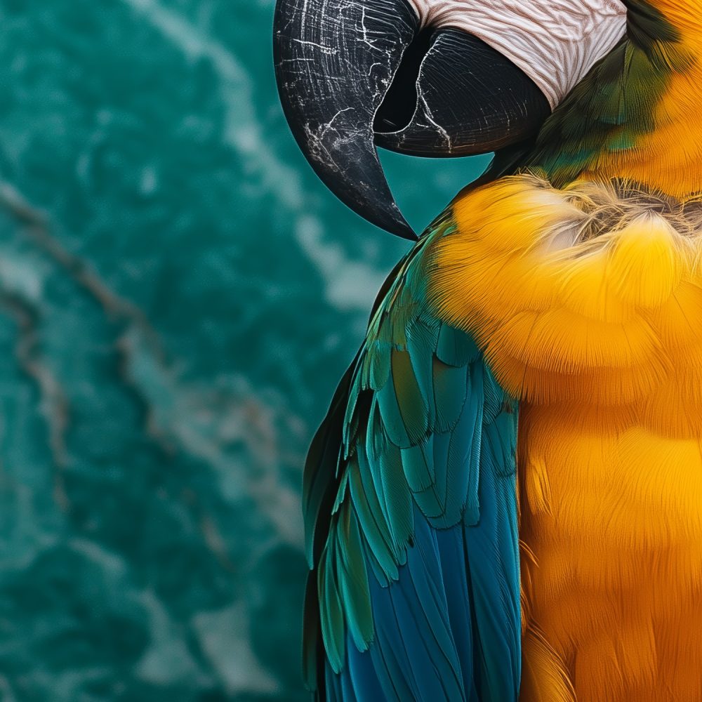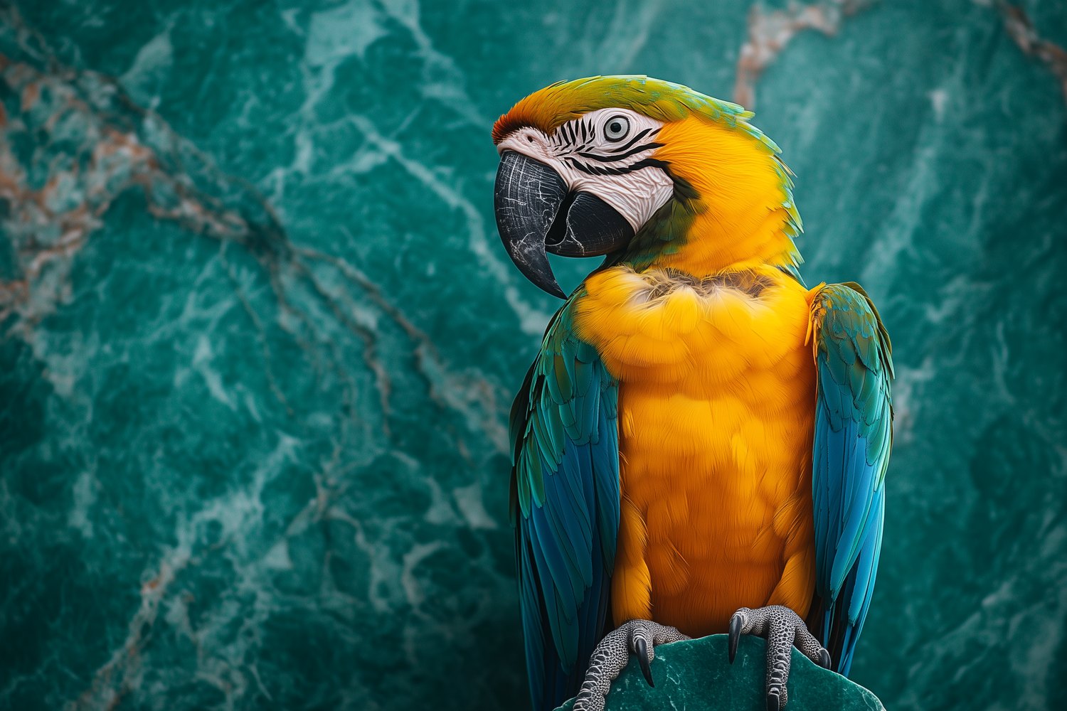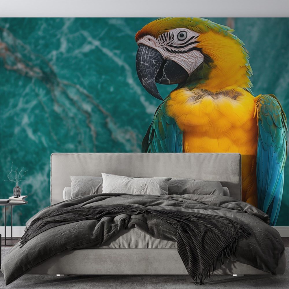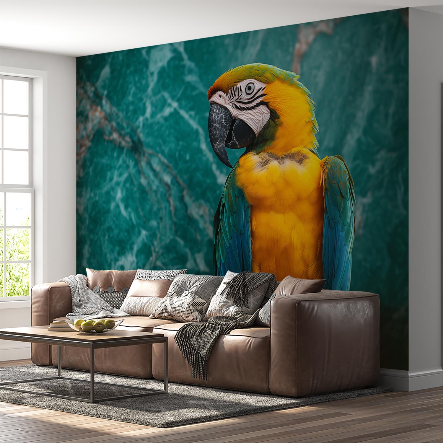 Terug naar collectie / Behang / Levendige papegaai op blad behang