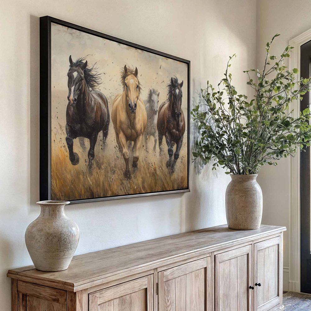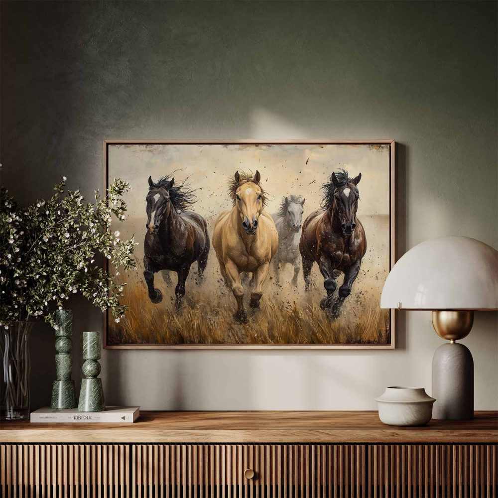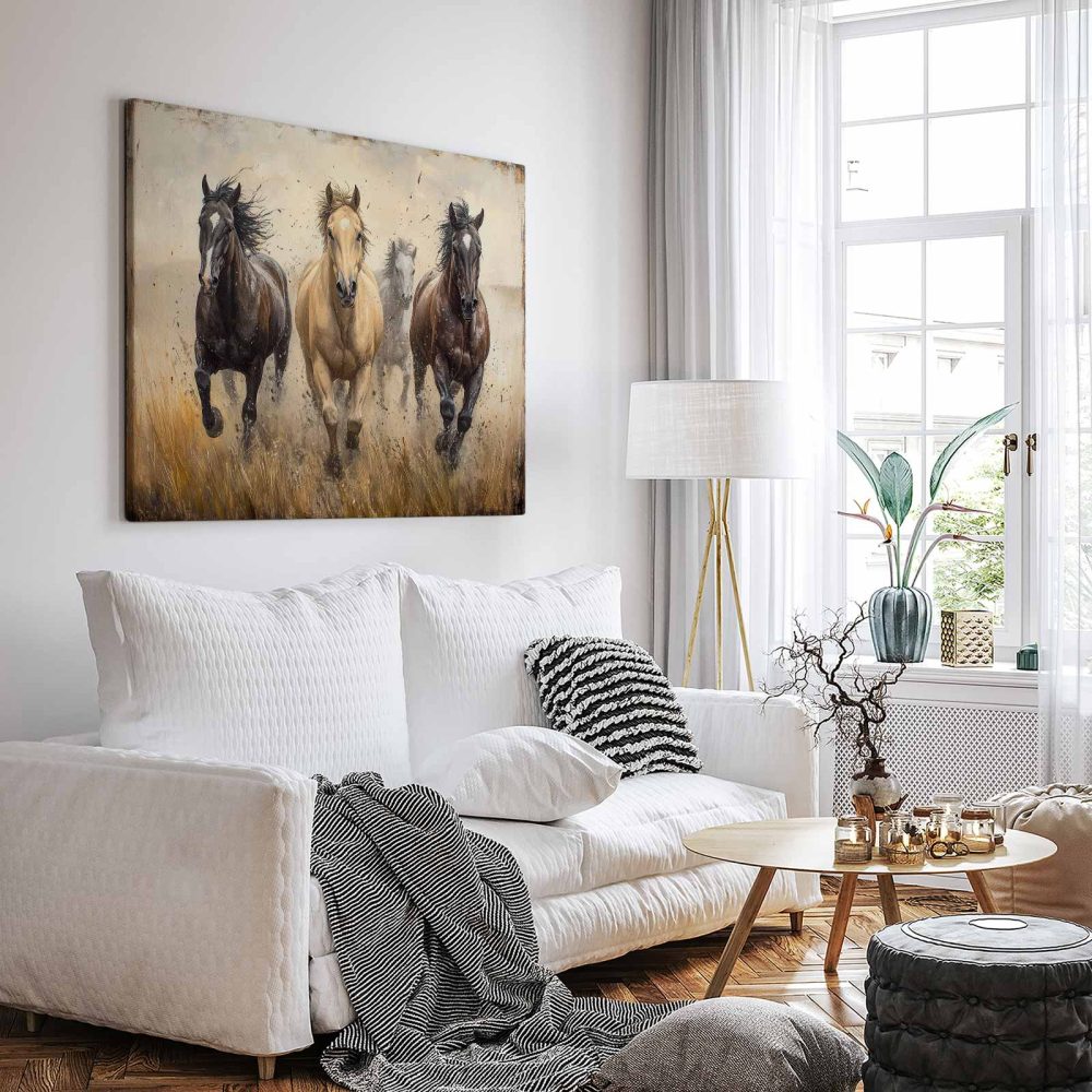 Terug naar collectie / Schilderijen / Dieren Schilderij / Levendige rennende paarden