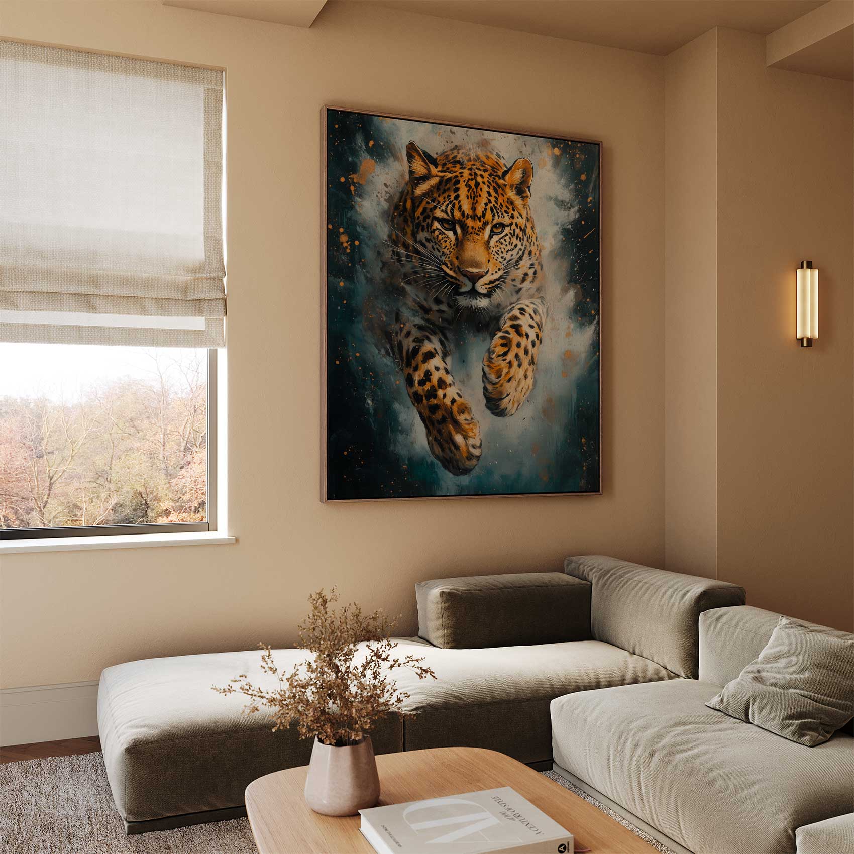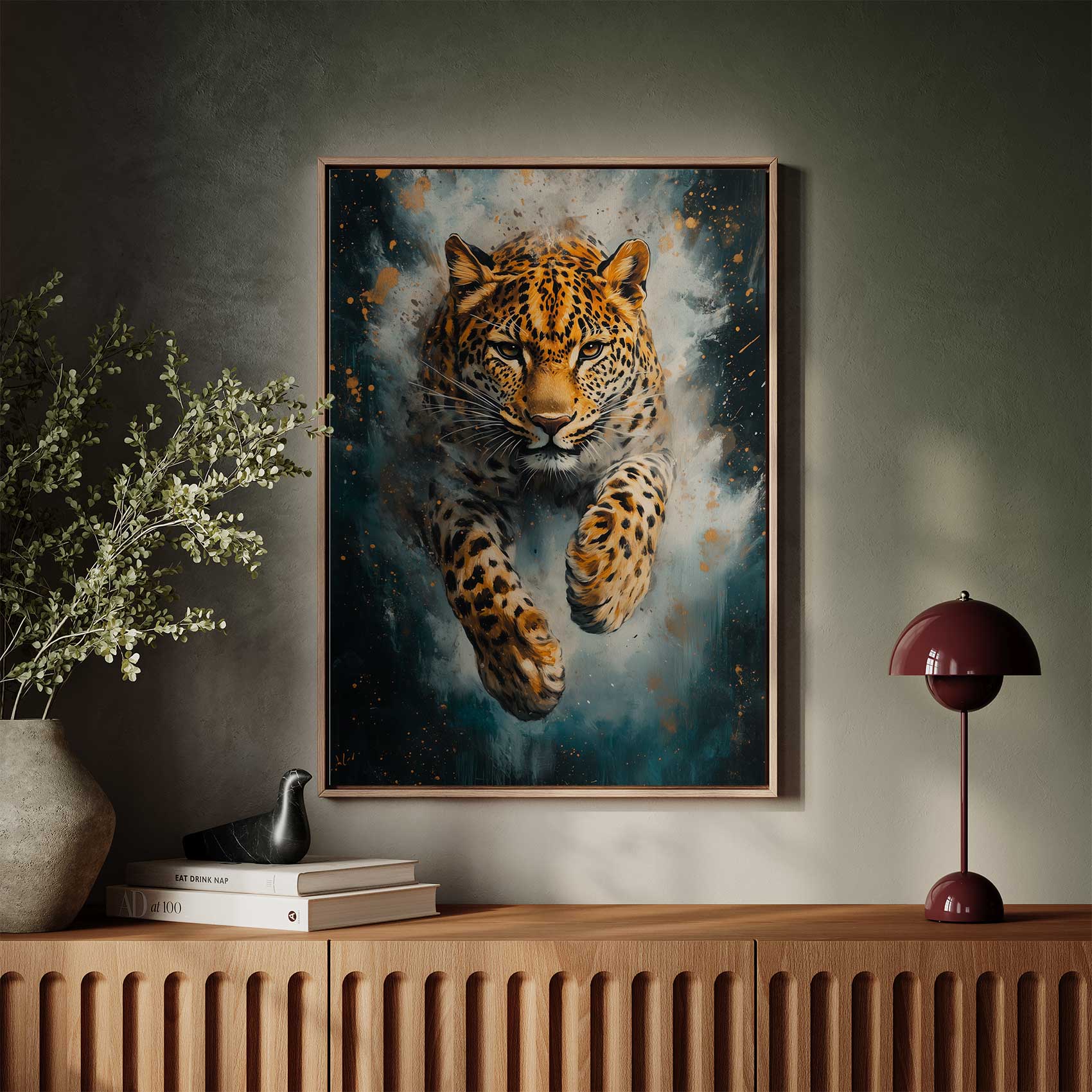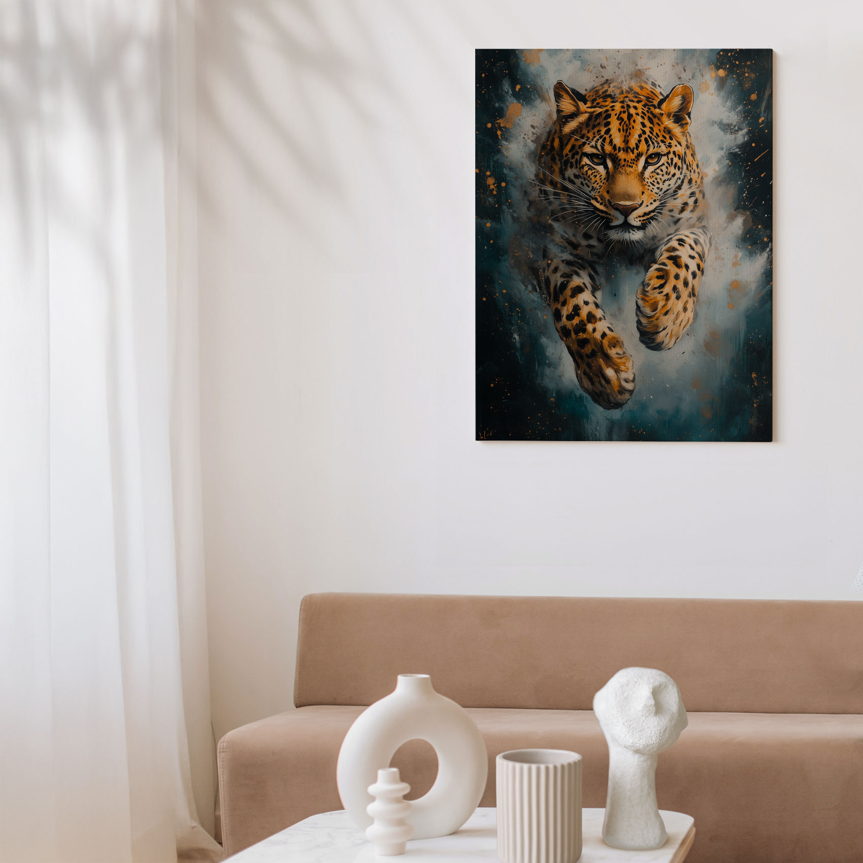Terug naar collectie / Schilderijen / Dieren Schilderij / Levendige springende luipaard