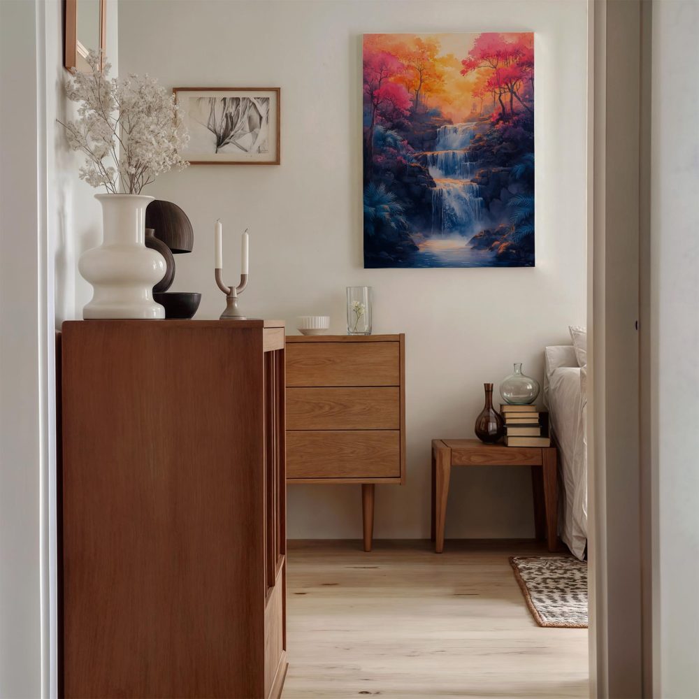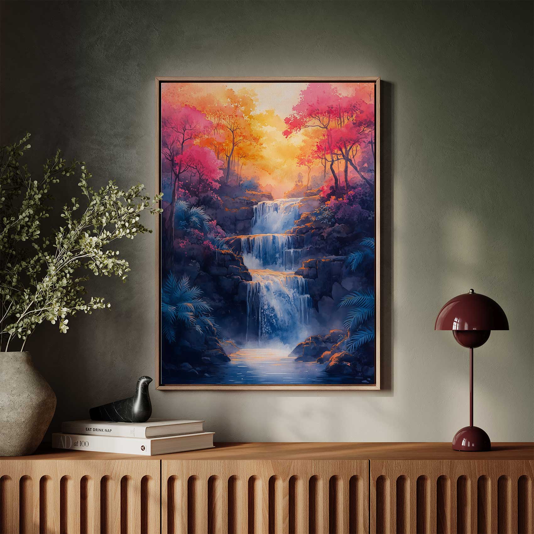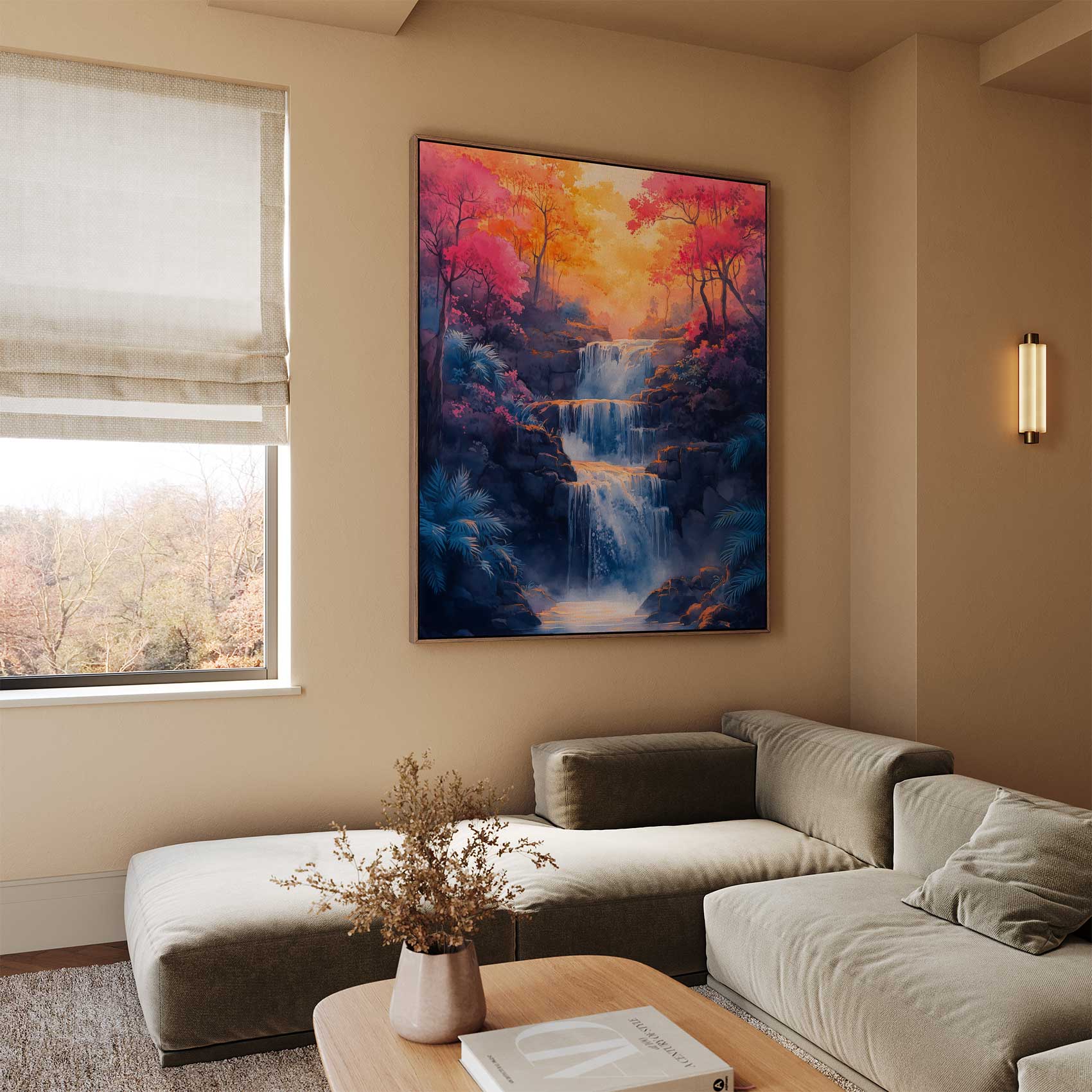 Terug naar collectie / Schilderijen / Bergen Schilderij / Levendige waterval schildering