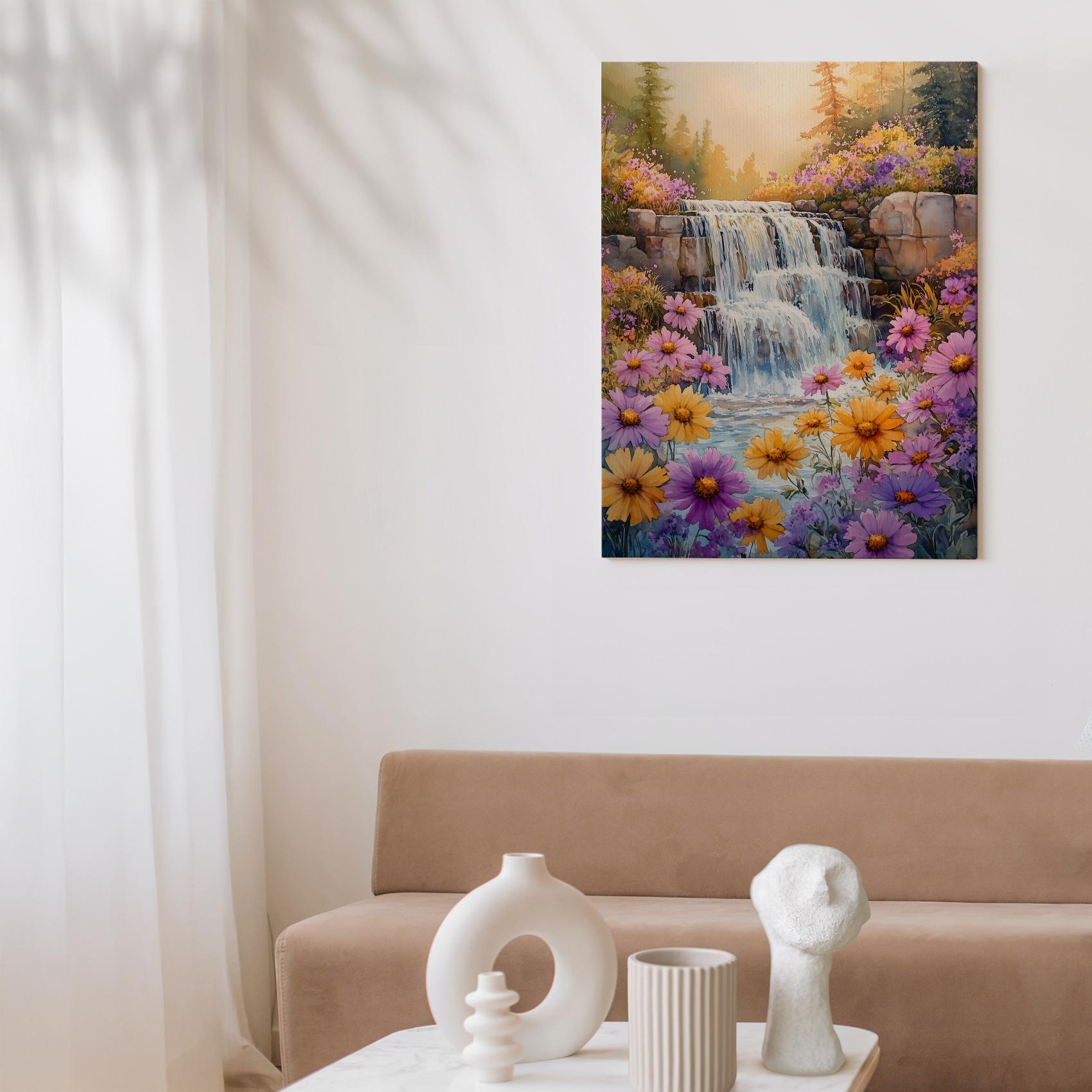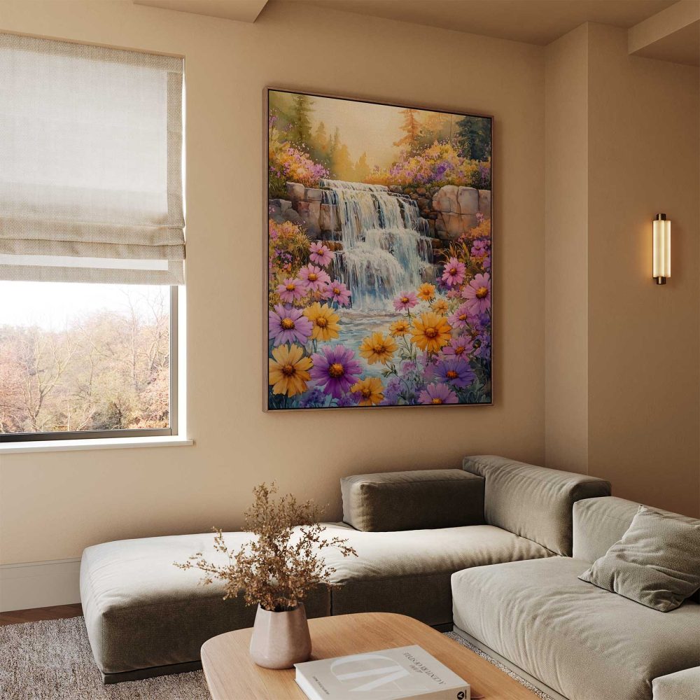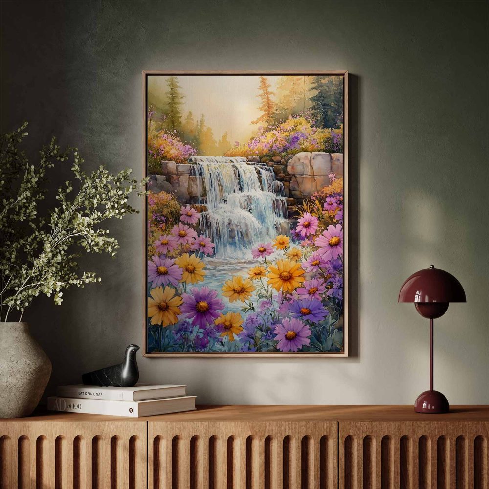 Terug naar collectie / Schilderijen / Bloemen Schilderij / Levendige Waterval Waterverfschilderij