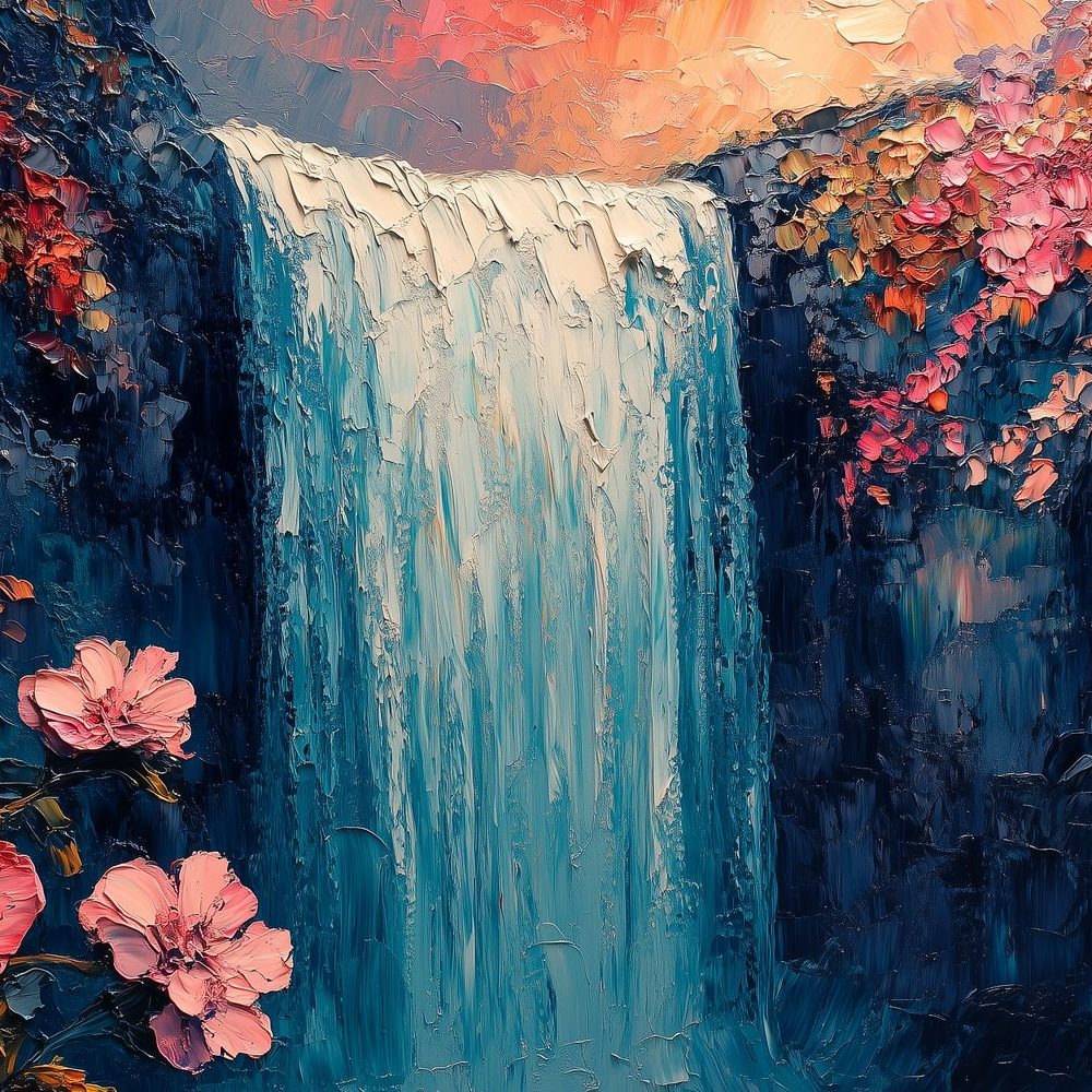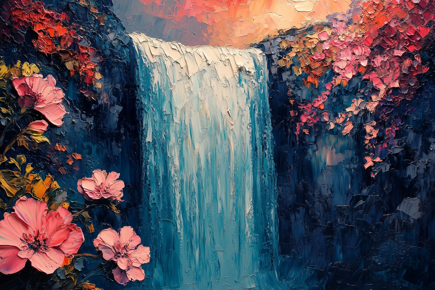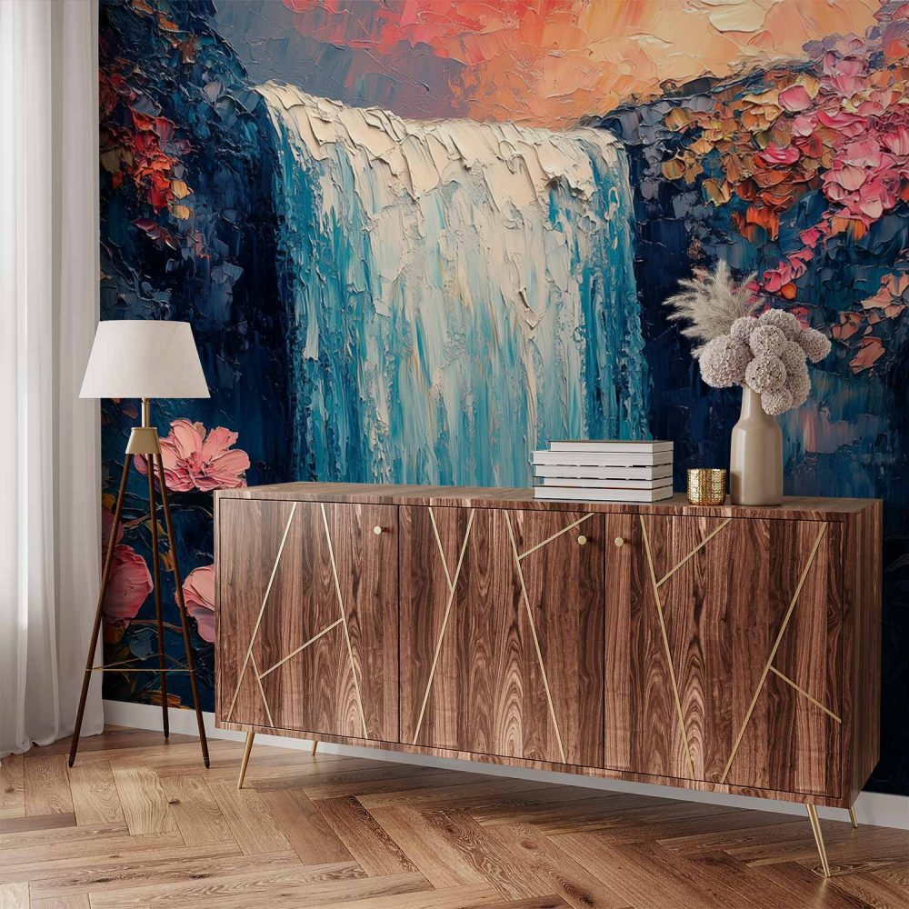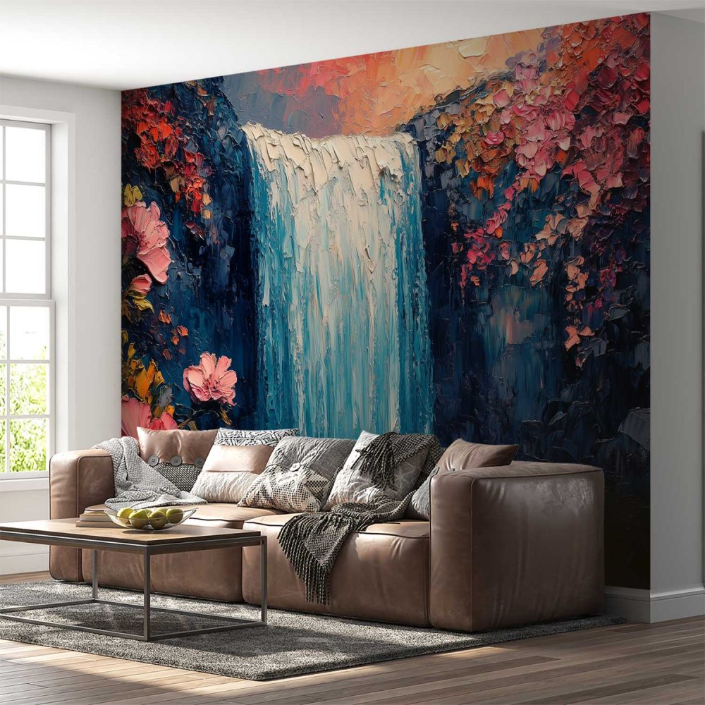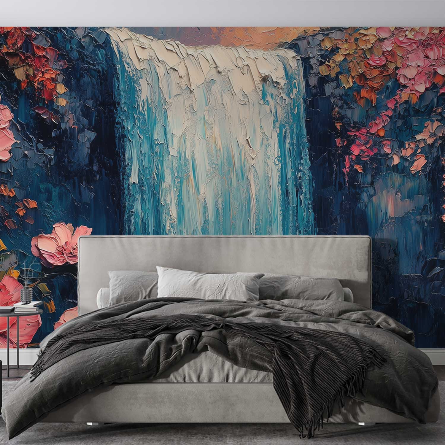Terug naar collectie / Behang / Abstract behang / Levendige watervalbloemenschildering behang