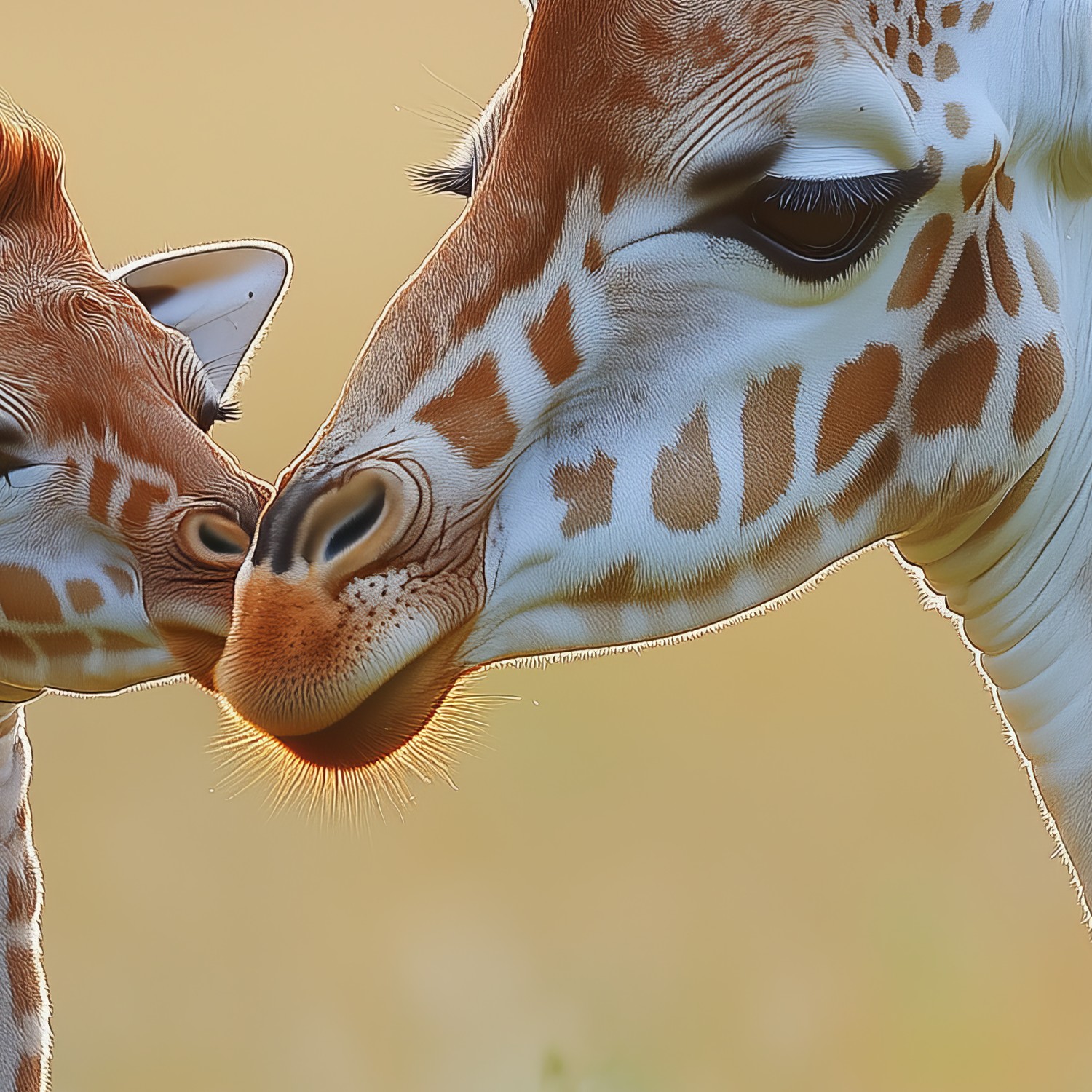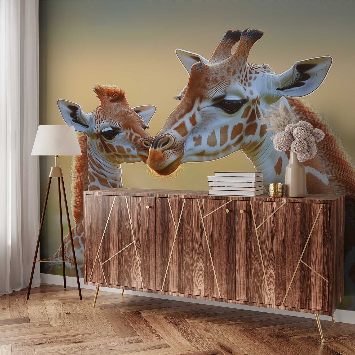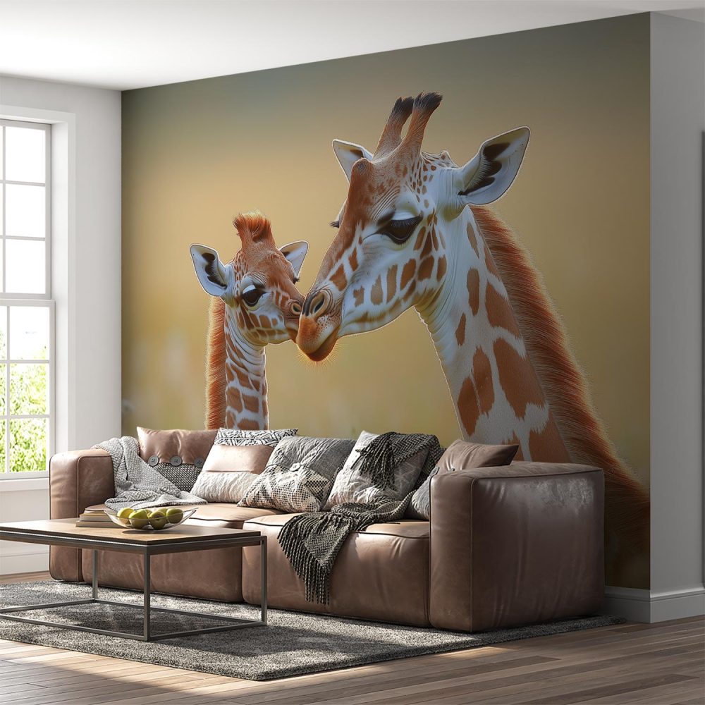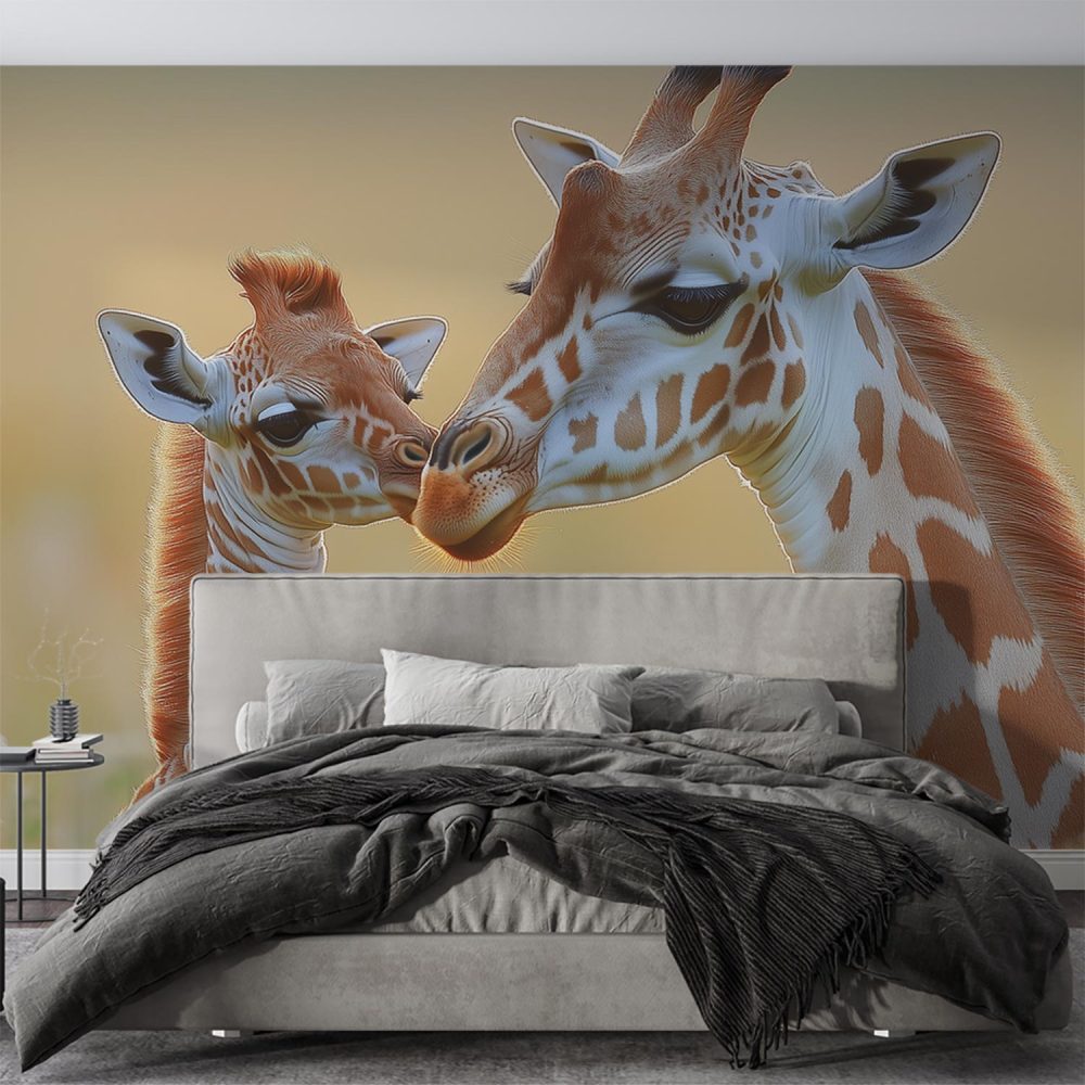 Terug naar collectie / Behang / Liefdevolle giraffenmoeder en baby behang