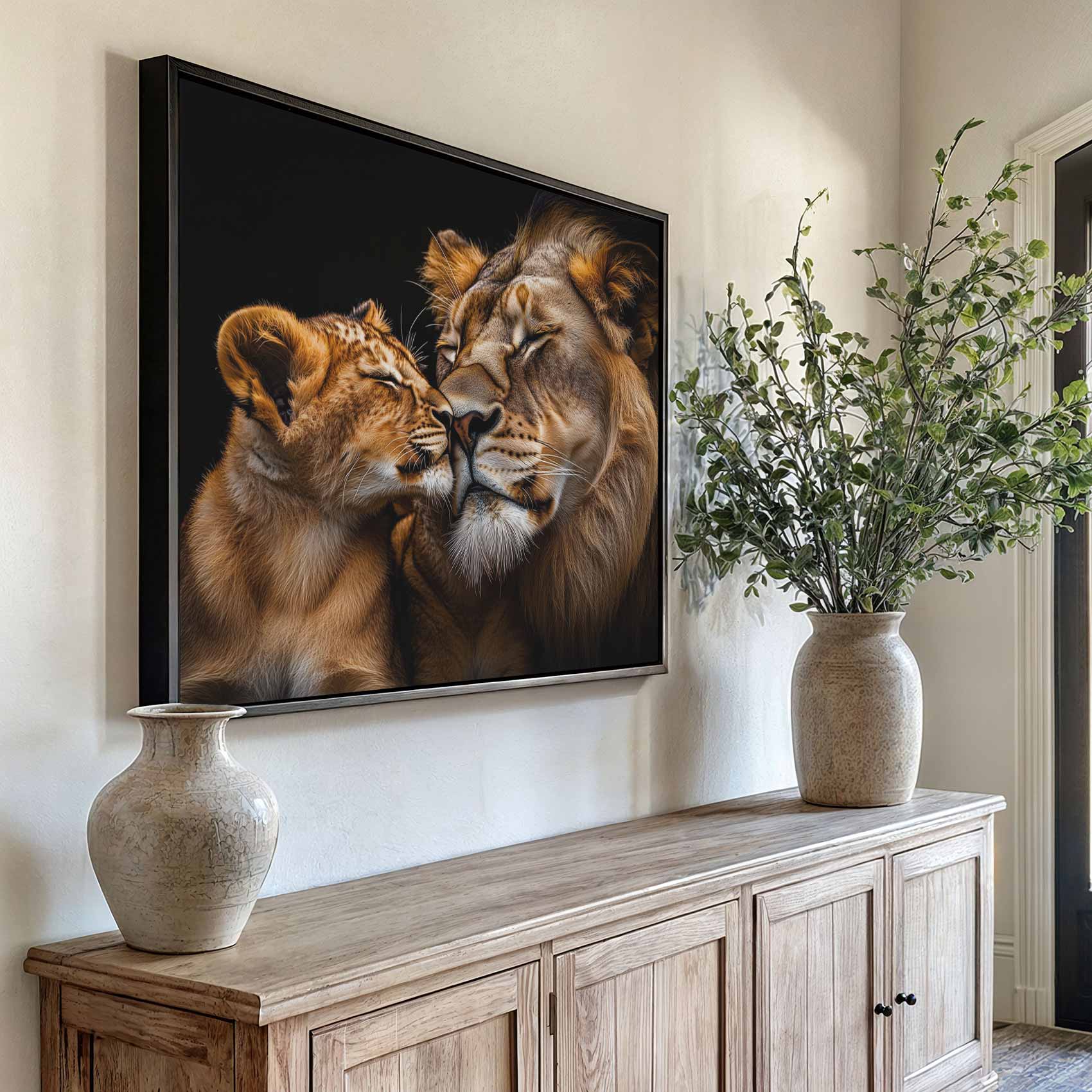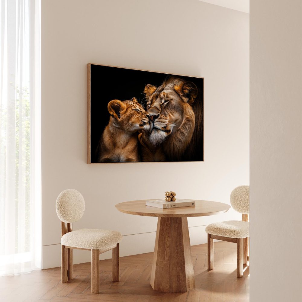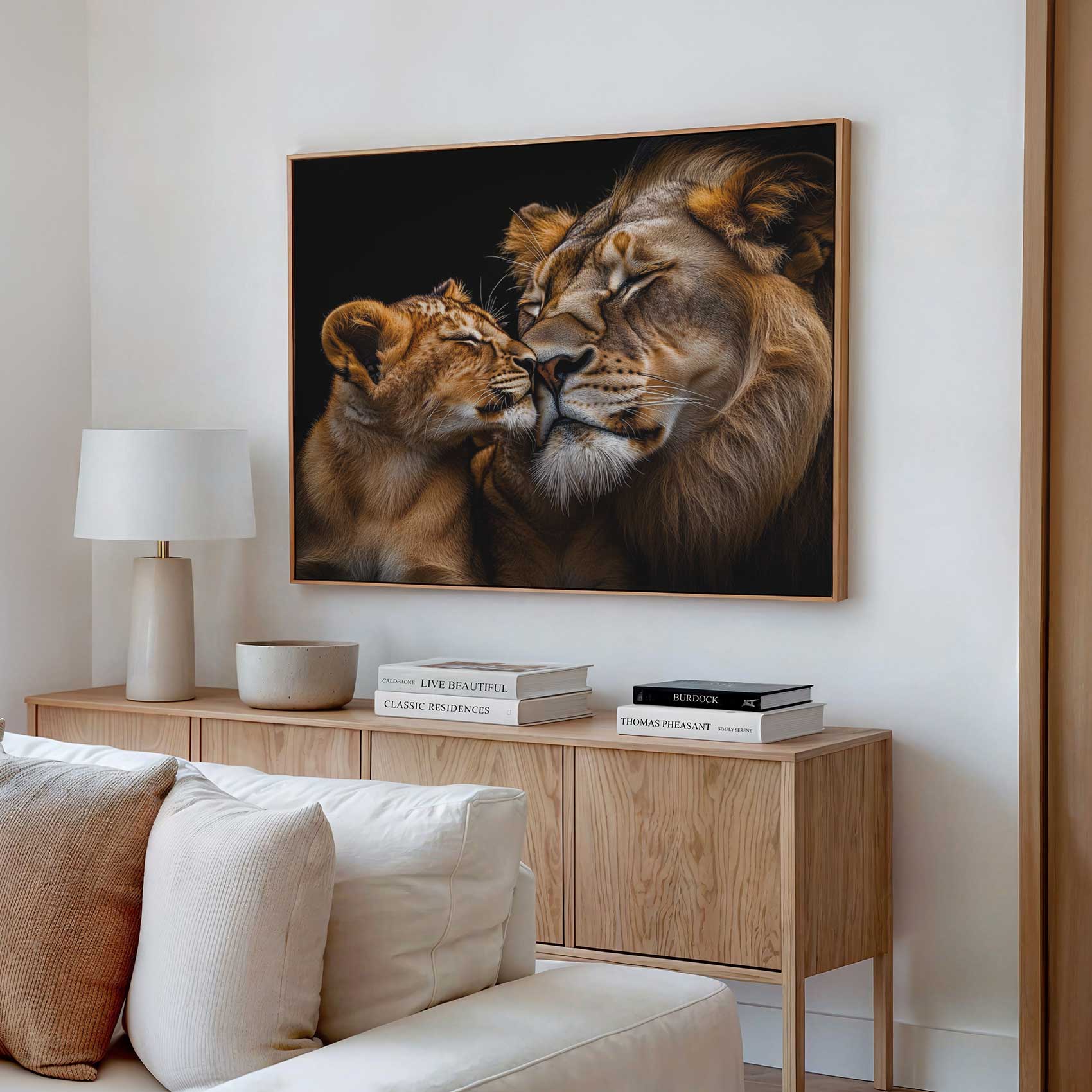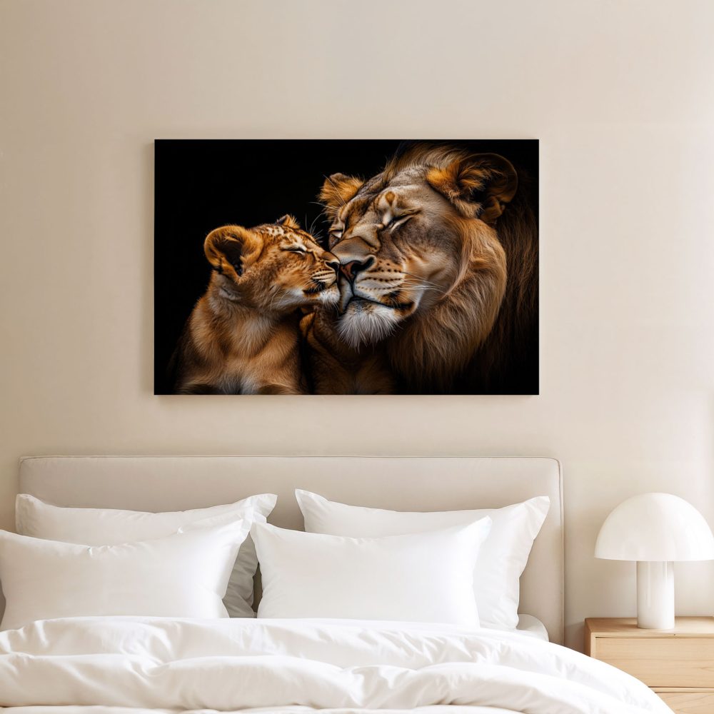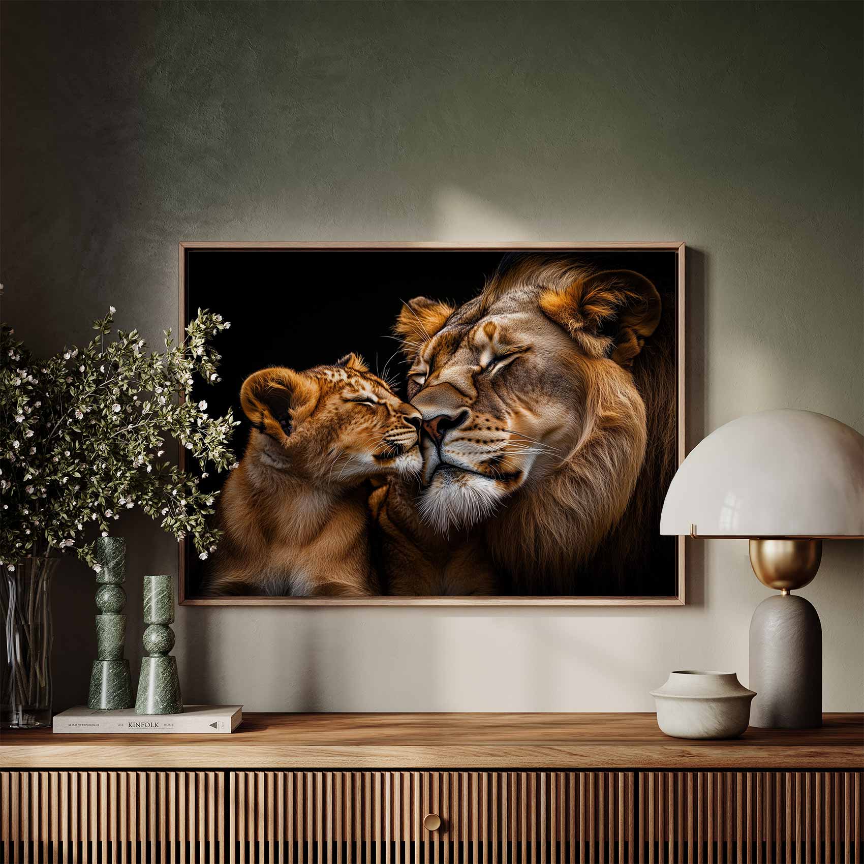 Terug naar collectie / Schilderijen / Dieren Schilderij / Liefdevolle leeuwenmoeder en welp