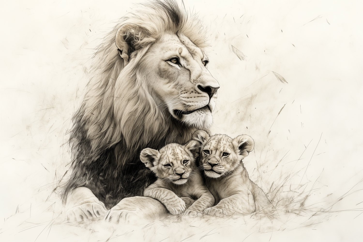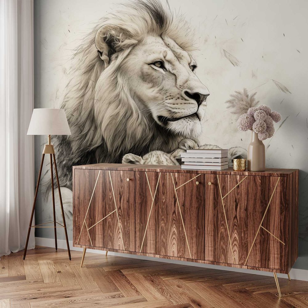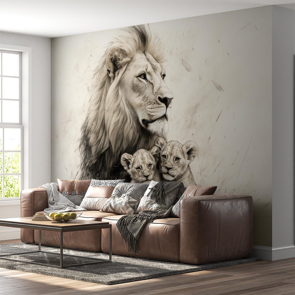Terug naar collectie / Behang / Liefdevolle leeuwenmoeder en welpen behang