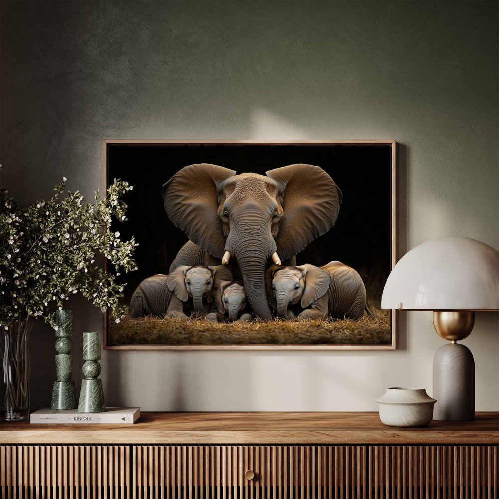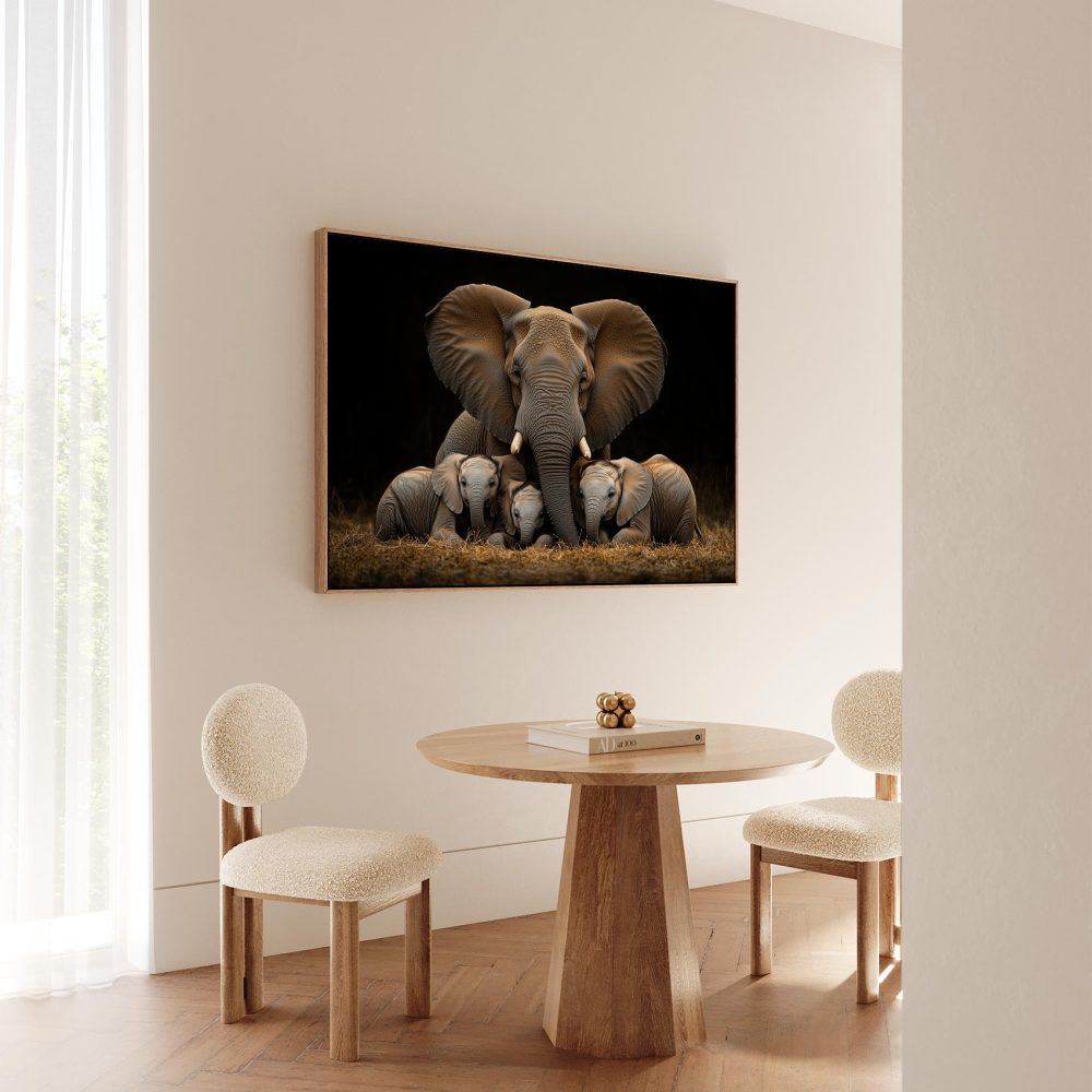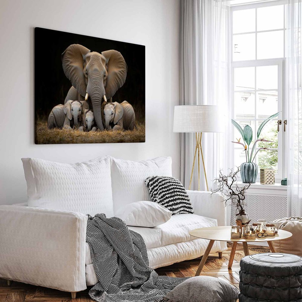 Terug naar collectie / Schilderijen / Dieren Schilderij / Liefdevolle olifantenfamilie
