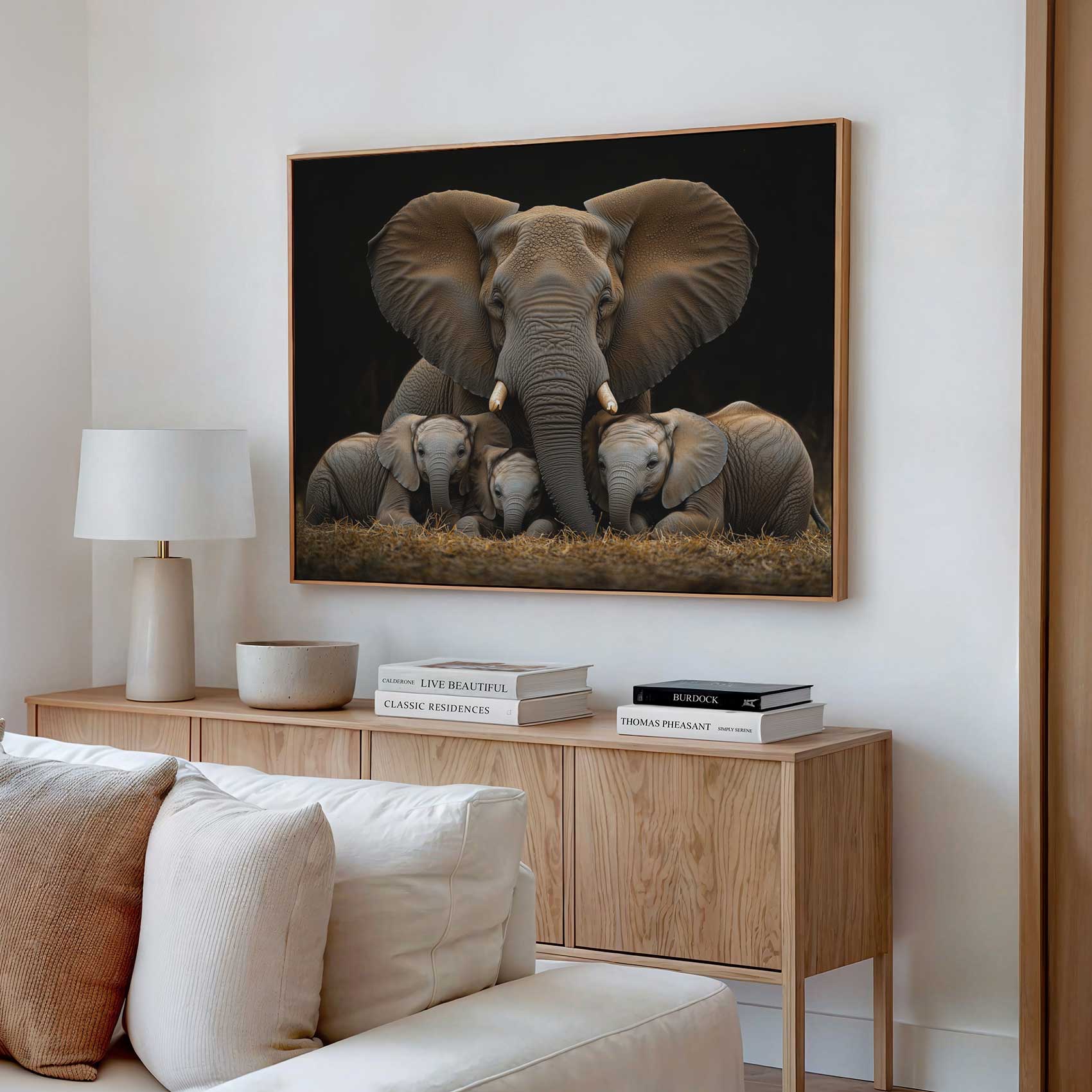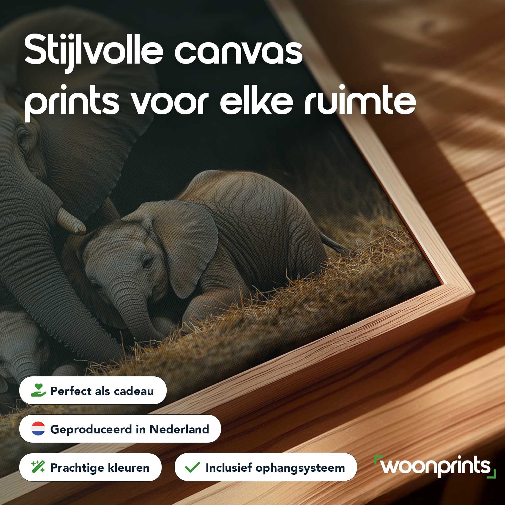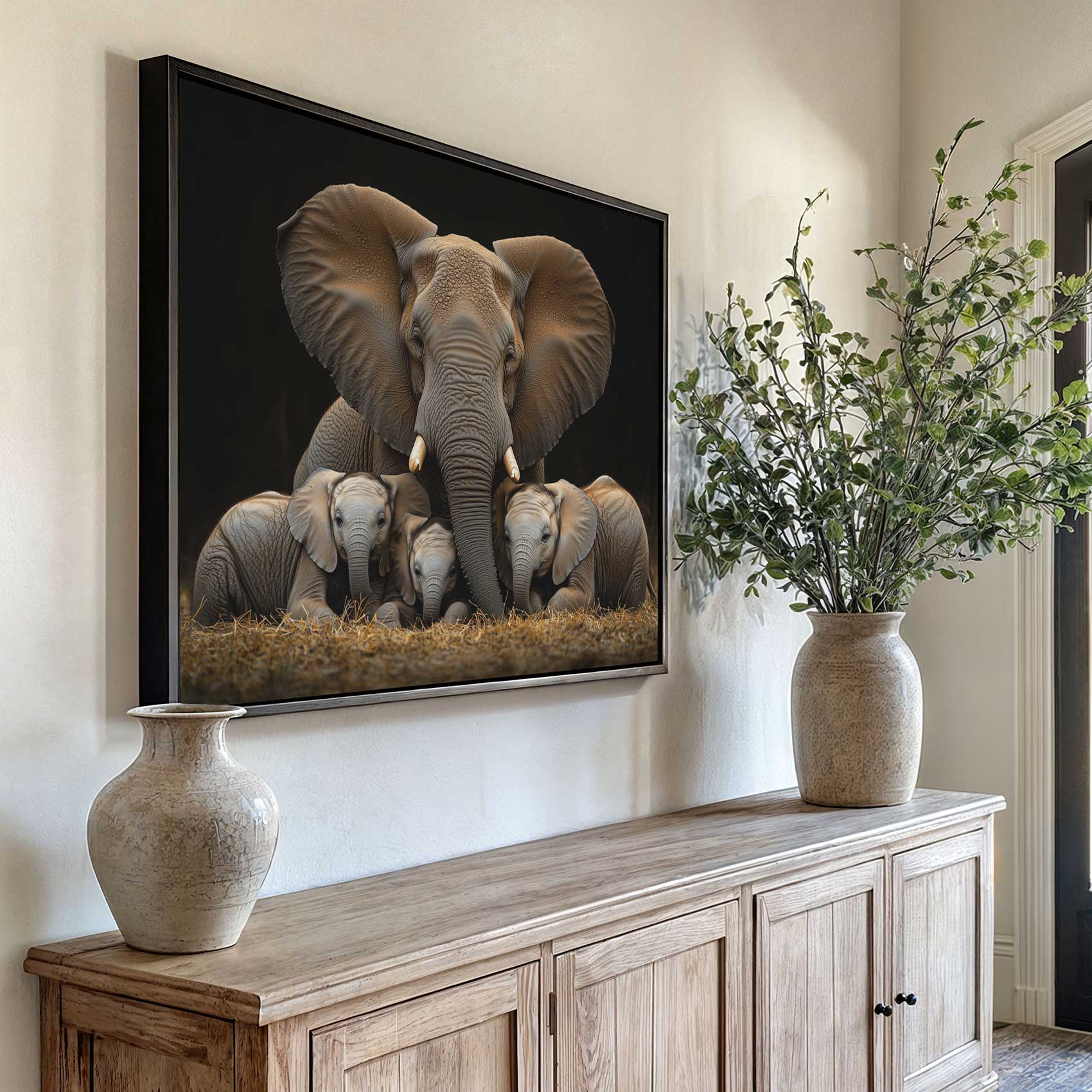 Terug naar collectie / Schilderijen / Dieren Schilderij / Liefdevolle olifantenfamilie