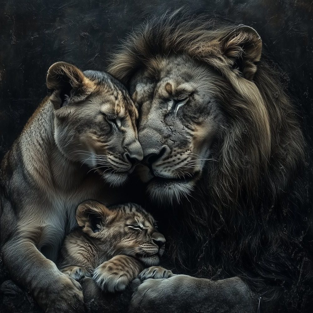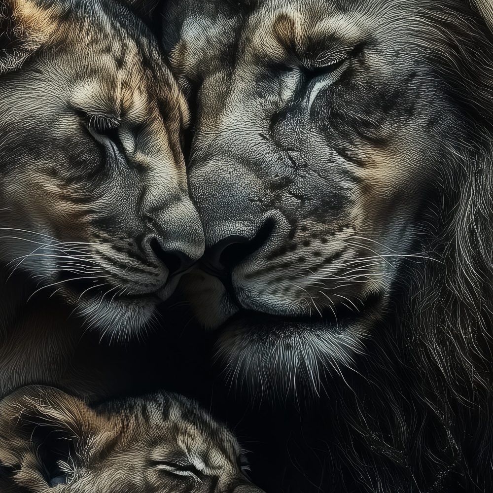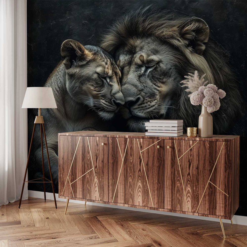 Terug naar collectie / Behang / Lieve leeuwenmoeder met welpen behang